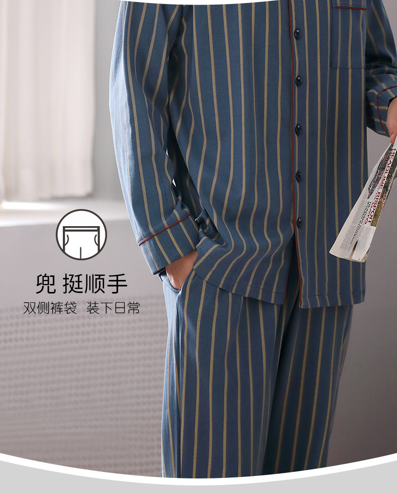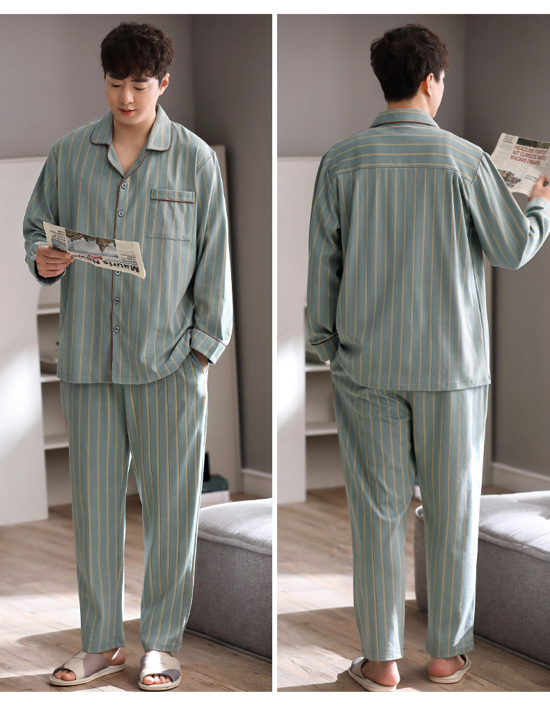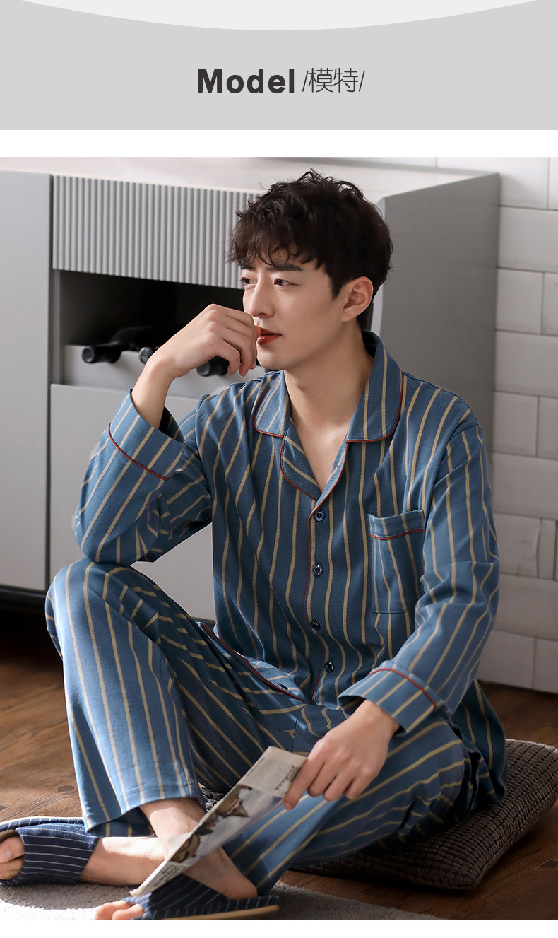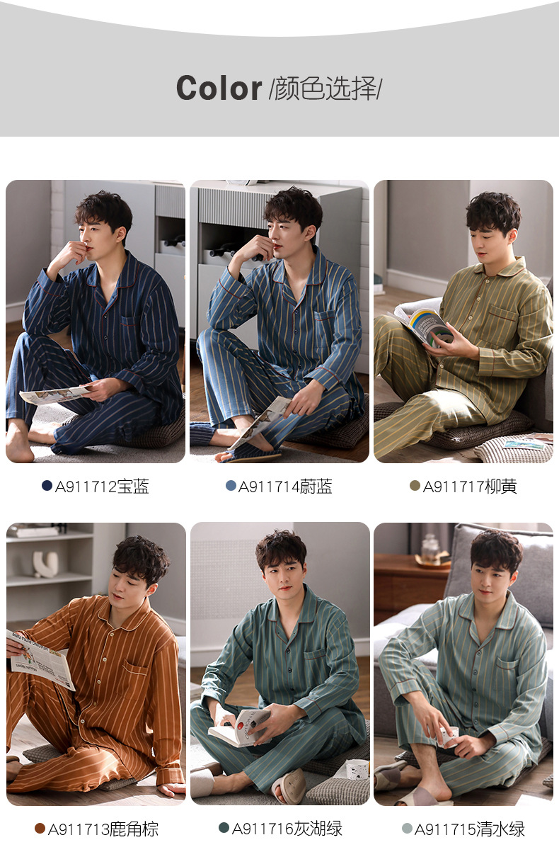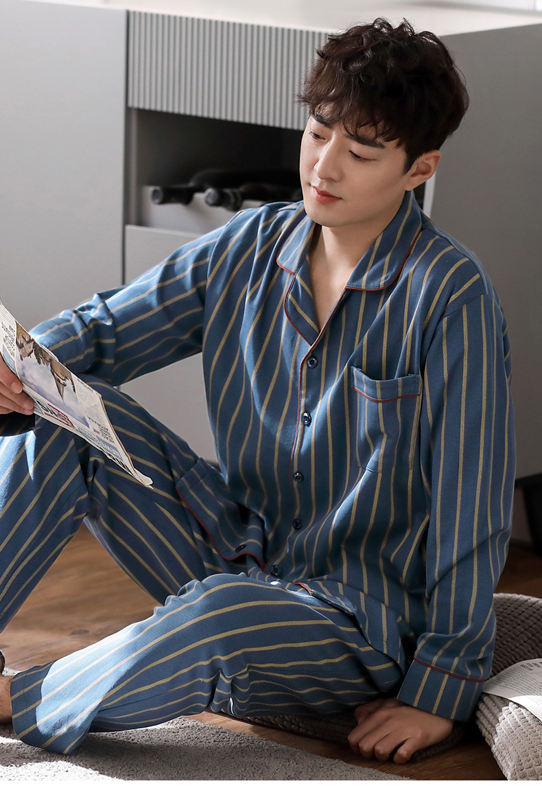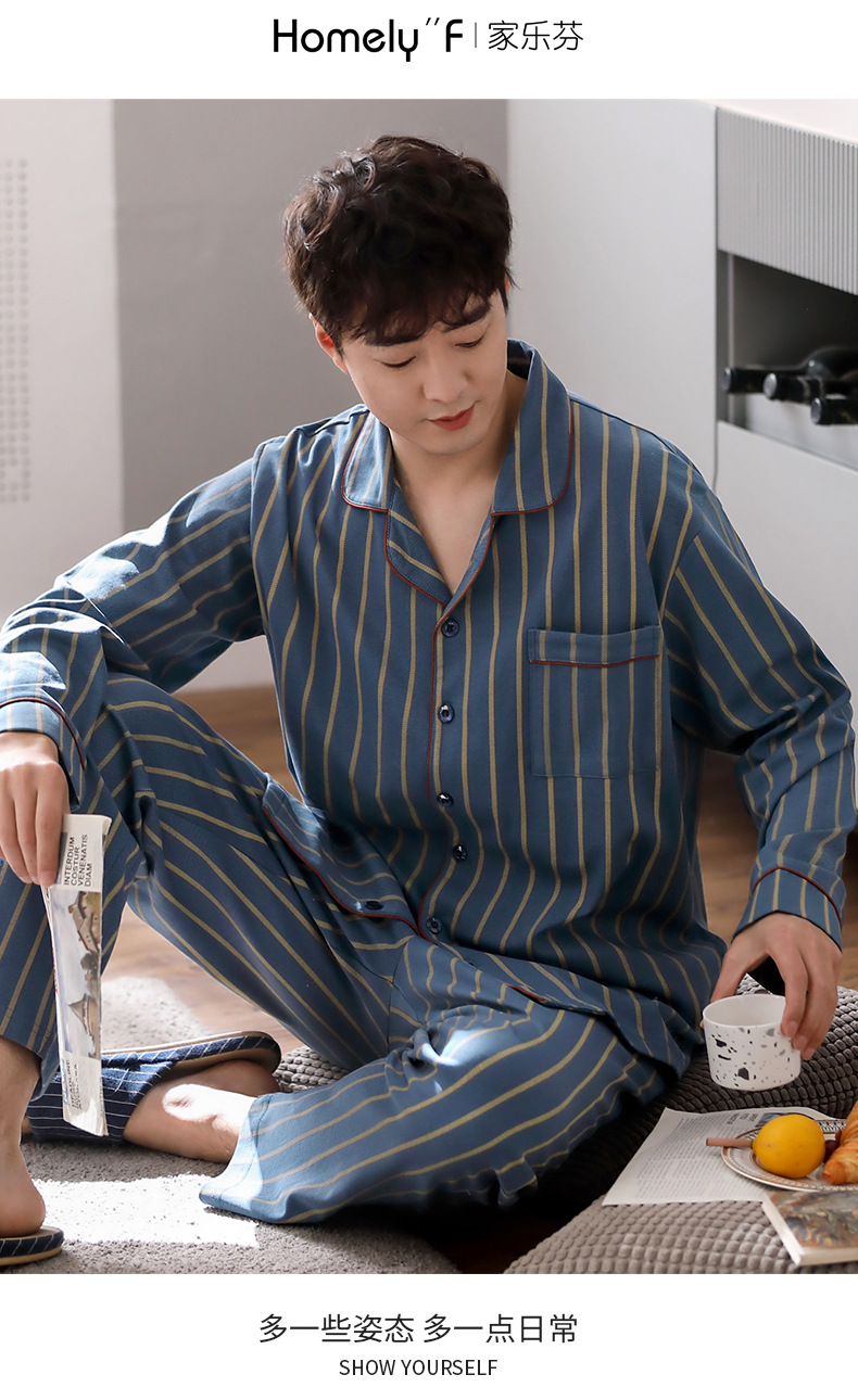 2023 nuevos pijamas de los hombres de primavera y otoño 100% algodón de manga larga ropa de los hombres cuatro estaciones traje fino
