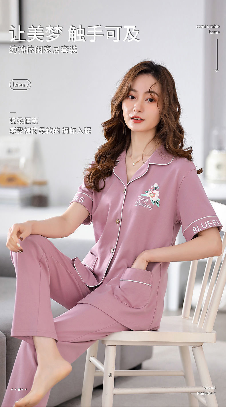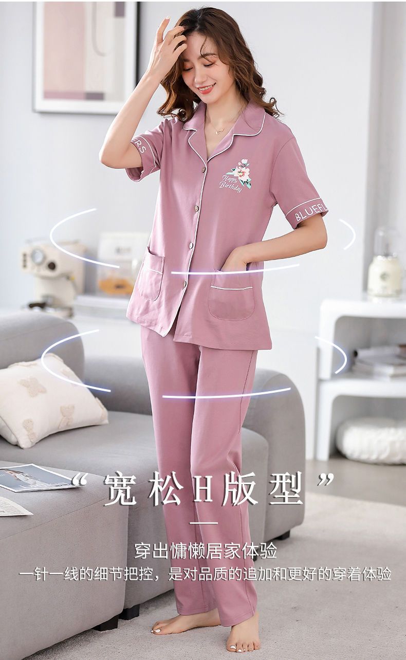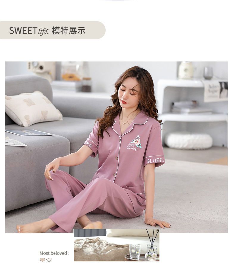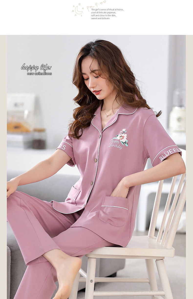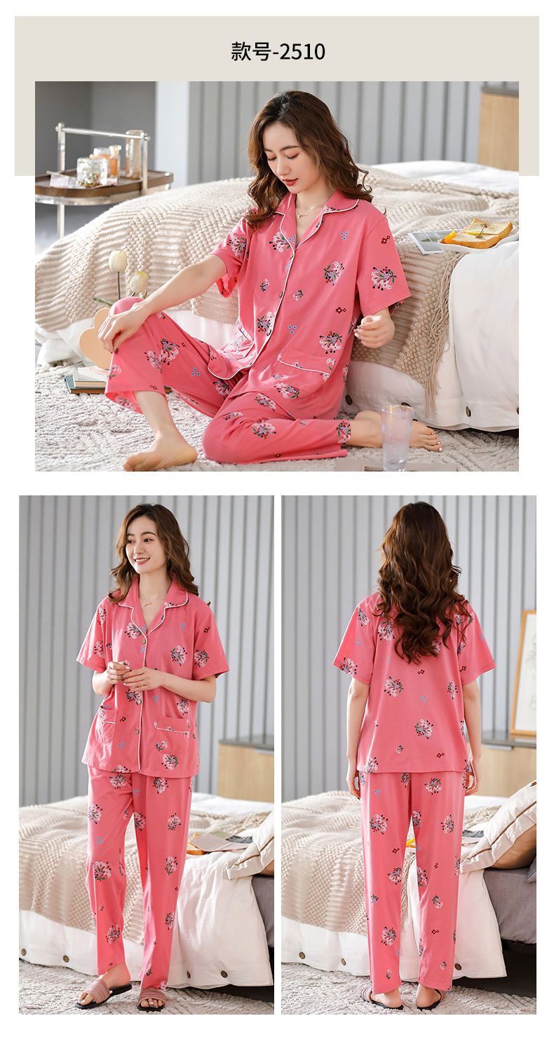 Pijamas de algodón de mediana edad y ancianos pantalones de manga corta para mujer cardigan de talla grande delgada solapa de dos piezas ropa para el hogar