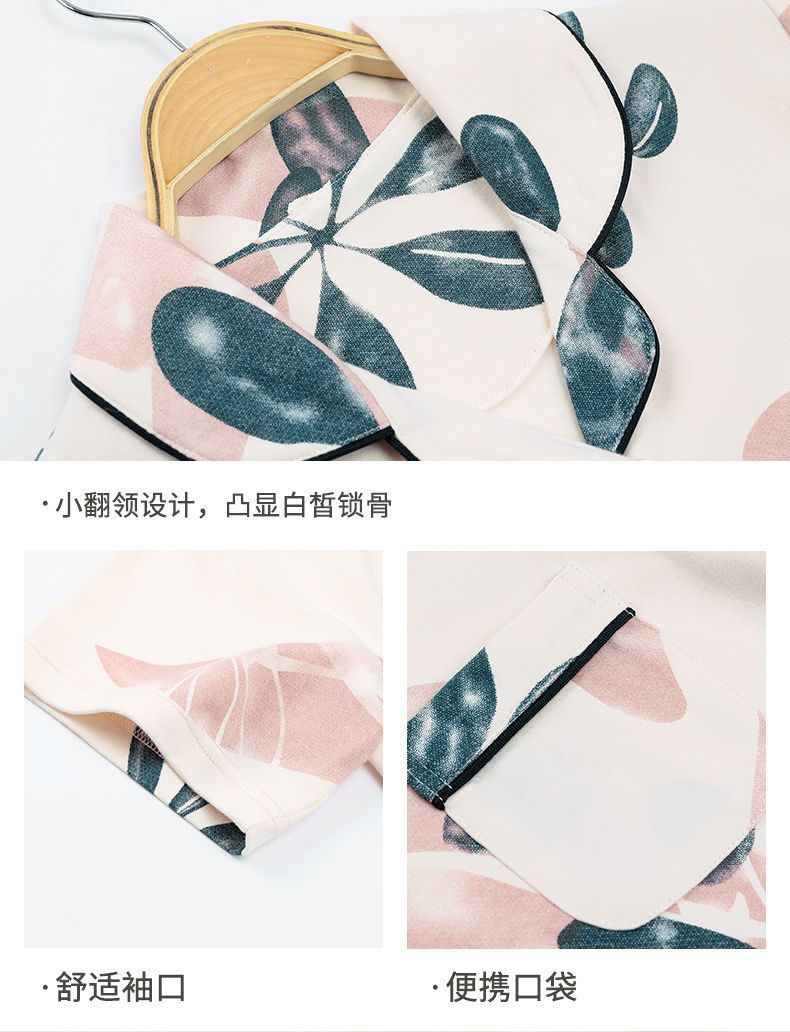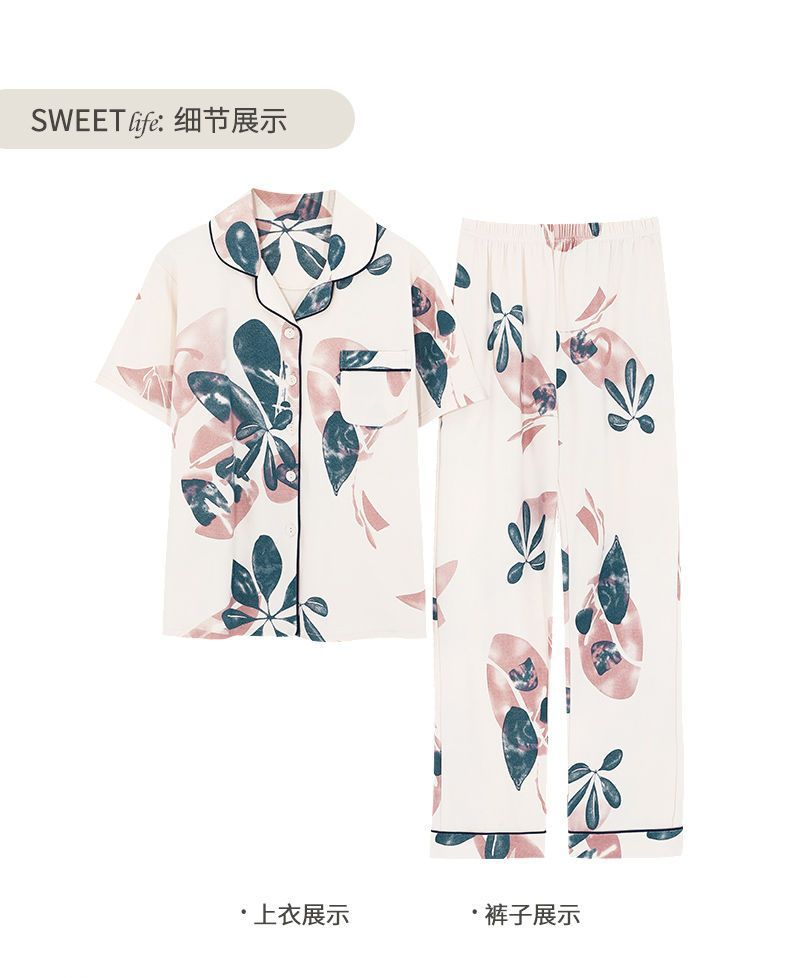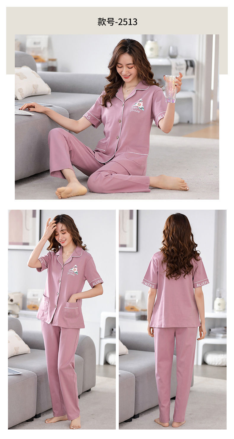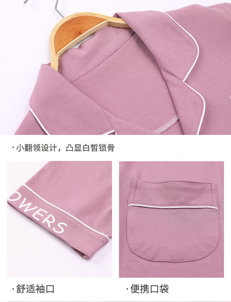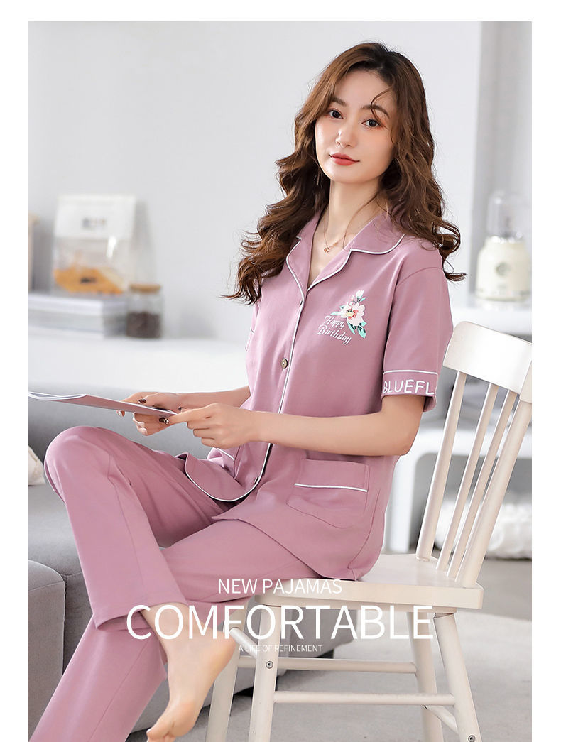 Pijamas de algodón de mediana edad y ancianos pantalones de manga corta para mujer cardigan de talla grande delgada solapa de dos piezas ropa para el hogar