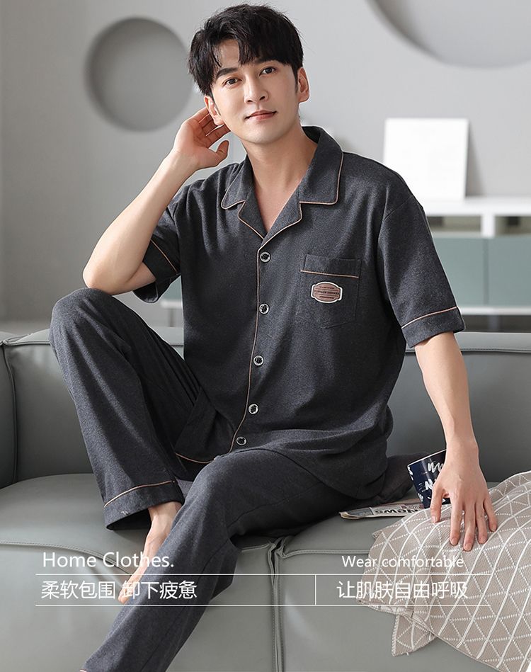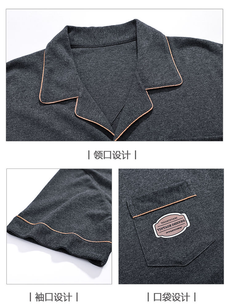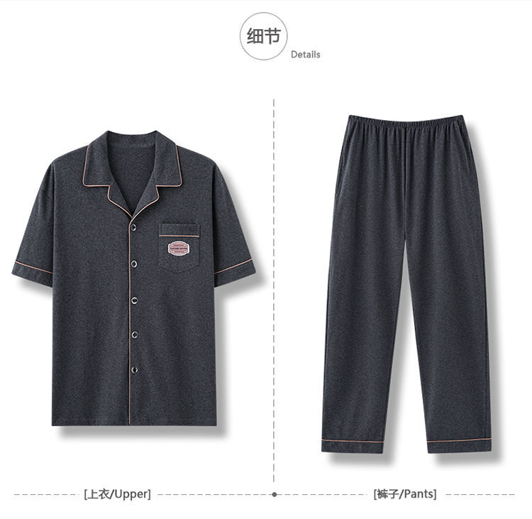 Pijama de algodón para hombre primavera y otoño pantalones de manga corta chaqueta de solapa traje simple