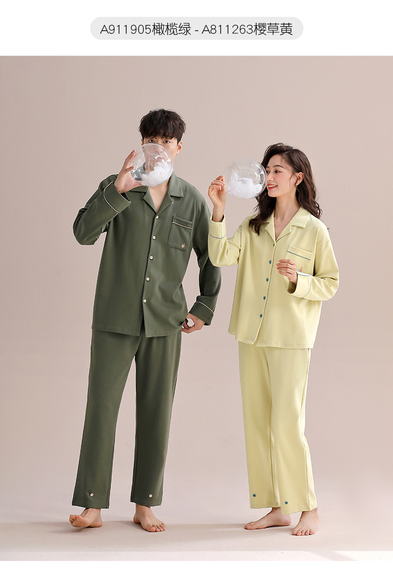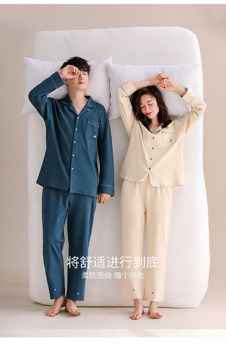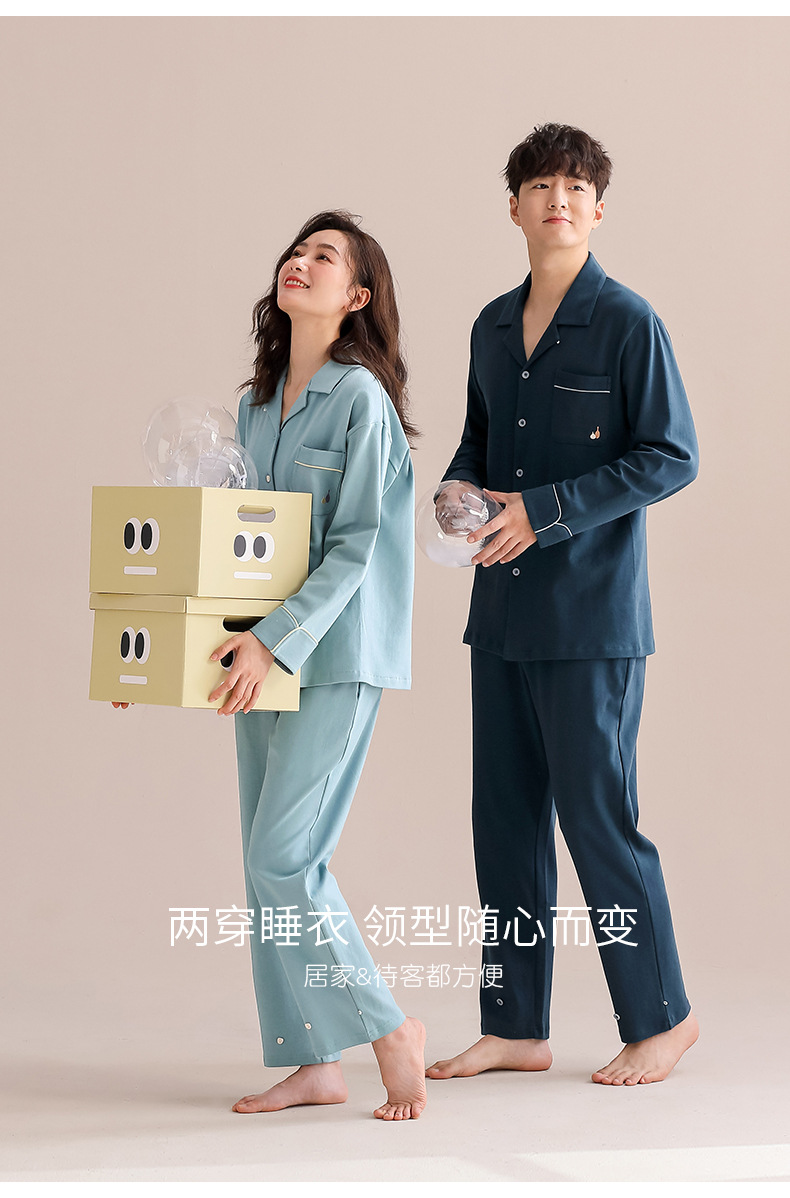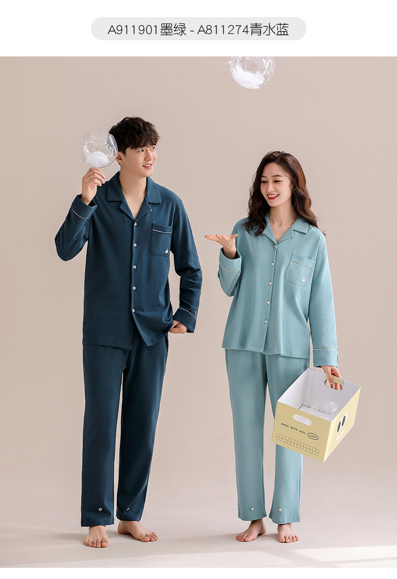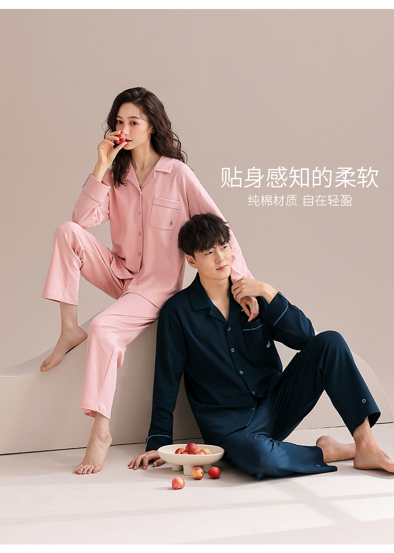 Pareja de pijamas de mujer de primavera y otoño de algodón puro de manga larga para el hogar traje de mujer para hombre