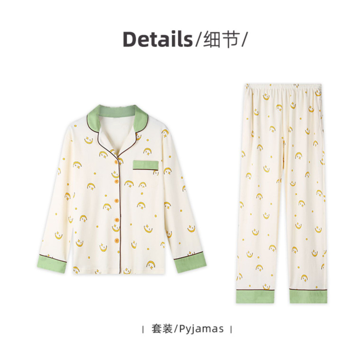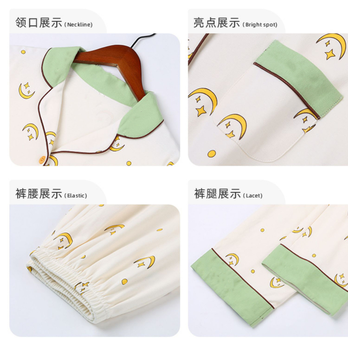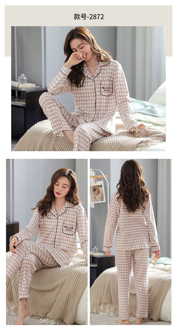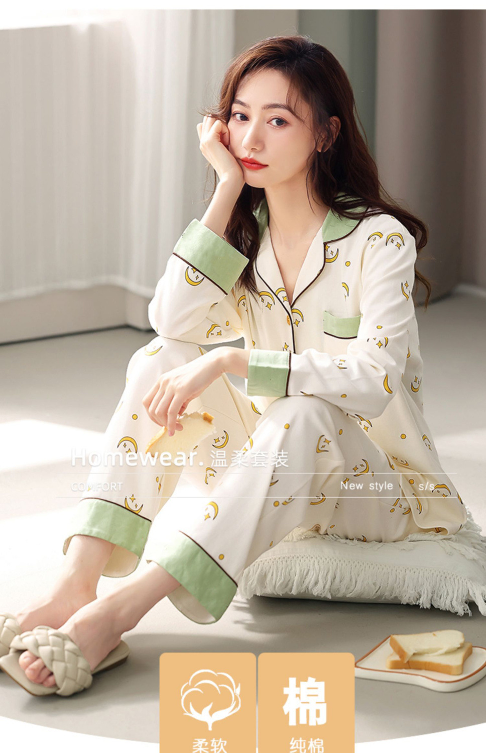 100% pijamas de algodón de las mujeres de primavera y otoño de manga larga cardigan traje casual cardigan confinamiento ropa invierno ropa exterior verano