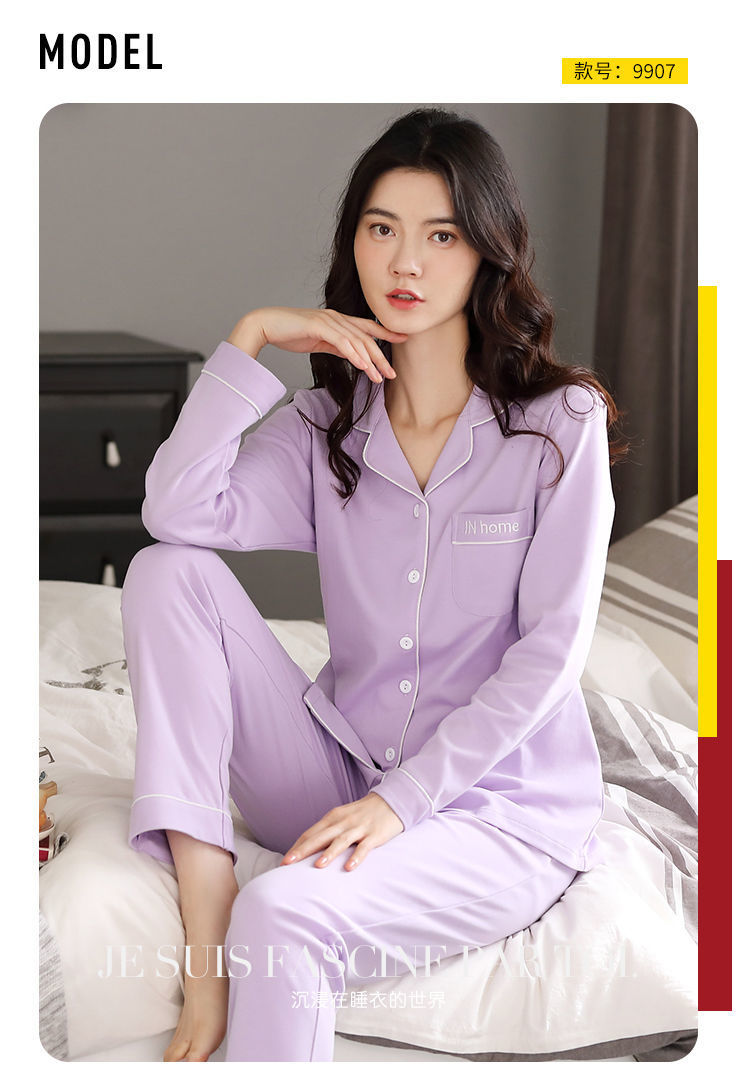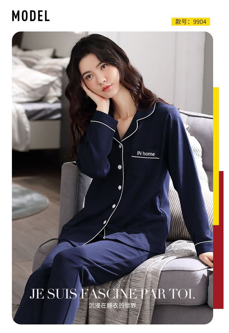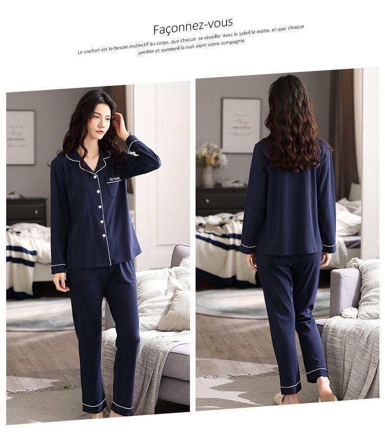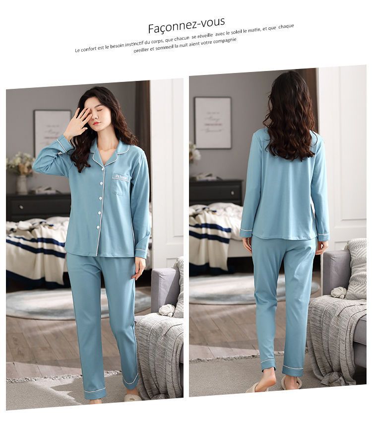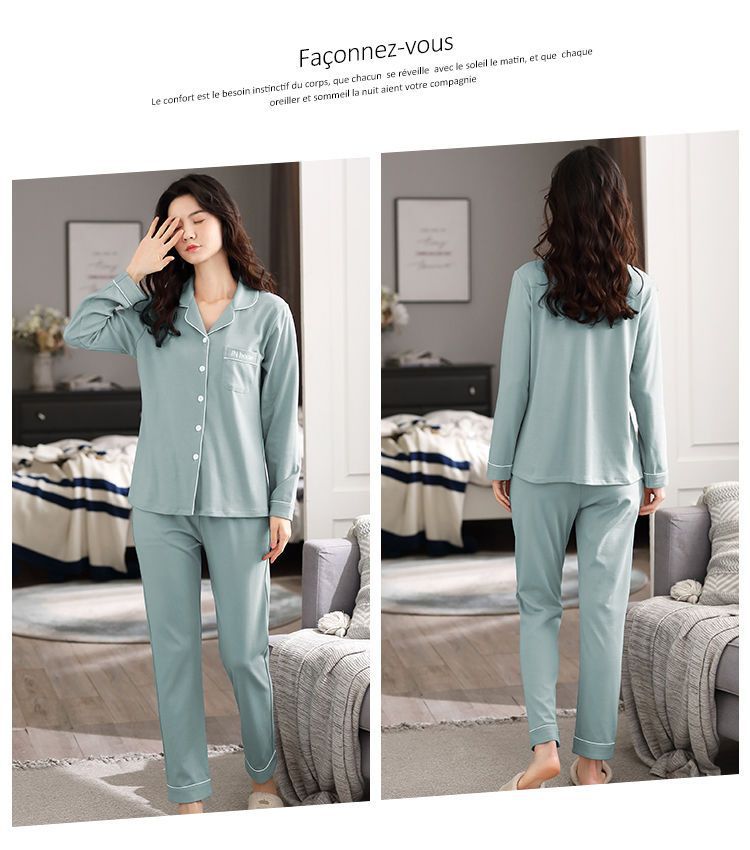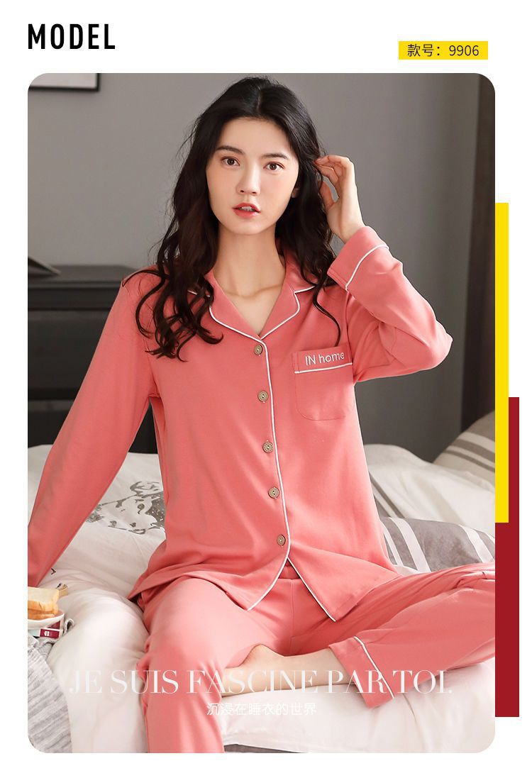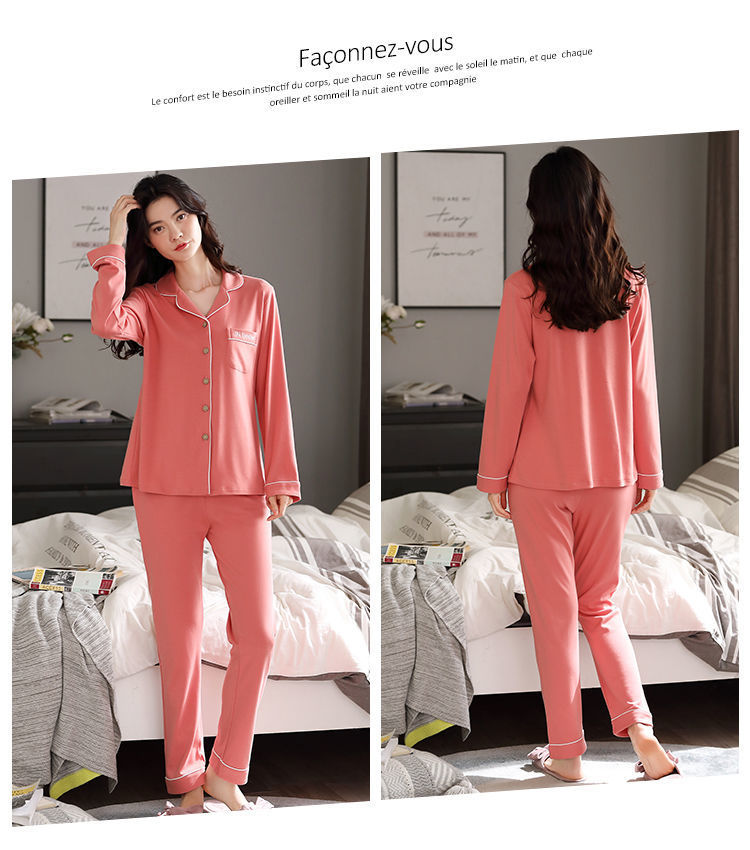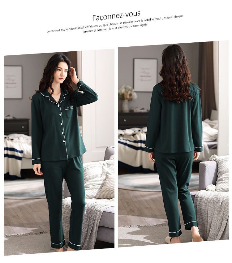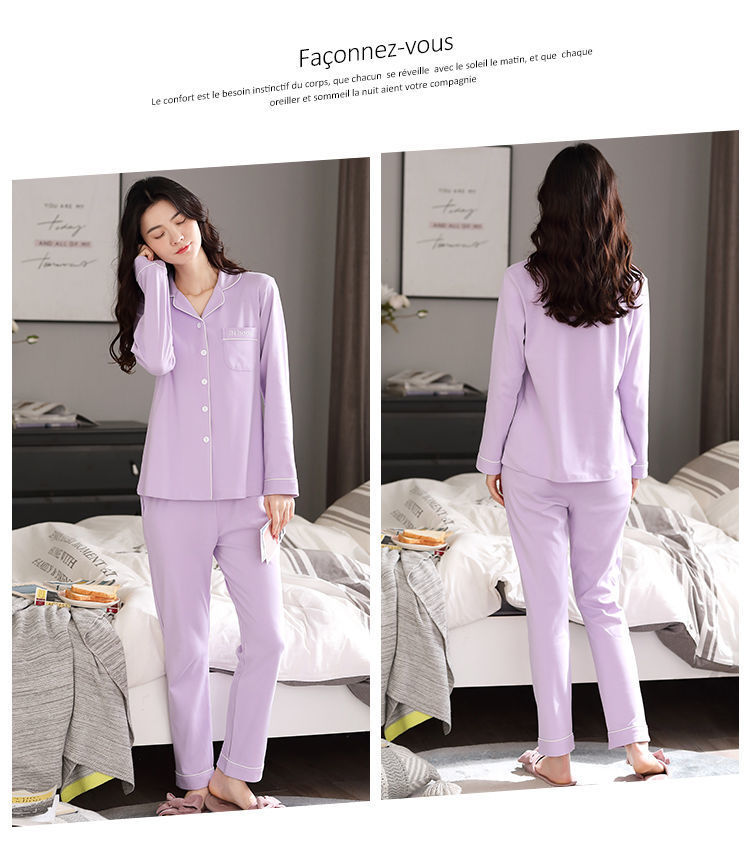 Otoño simple nuevos pantalones de manga larga más el tamaño de las mujeres pijamas 100% algodón traje de desgaste para el hogar