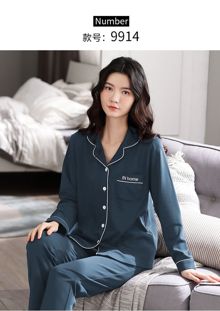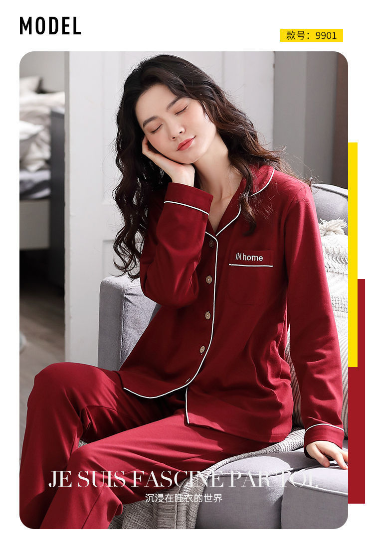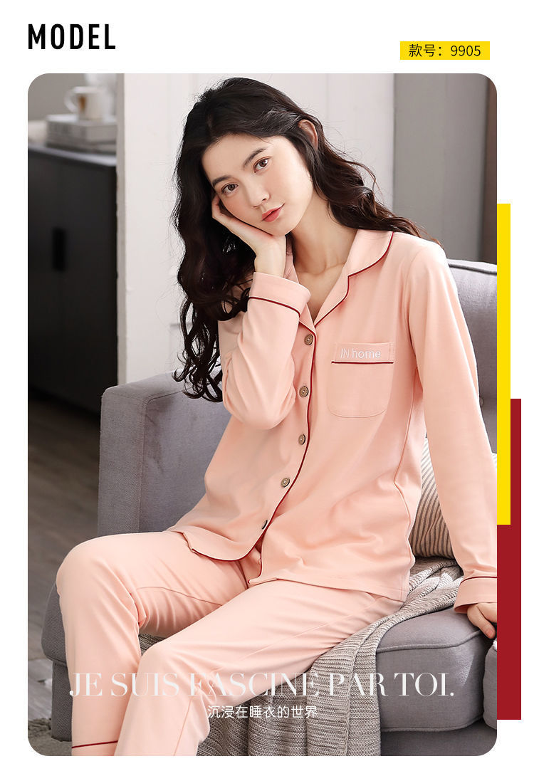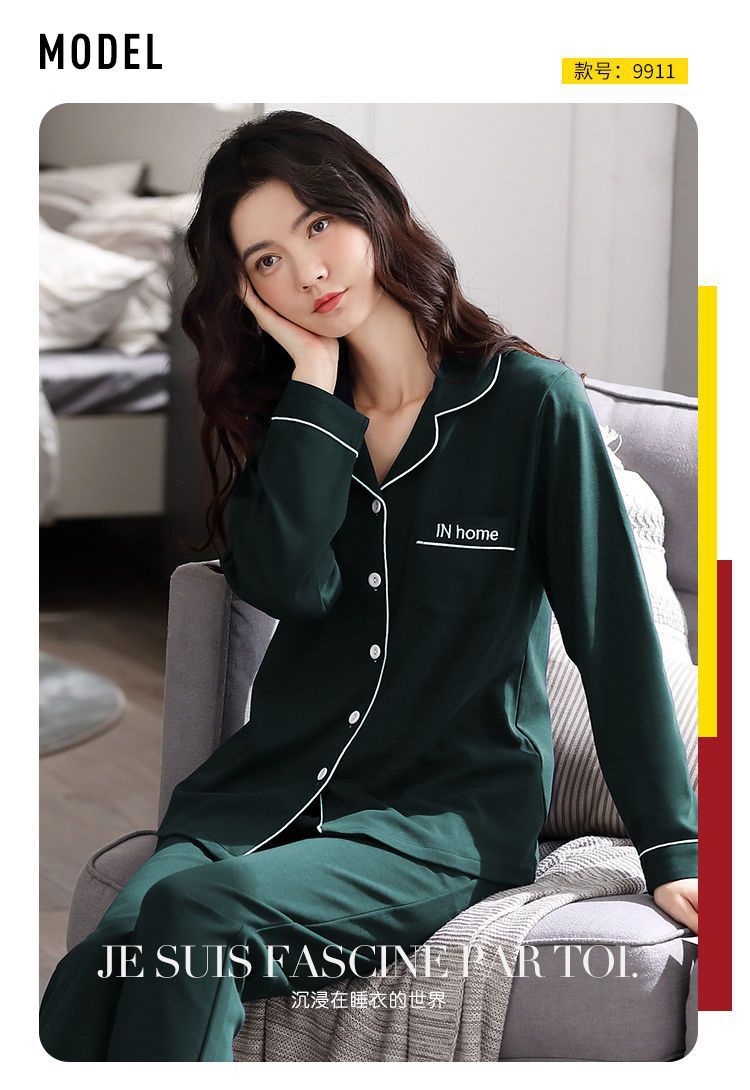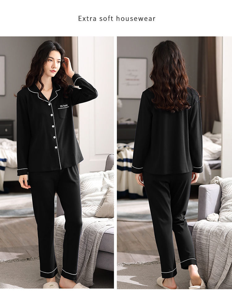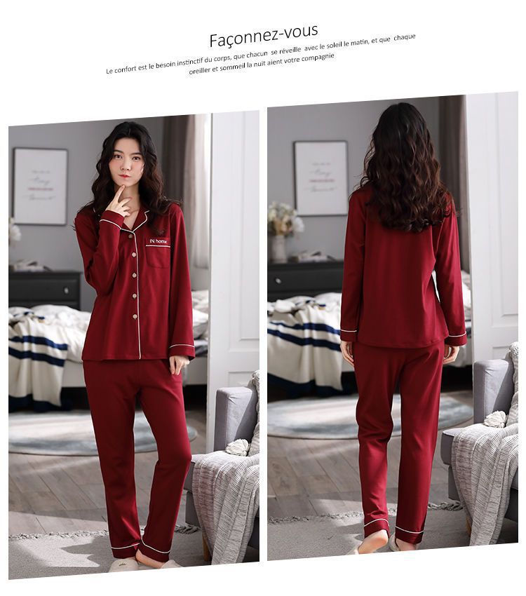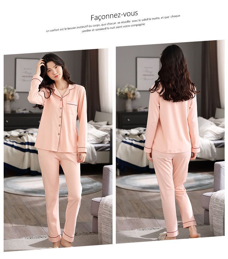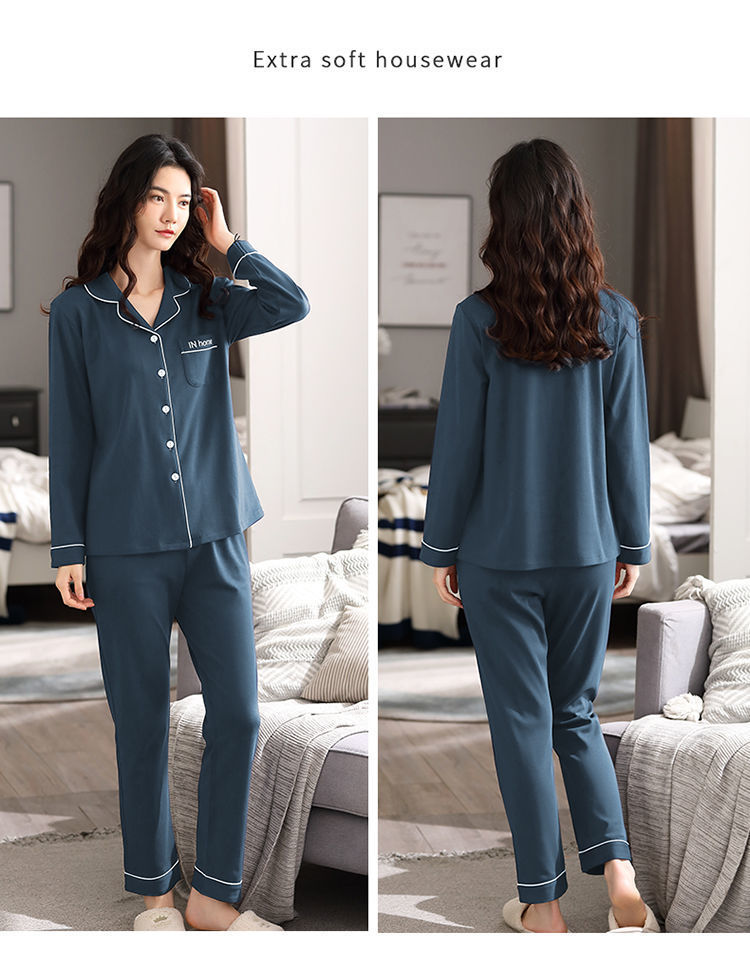 Otoño simple nuevos pantalones de manga larga más el tamaño de las mujeres pijamas 100% algodón traje de desgaste para el hogar