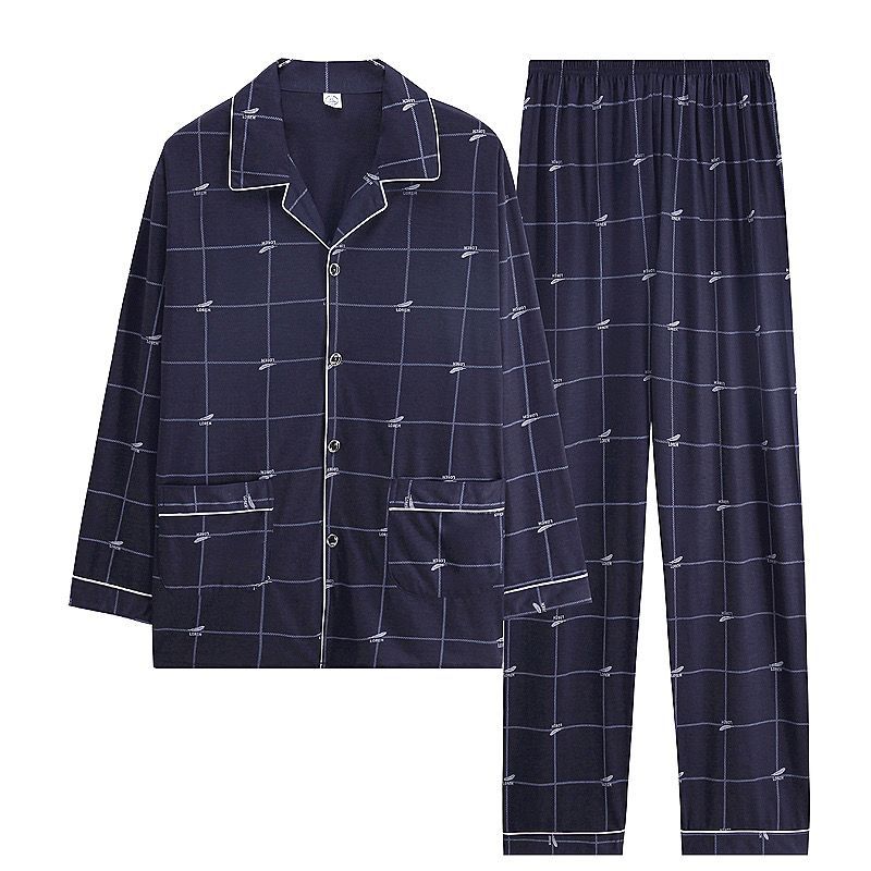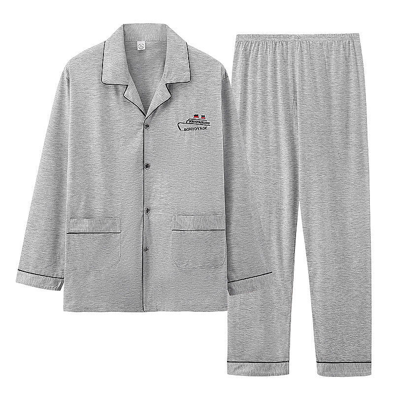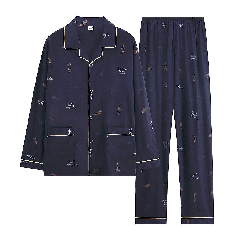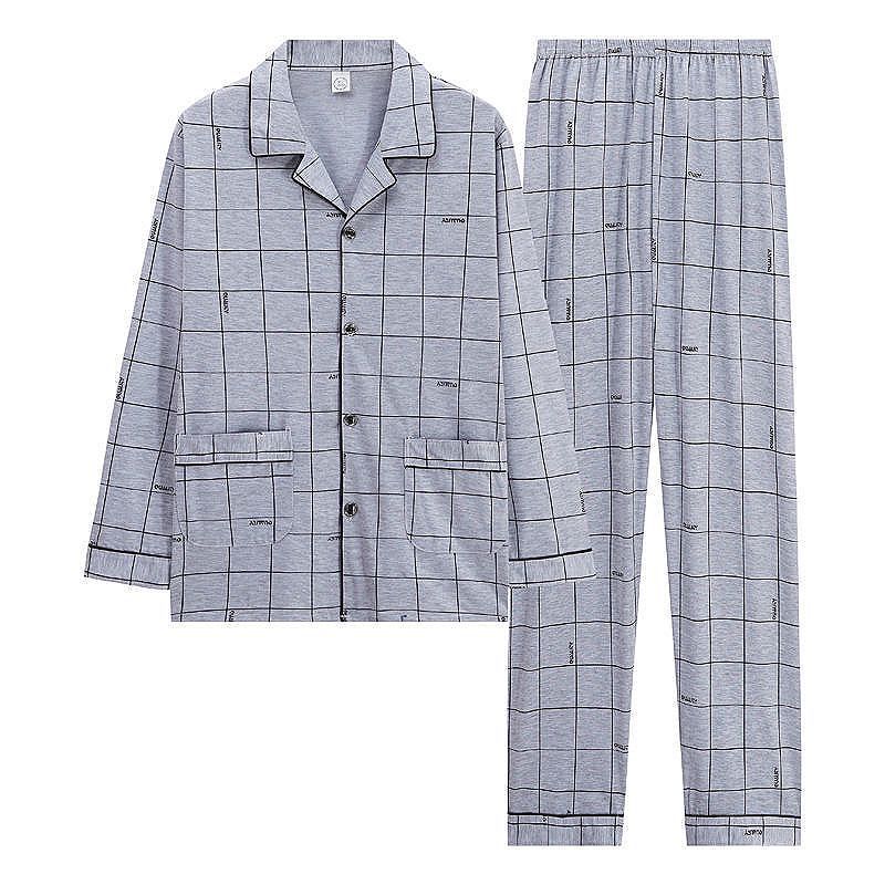 100% pijamas de algodón de los hombres de algodón de manga larga de verano de los hombres más tamaño cómodo Juventud de mediana edad Primavera y Otoño Invierno ropa para el hogar