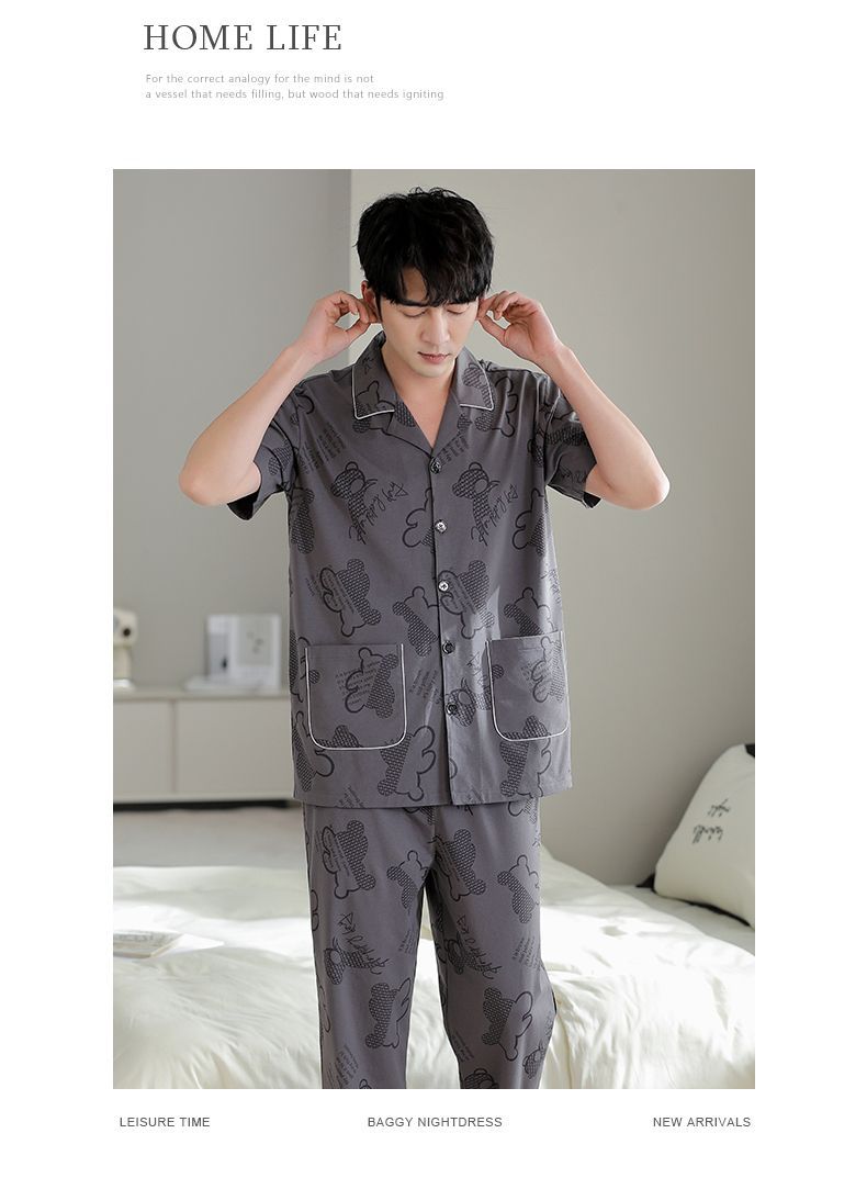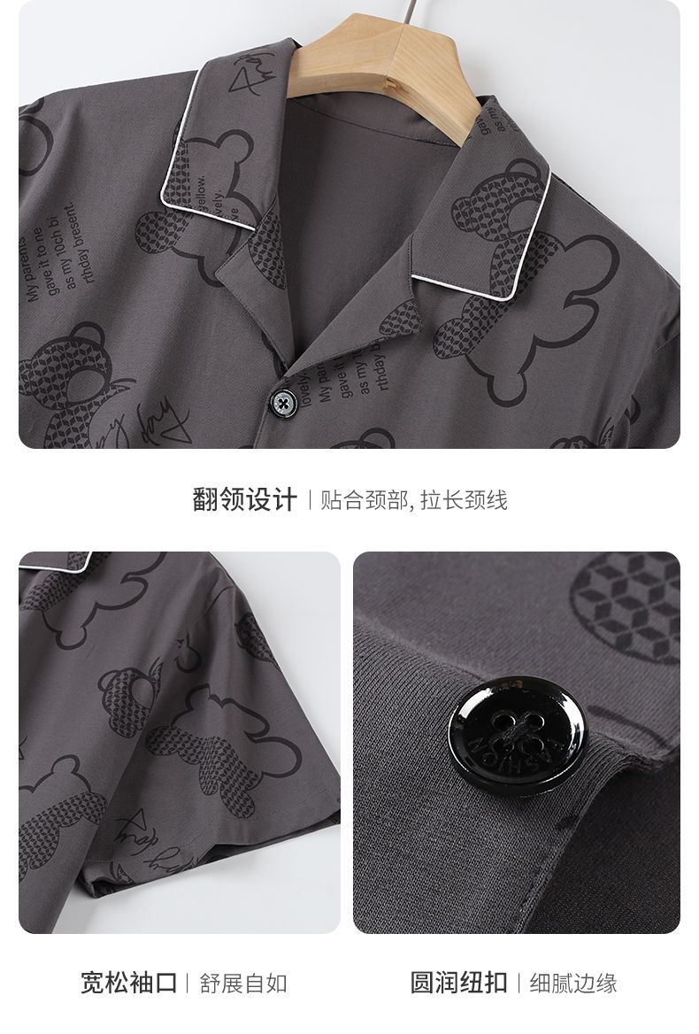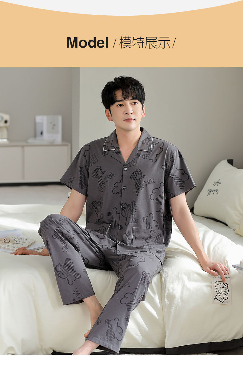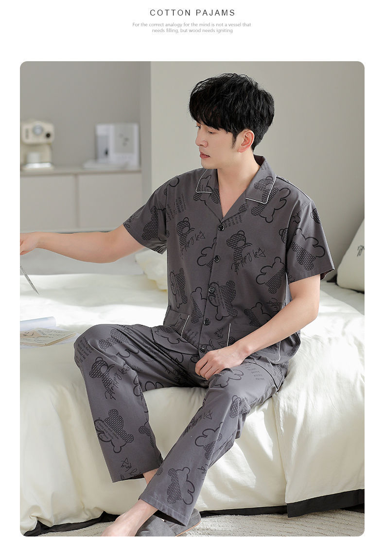 Pijamas pantalones de manga corta para hombres algodón verano delgado cardigan solapa ropa para el hogar más traje de tamaño