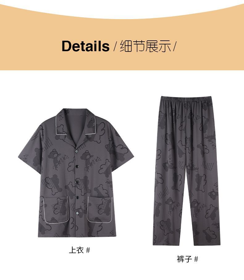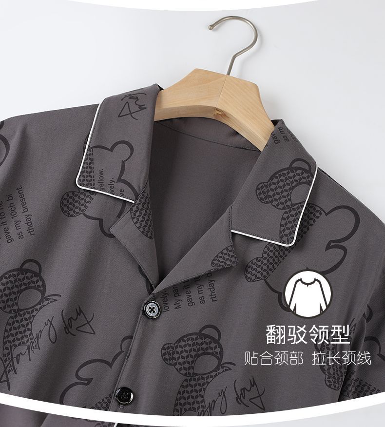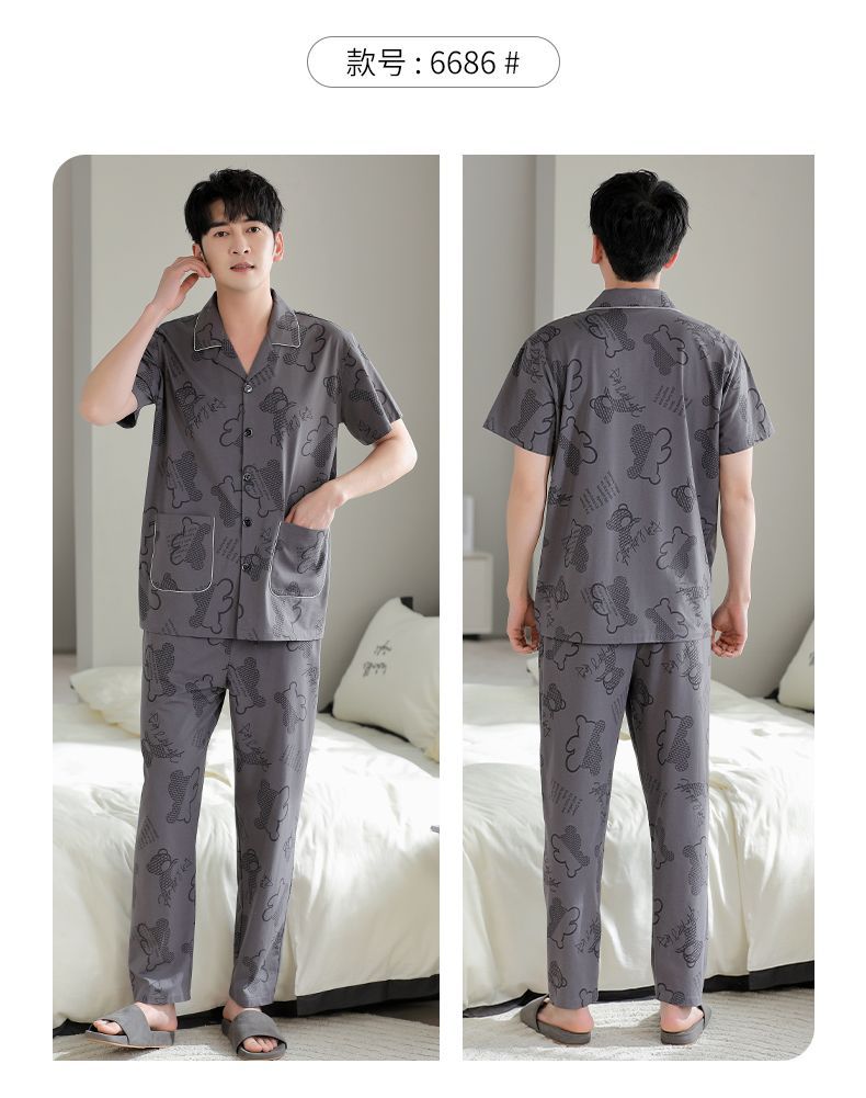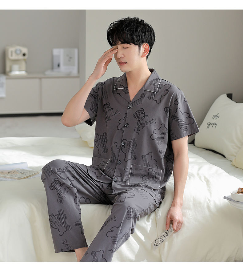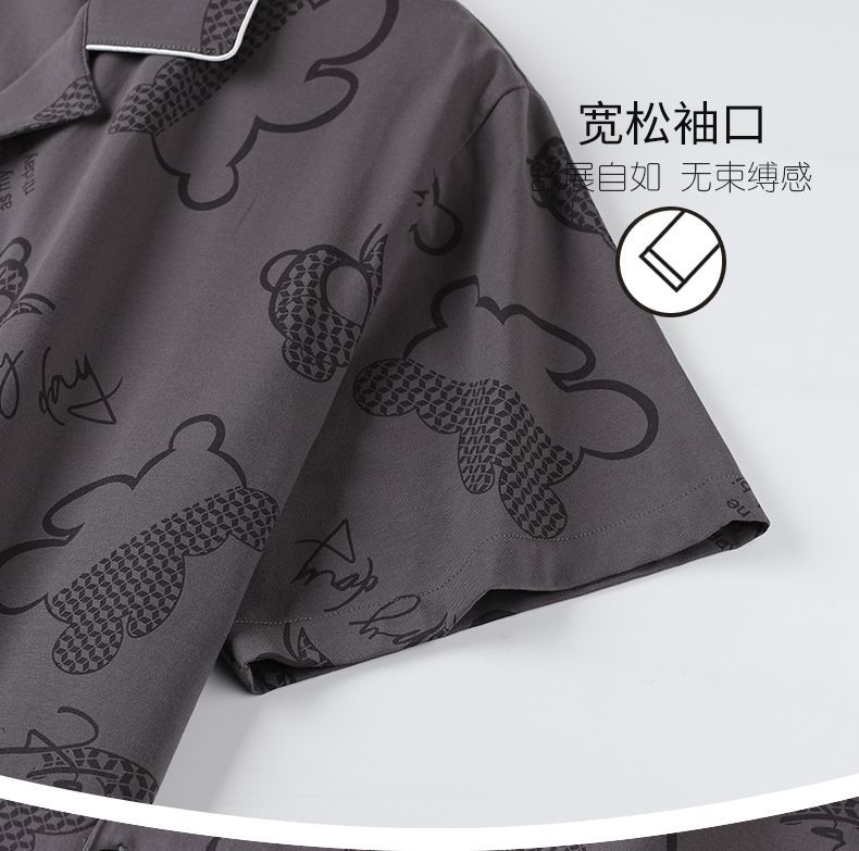 Pijamas pantalones de manga corta para hombres algodón verano delgado cardigan solapa ropa para el hogar más traje de tamaño