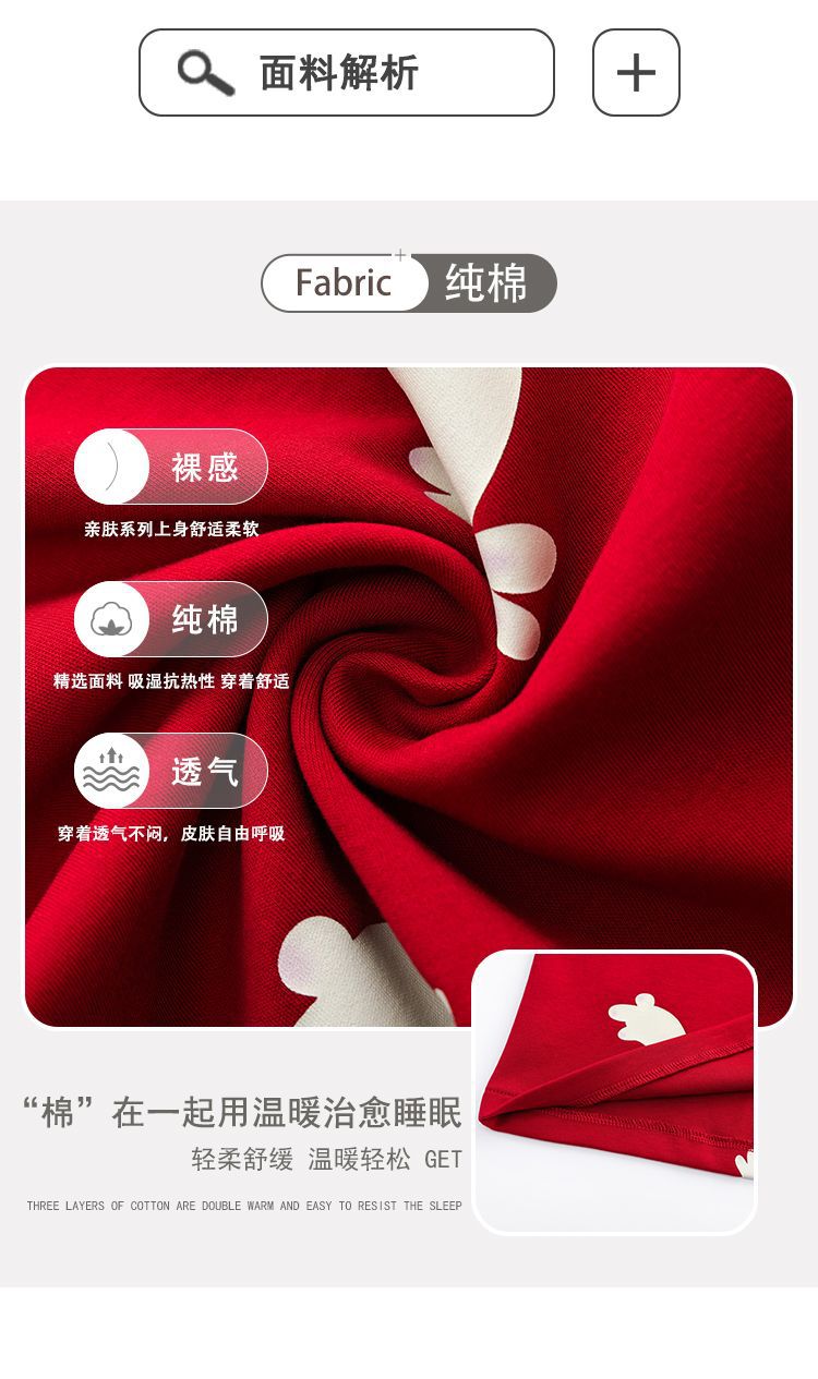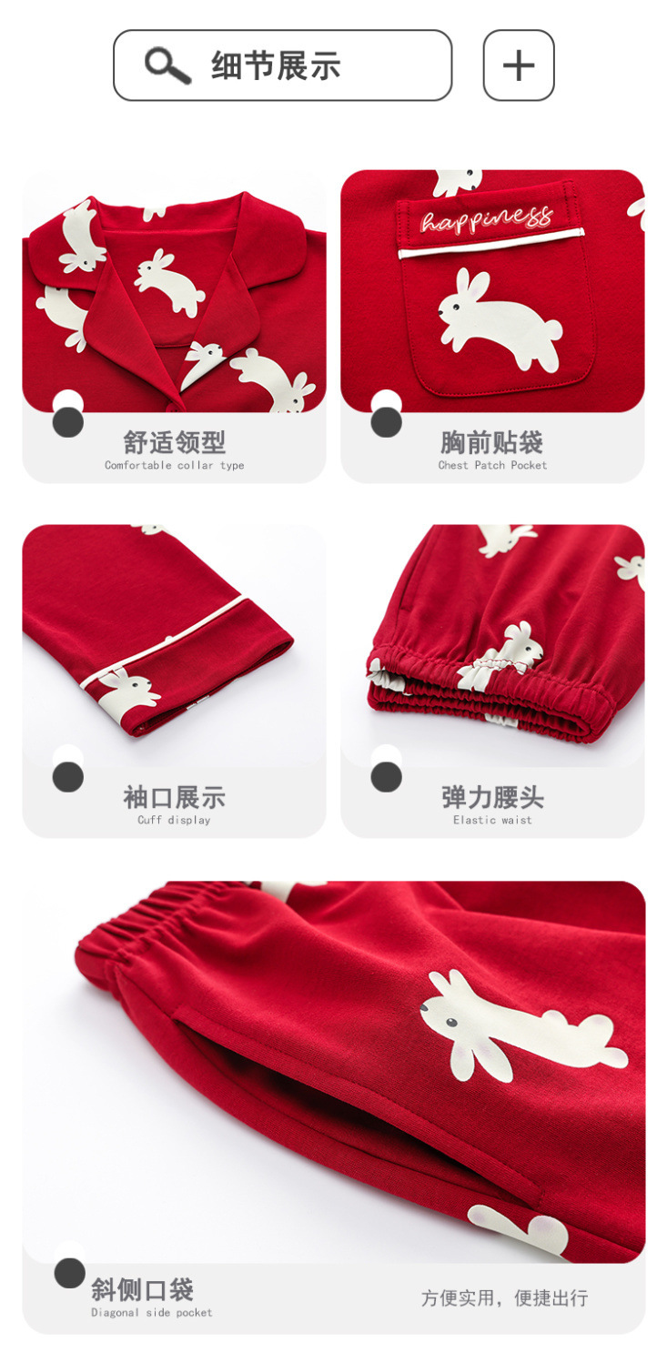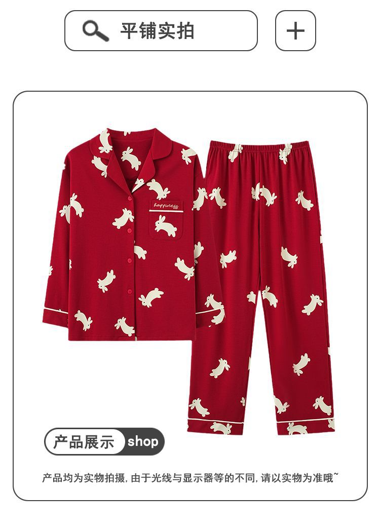 Pijamas de mujer 100% algodón de manga larga primavera y otoño año de nacimiento de conejo rojo boda de Mujer talla grande homewear