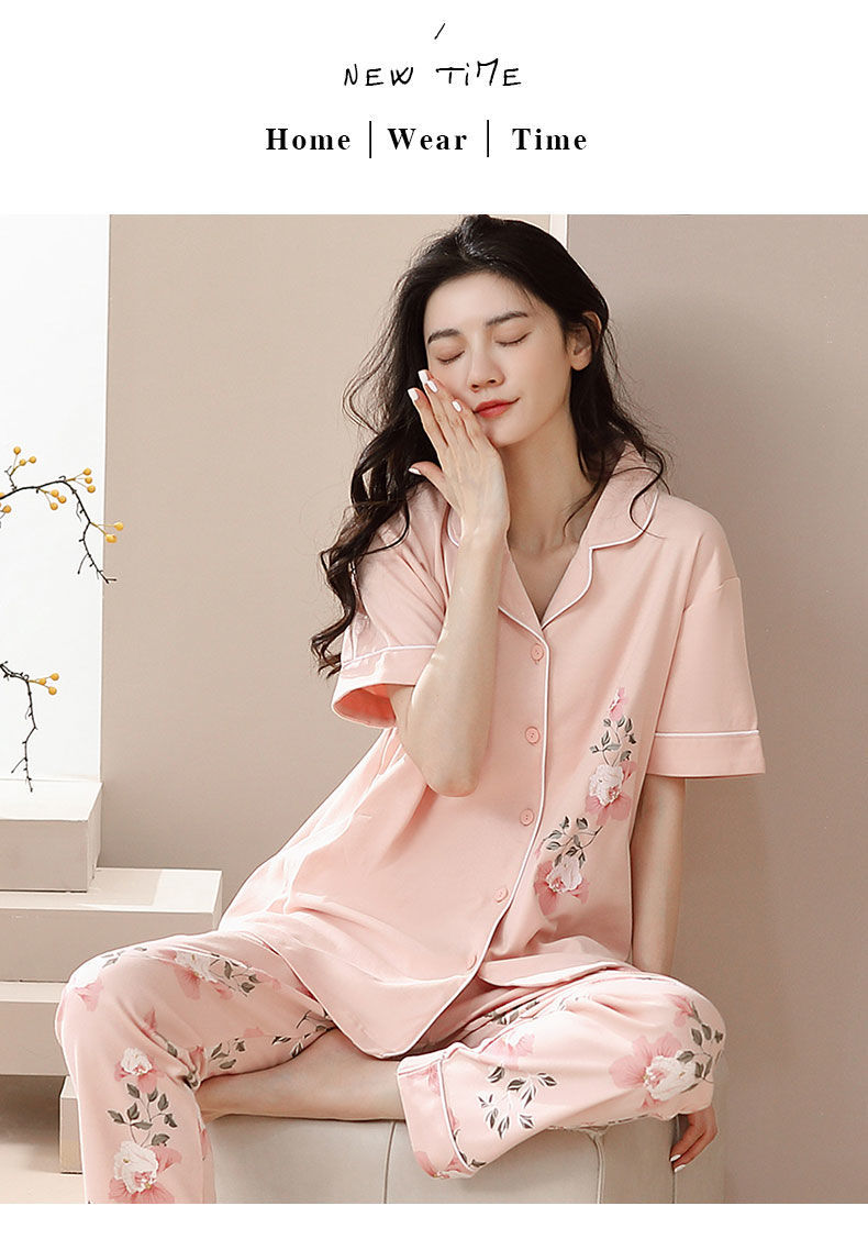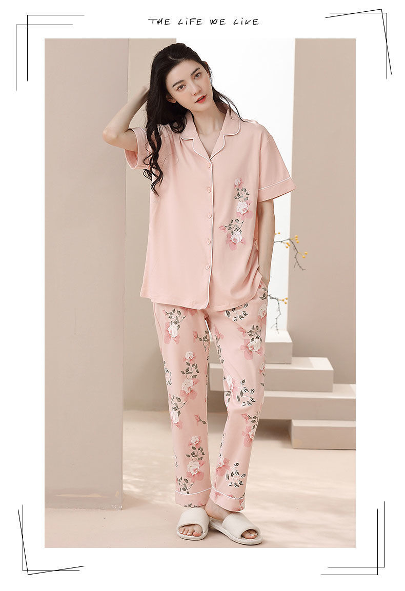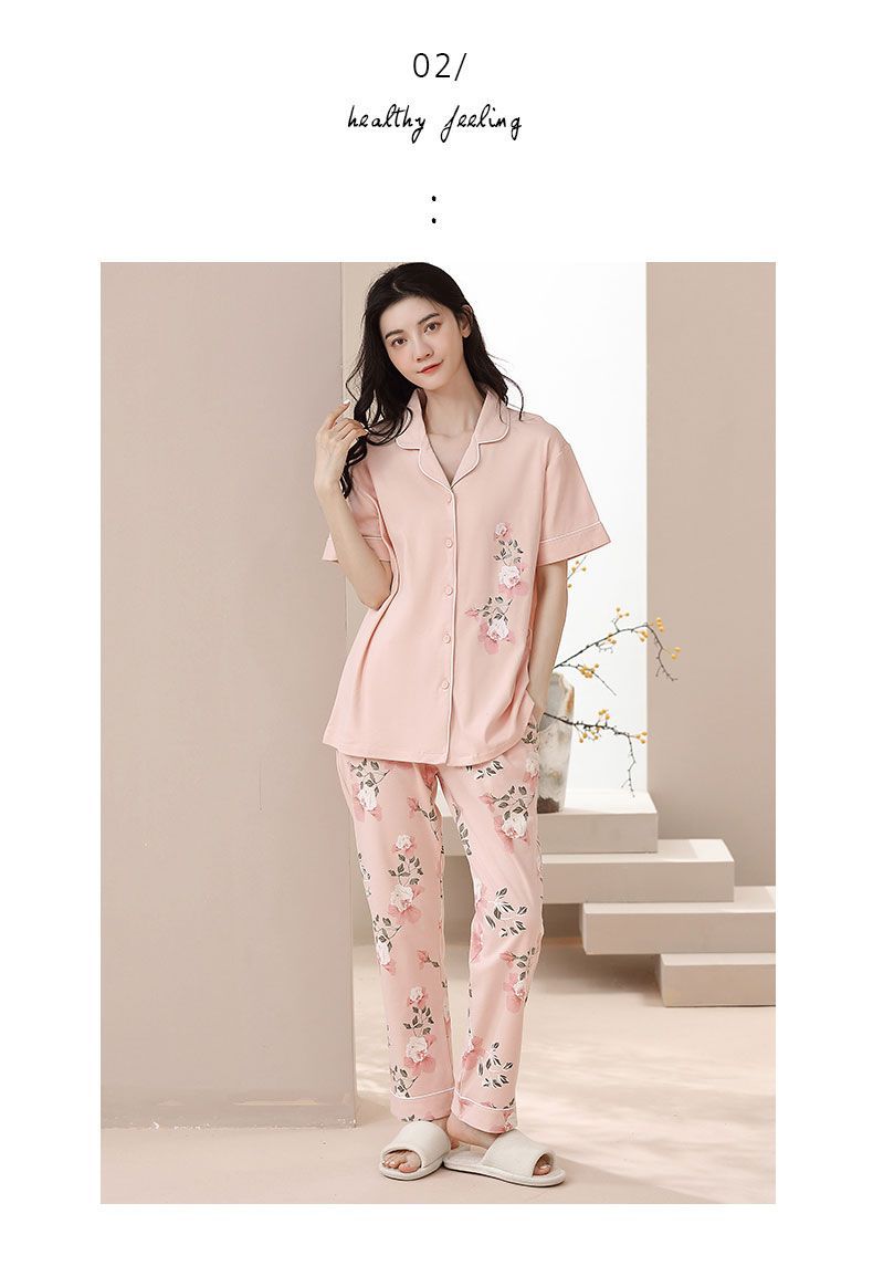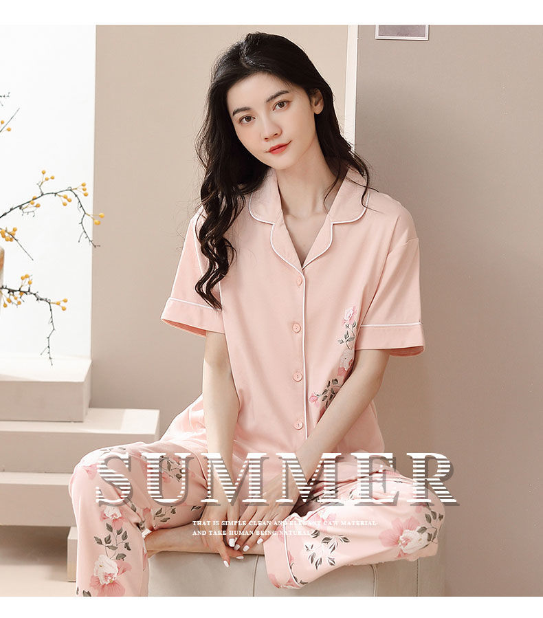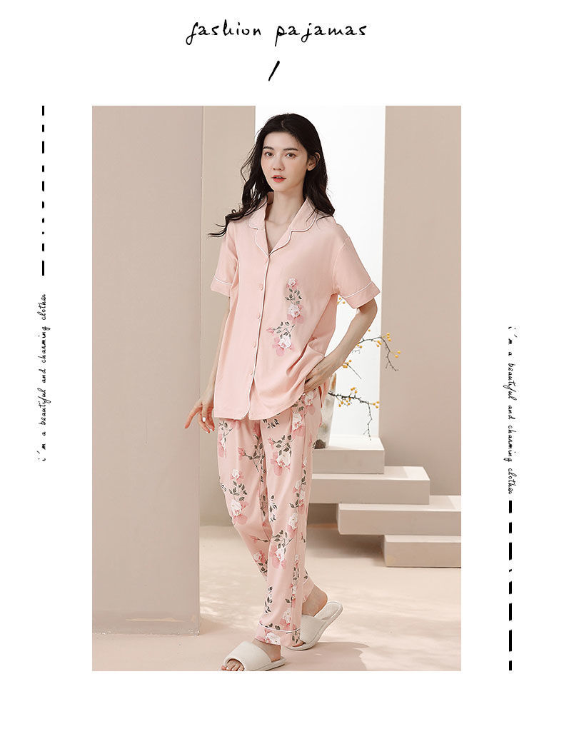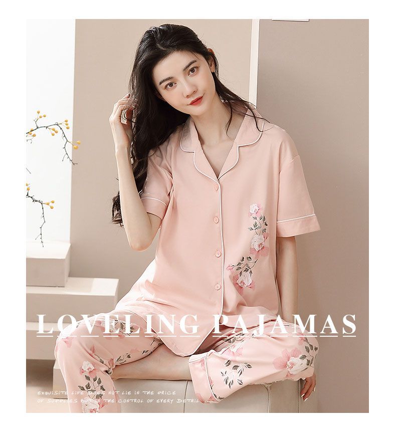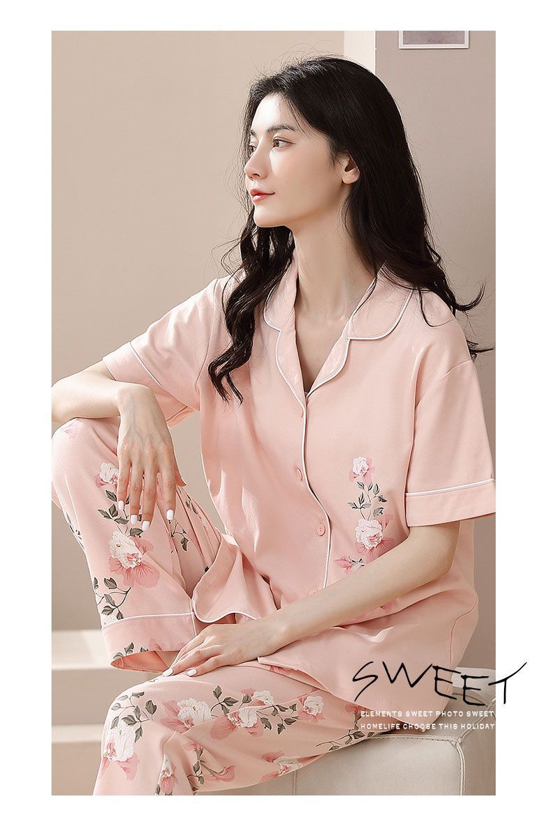 Pijamas de mujer primavera y verano 2023 nuevo 100% algodón cardigan pantalones de manga corta casual traje de desgaste para el hogar
