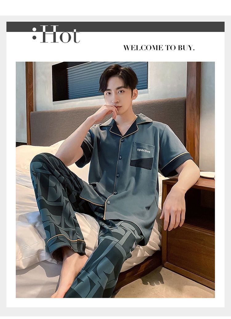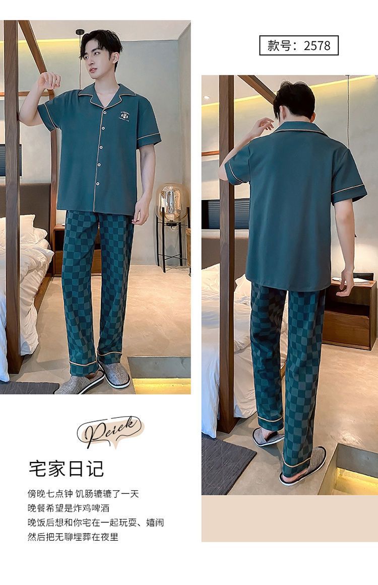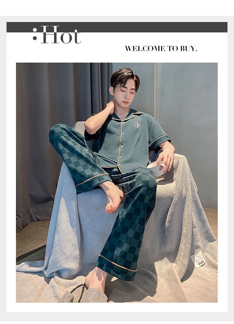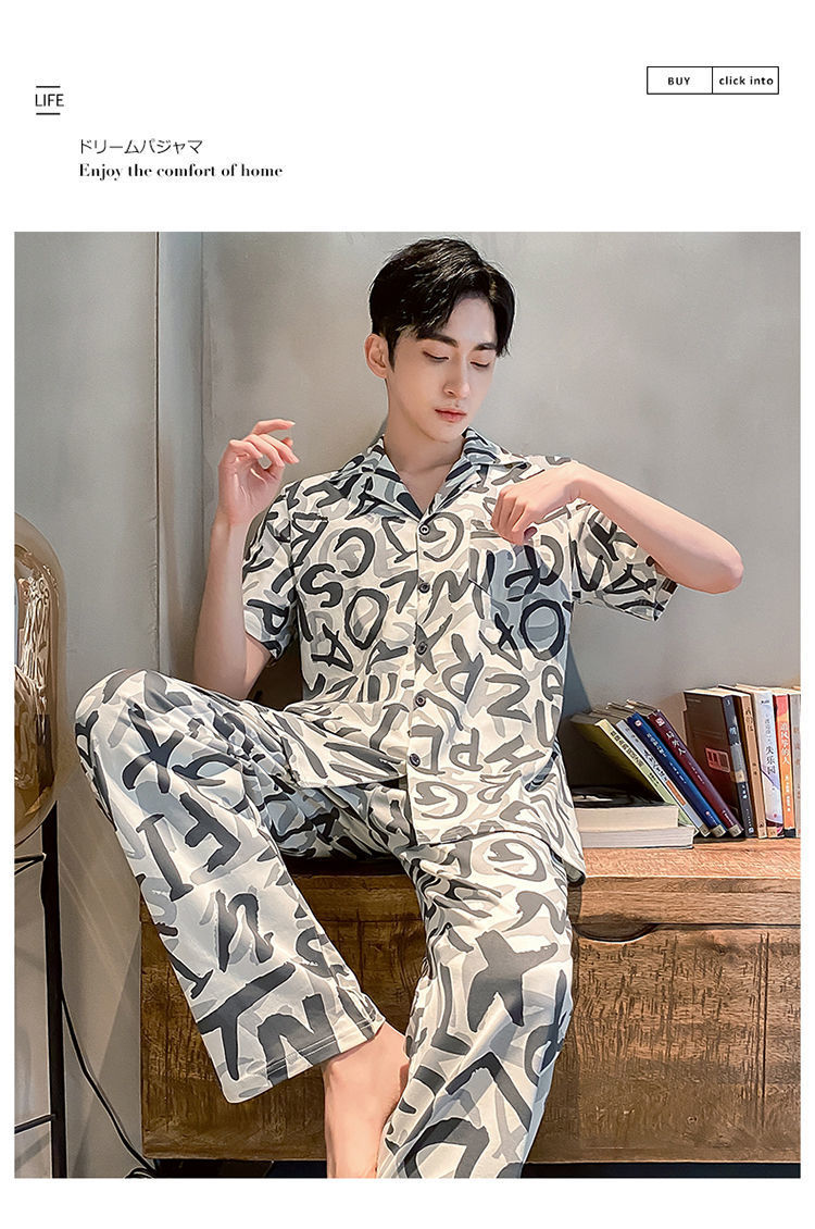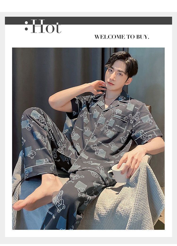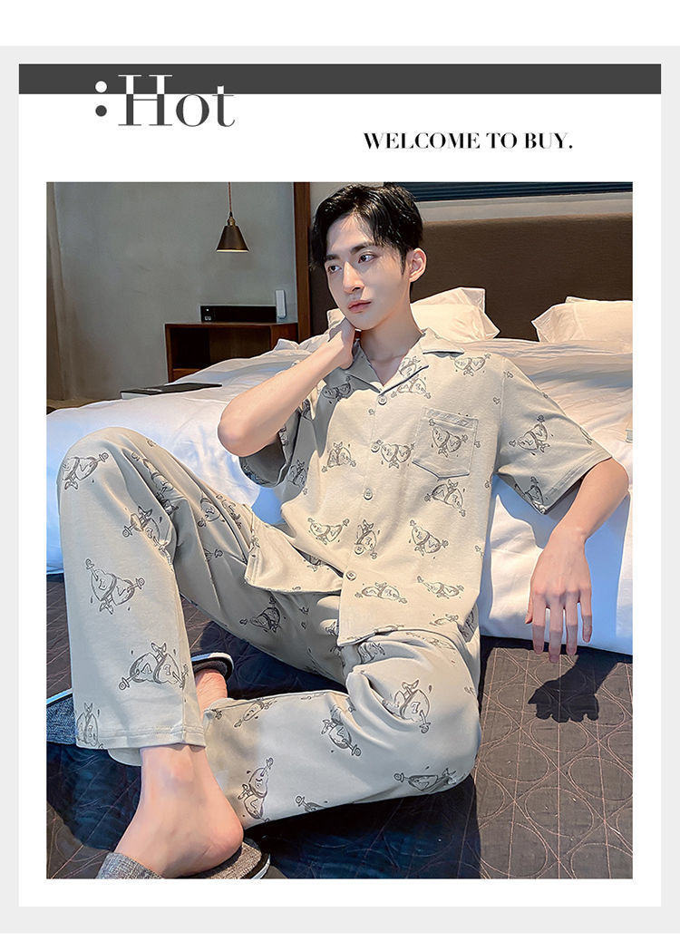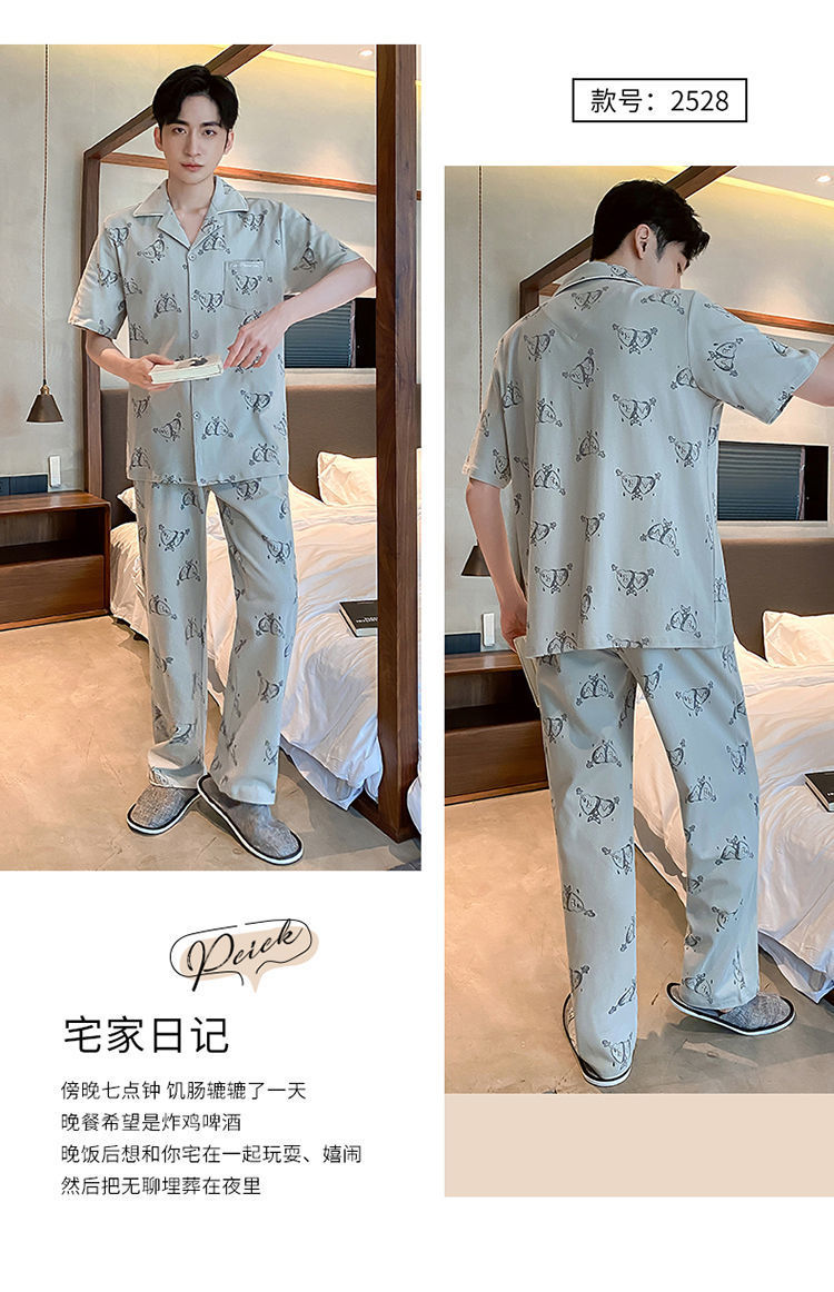 Pijamas de hombre de primavera y verano cardigan pantalones de manga corta 100% algodón de lujo casual ropa de abrigo homewear traje