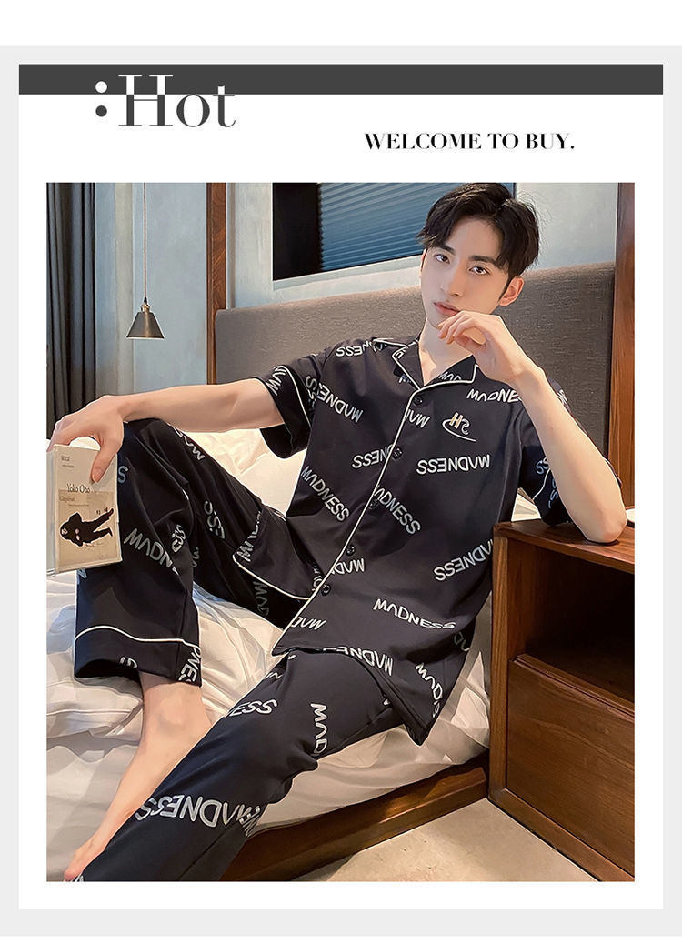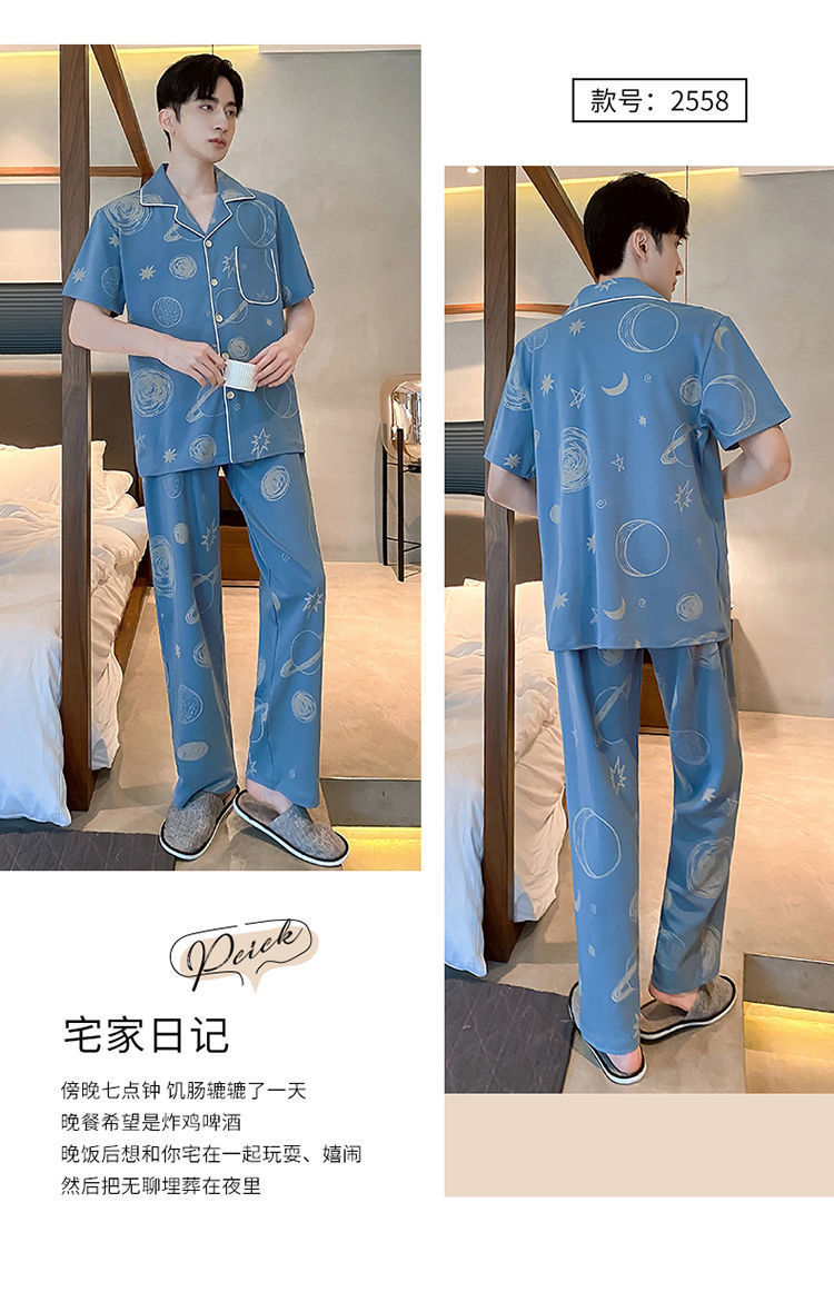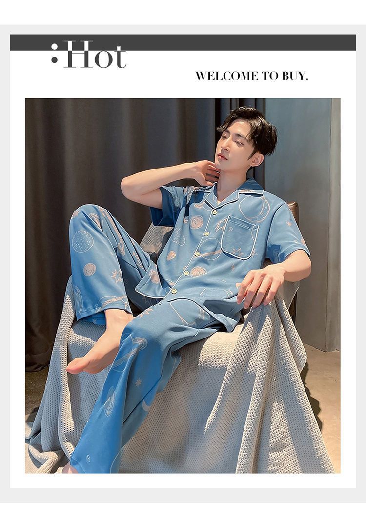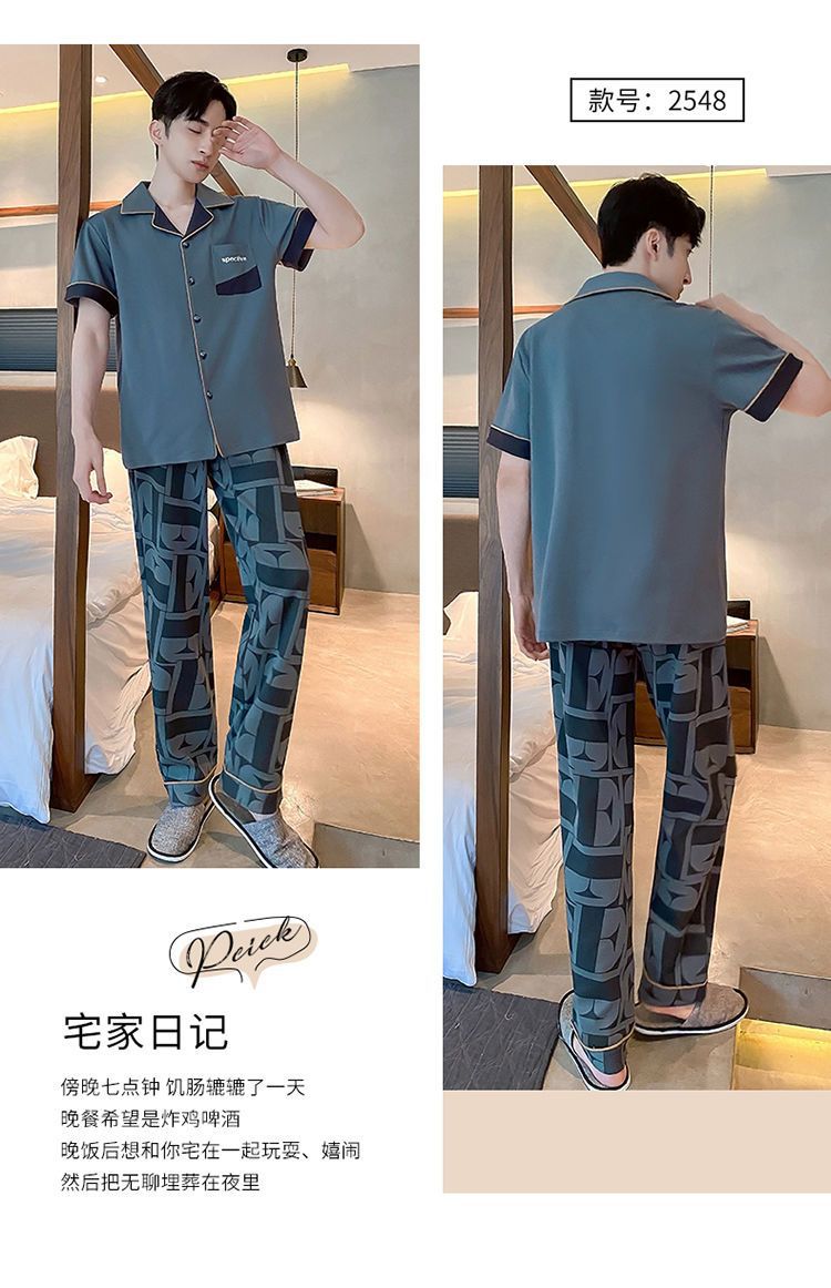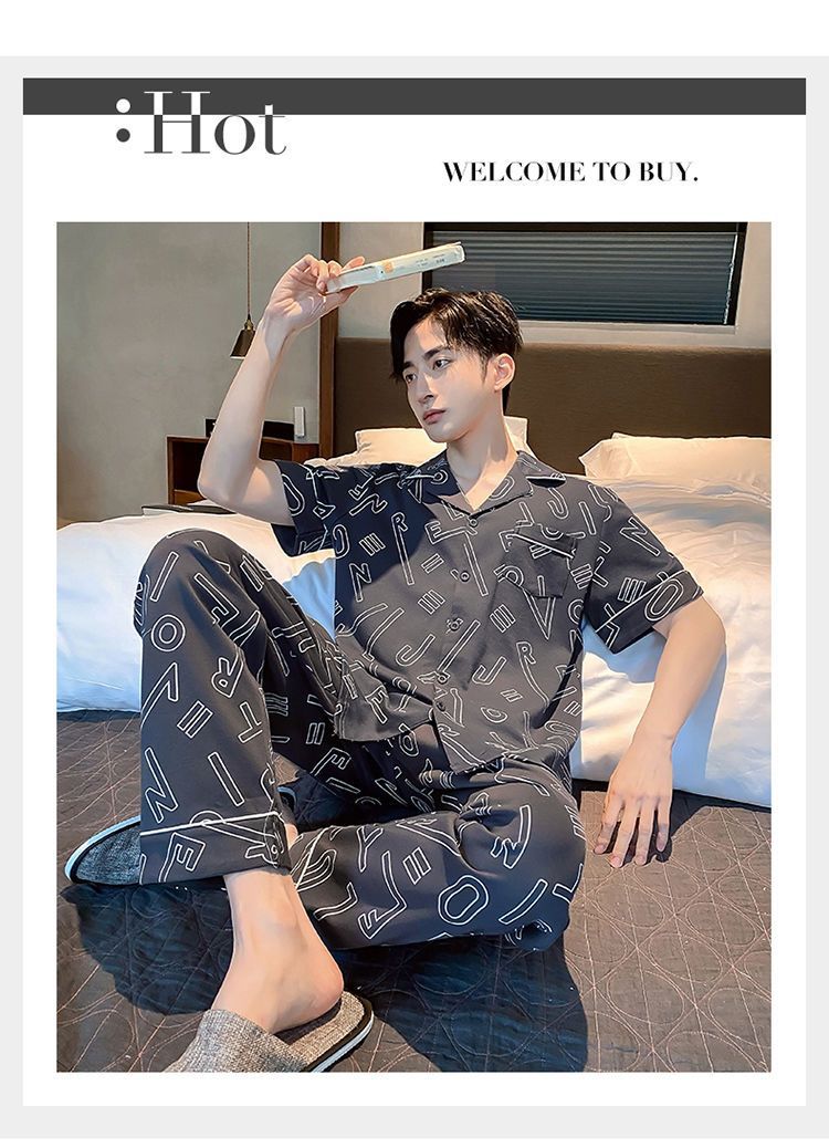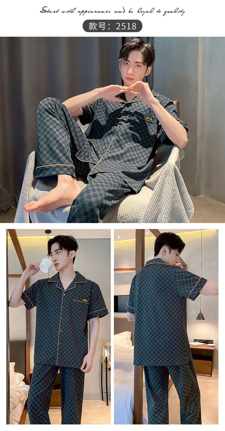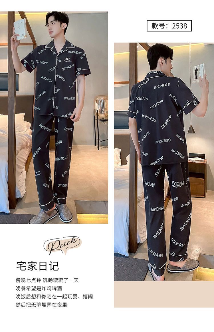 Pijamas de hombre de primavera y verano cardigan pantalones de manga corta 100% algodón de lujo casual ropa de abrigo homewear traje