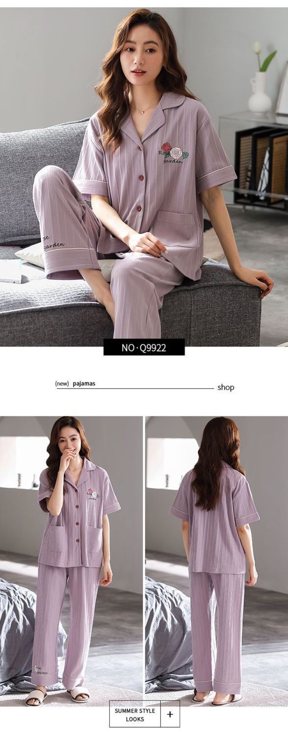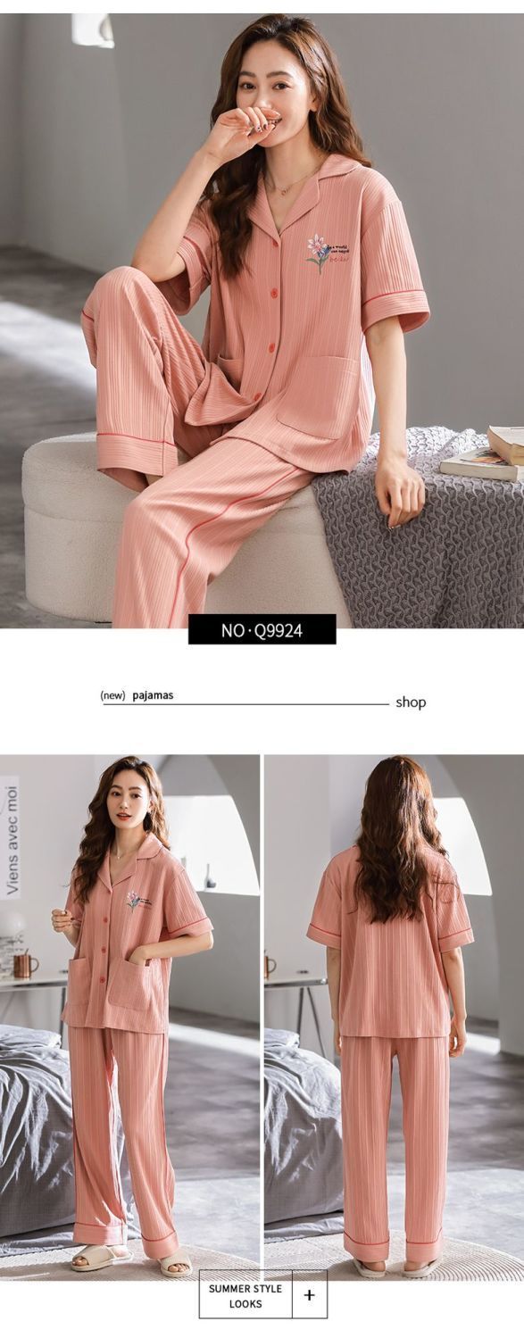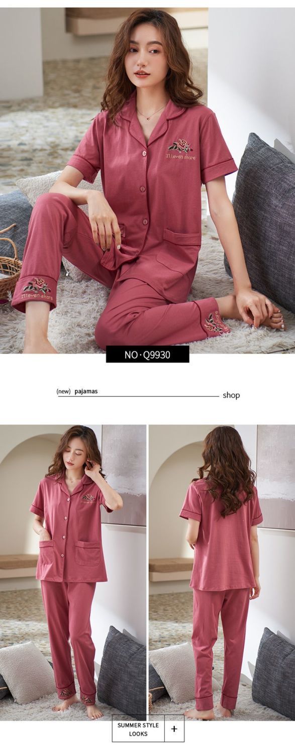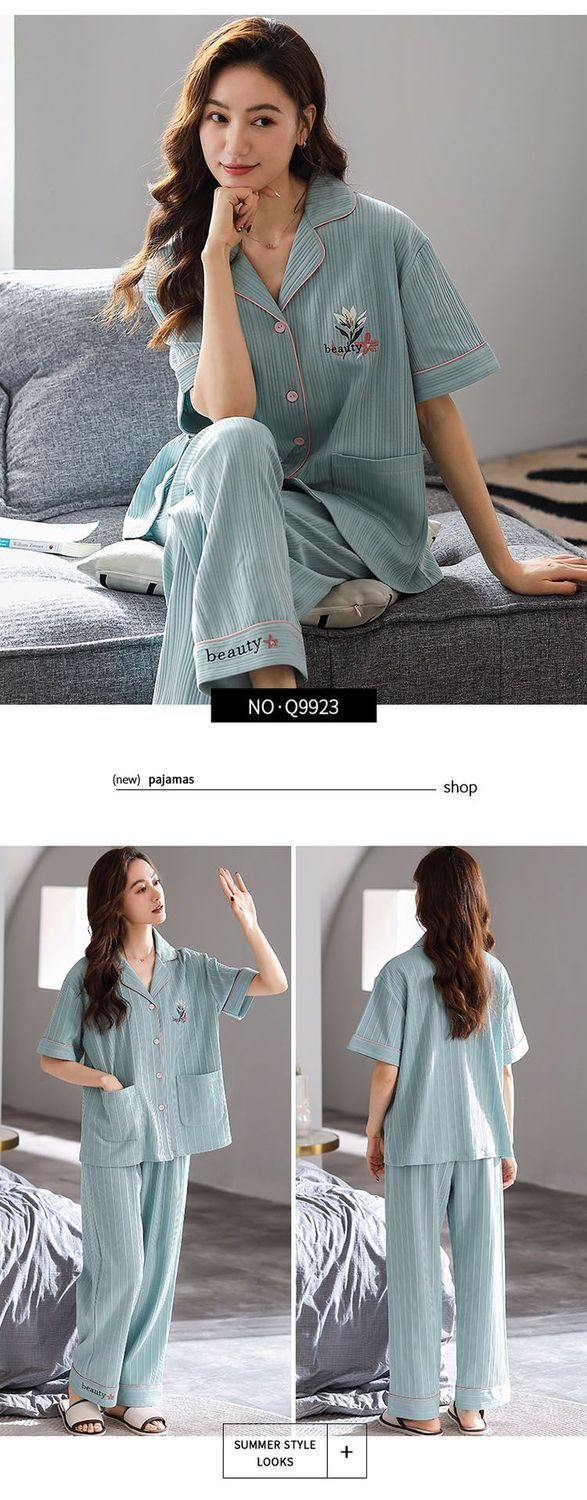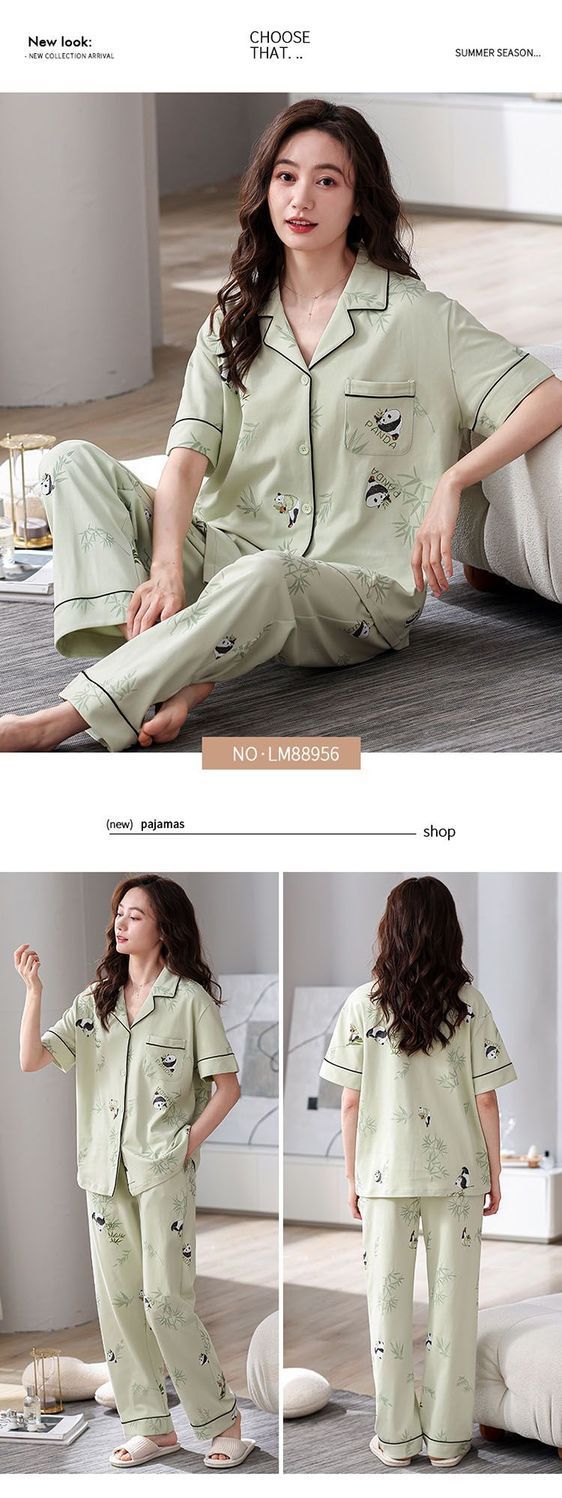 2023 nuevos pijamas de las mujeres de verano 100% algodón pantalones de manga corta chaqueta de solapa de mediana edad mamá ropa de casa
