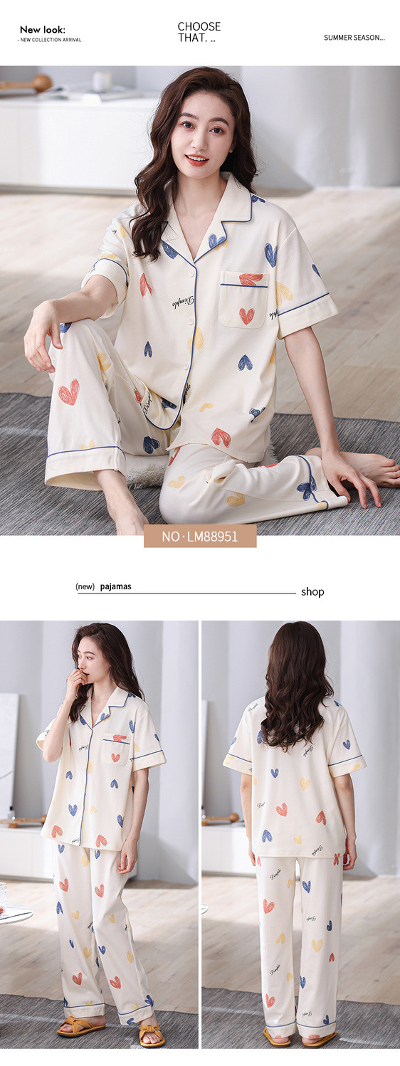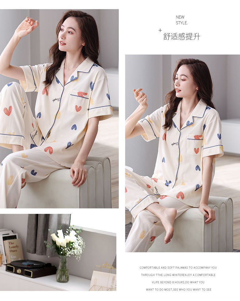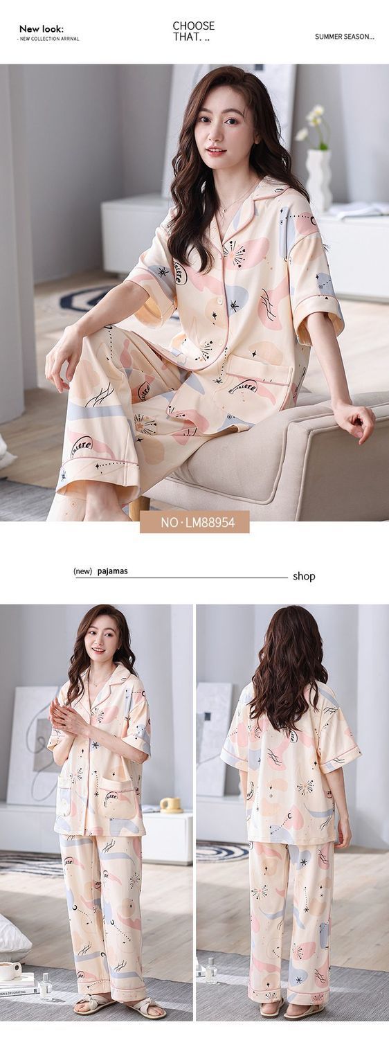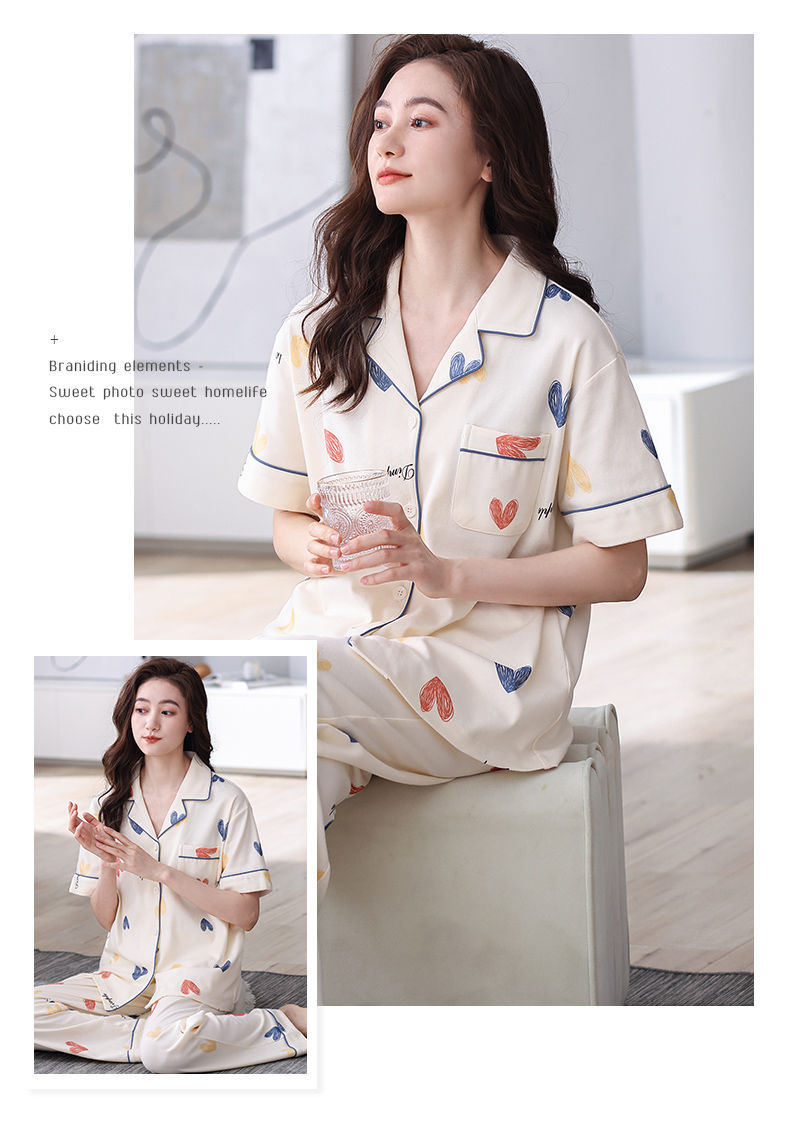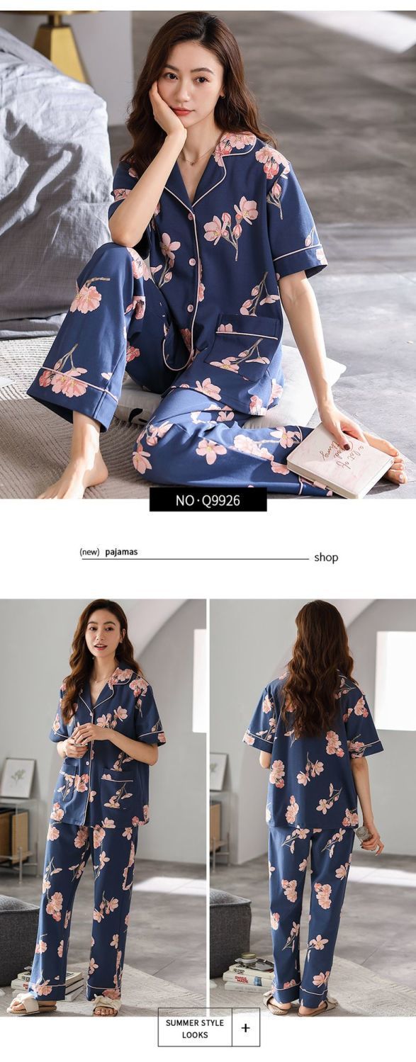 2023 nuevos pijamas de las mujeres de verano 100% algodón pantalones de manga corta chaqueta de solapa de mediana edad mamá ropa de casa
