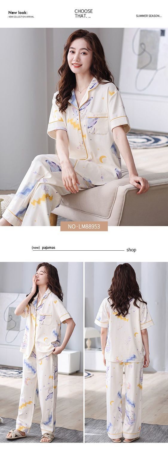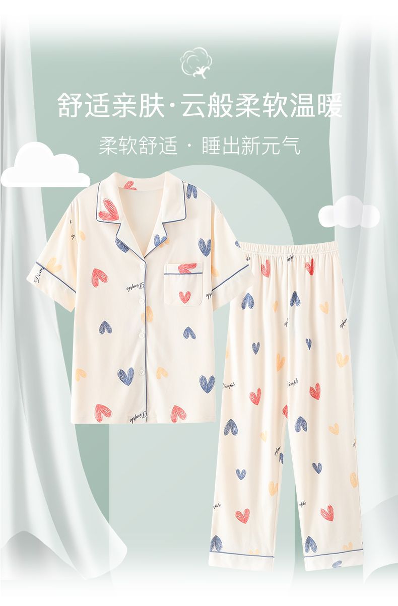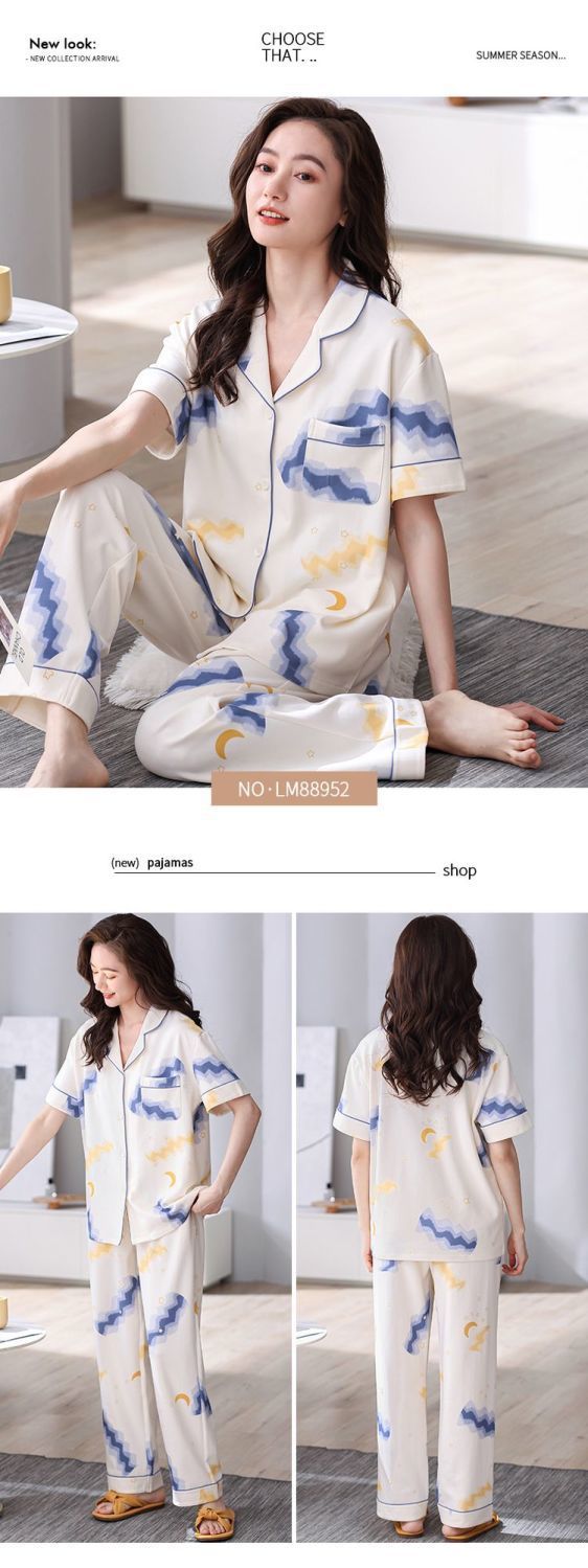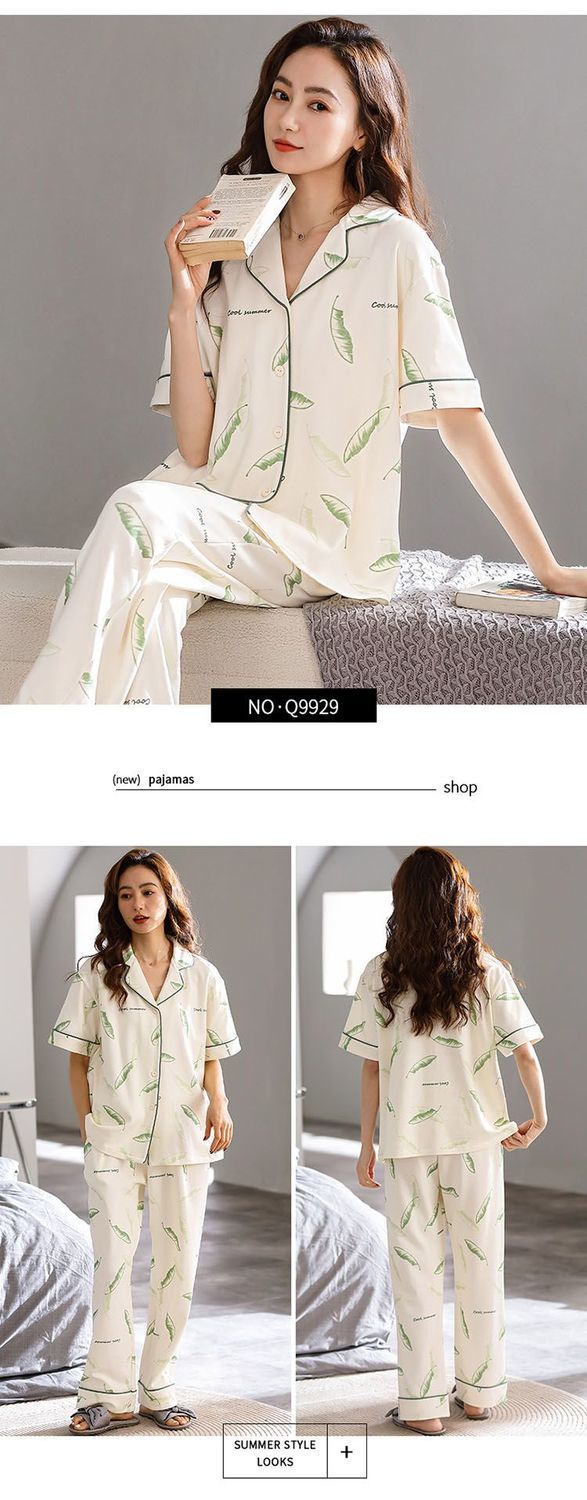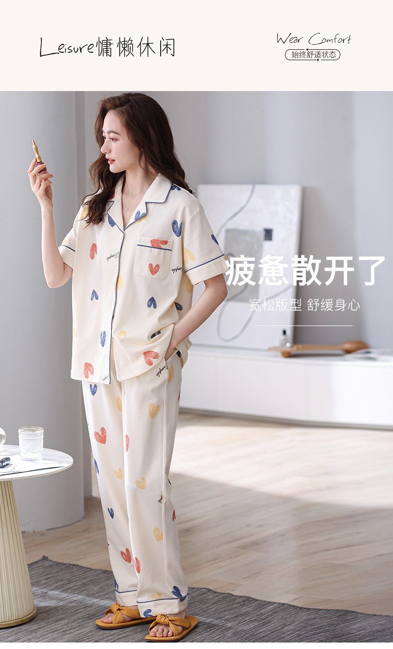 2023 nuevos pijamas de las mujeres de verano 100% algodón pantalones de manga corta chaqueta de solapa de mediana edad mamá ropa de casa