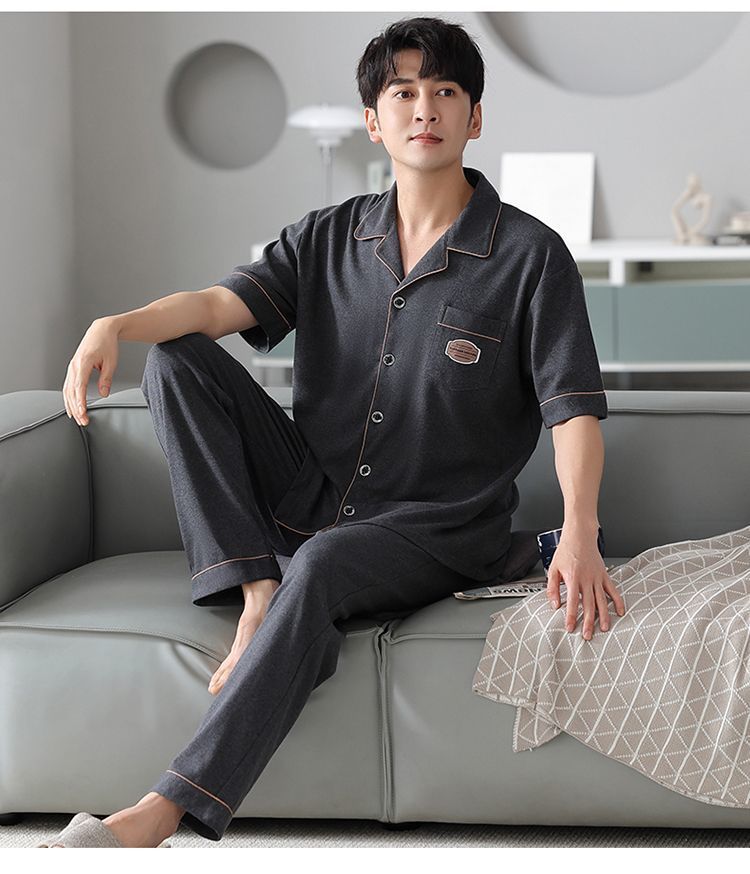 100% pantalones de algodón de manga corta pijamas de hombre verano más tamaño traje de algodón suelto ropa para el hogar