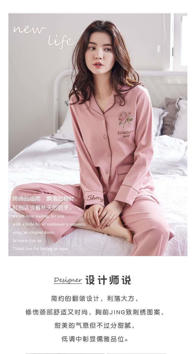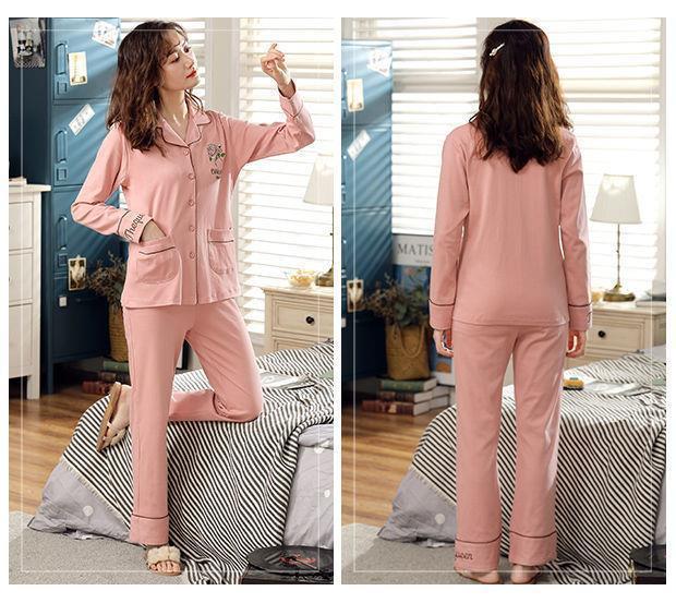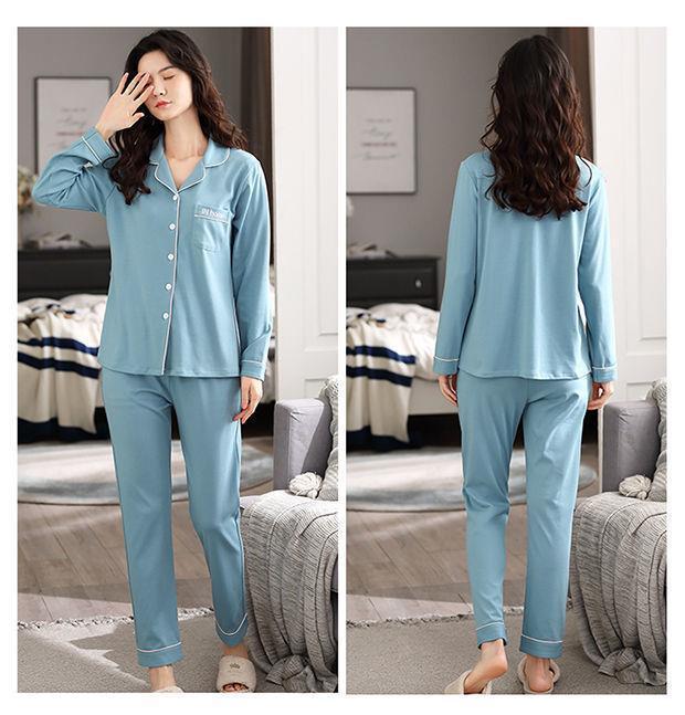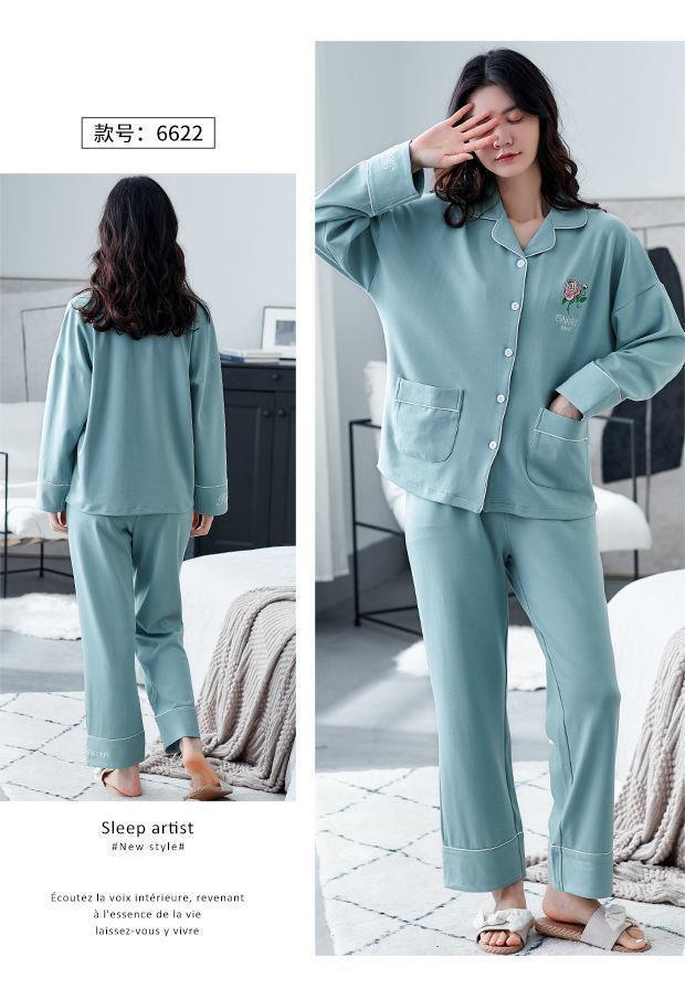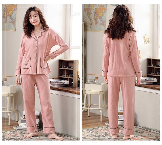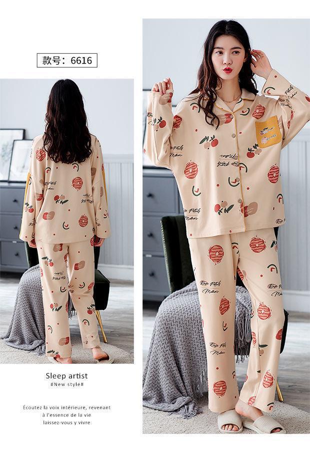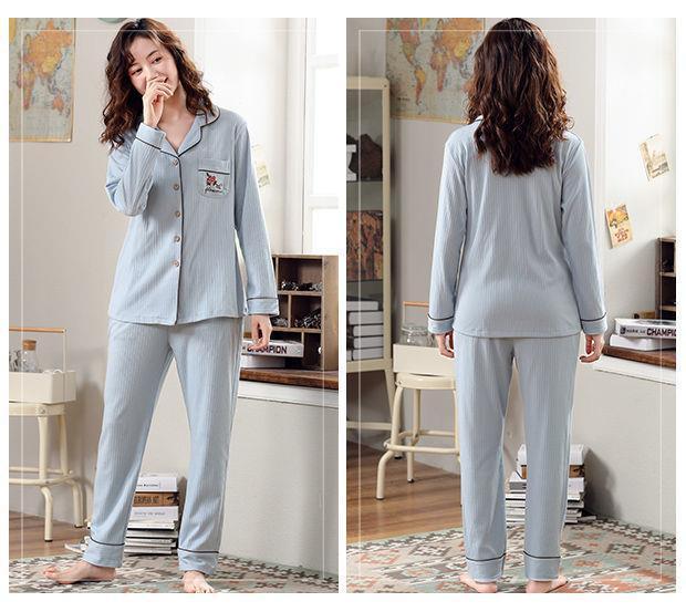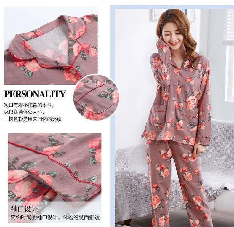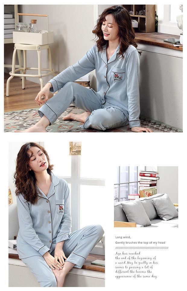 Pijamas de las mujeres de primavera y otoño 100% algodón de manga larga Chaqueta de punto más el tamaño de la madre desgaste del hogar traje de verano cómodo mes