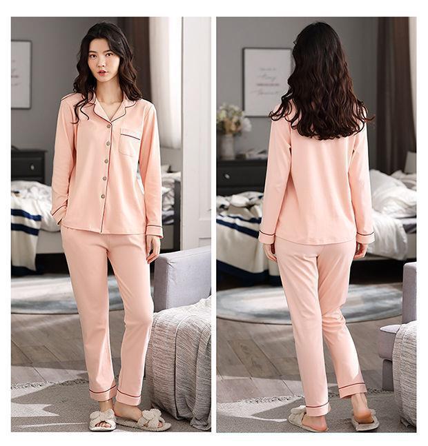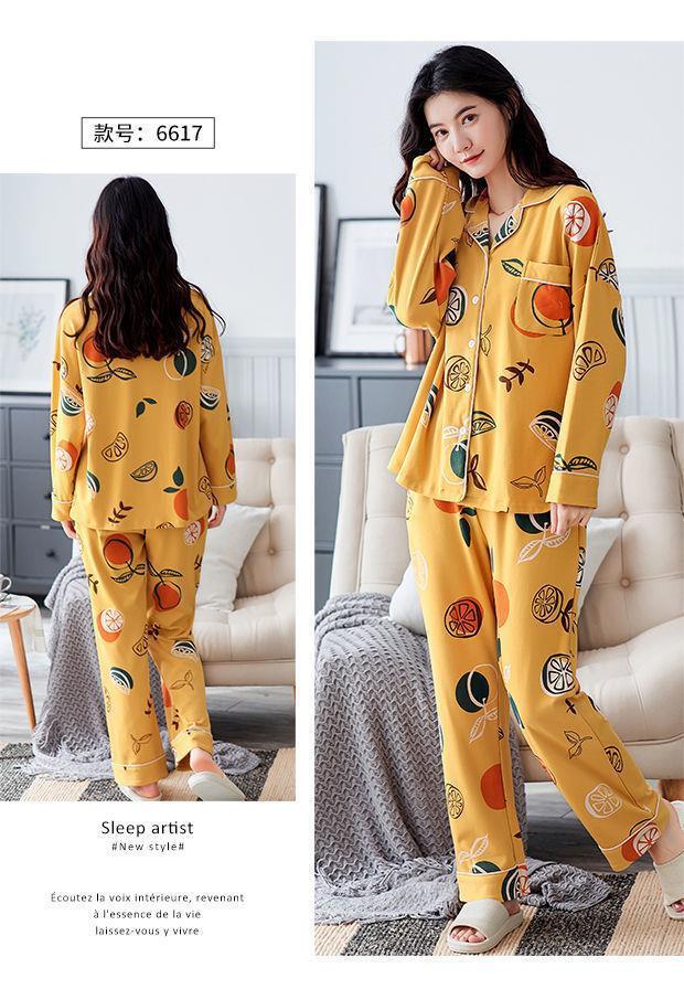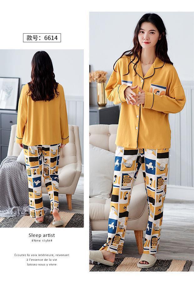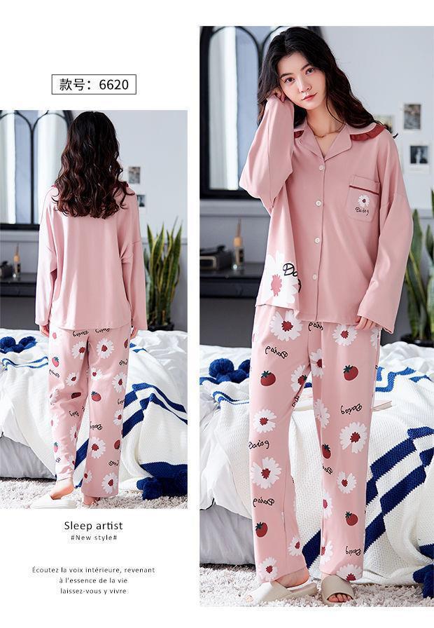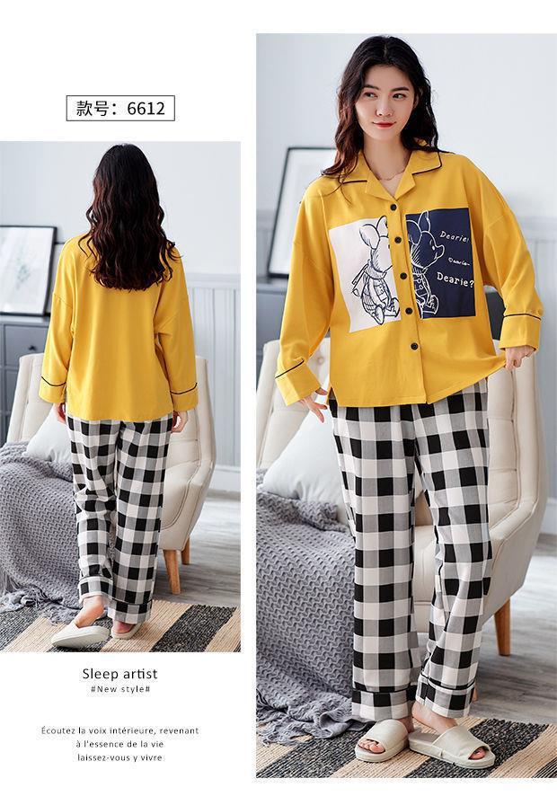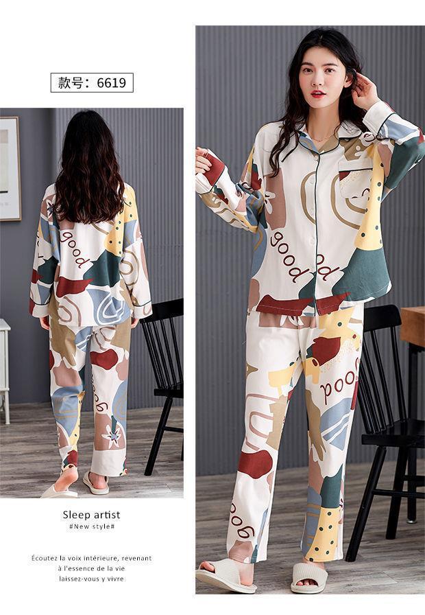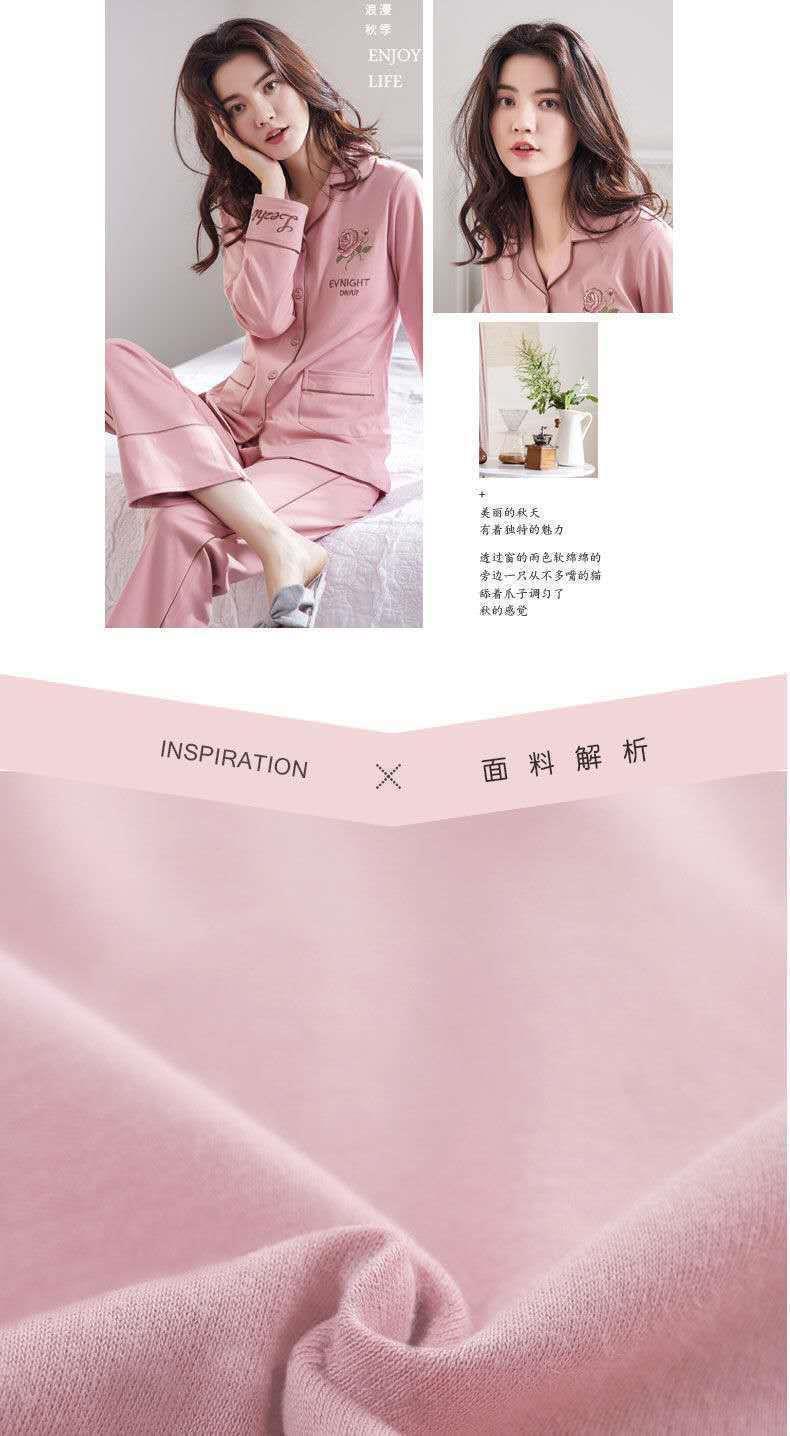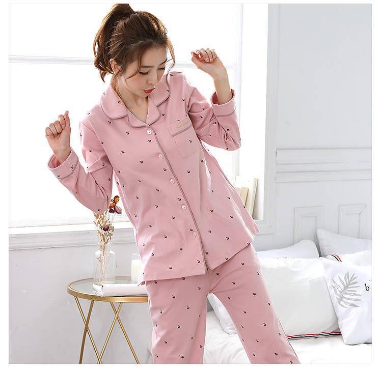 Pijamas de las mujeres de primavera y otoño 100% algodón de manga larga Chaqueta de punto más el tamaño de la madre desgaste del hogar traje de verano cómodo mes