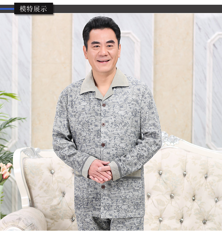Pijama de mediana edad y ancianos primavera y otoño de los hombres 100% algodón de manga larga hogar ^ más el tamaño de mediana edad papá traje de dos piezas