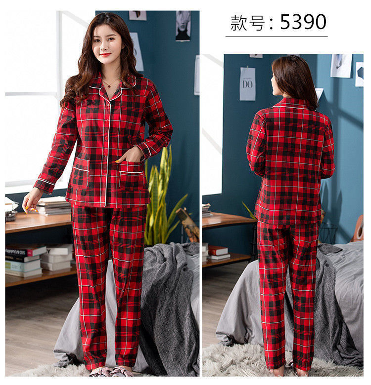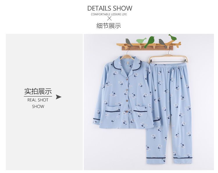 100% Pijama de algodón de manga larga primavera y otoño de mediana edad y anciano traje cardigan más tamaño madre de mediana edad