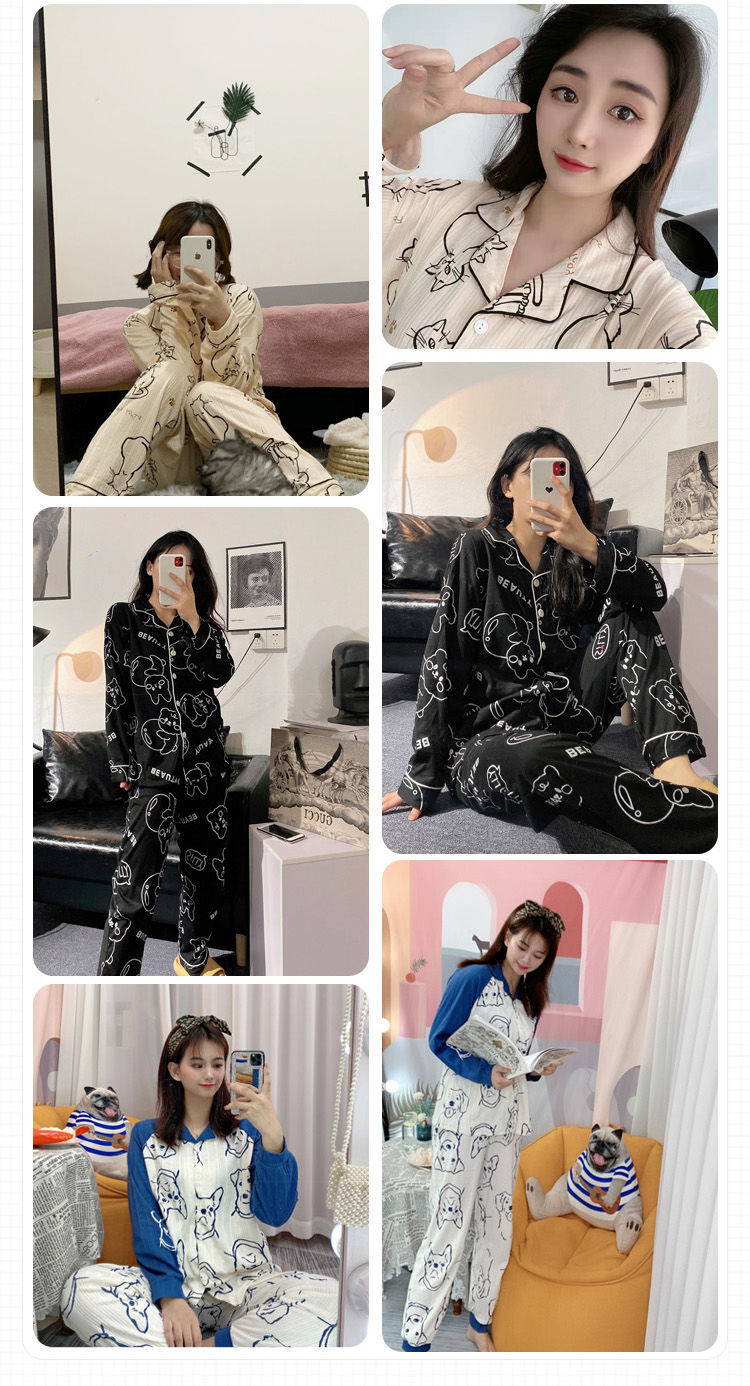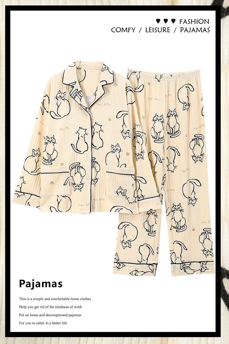 2023 nuevo pijamas mujeres primavera y otoño manga larga 100% algodón ins estilo hogar servicio más traje