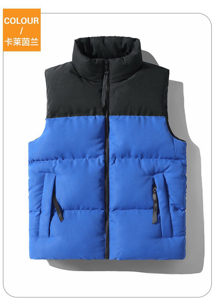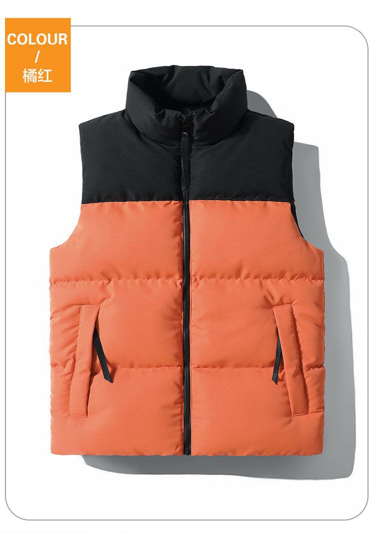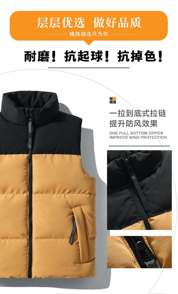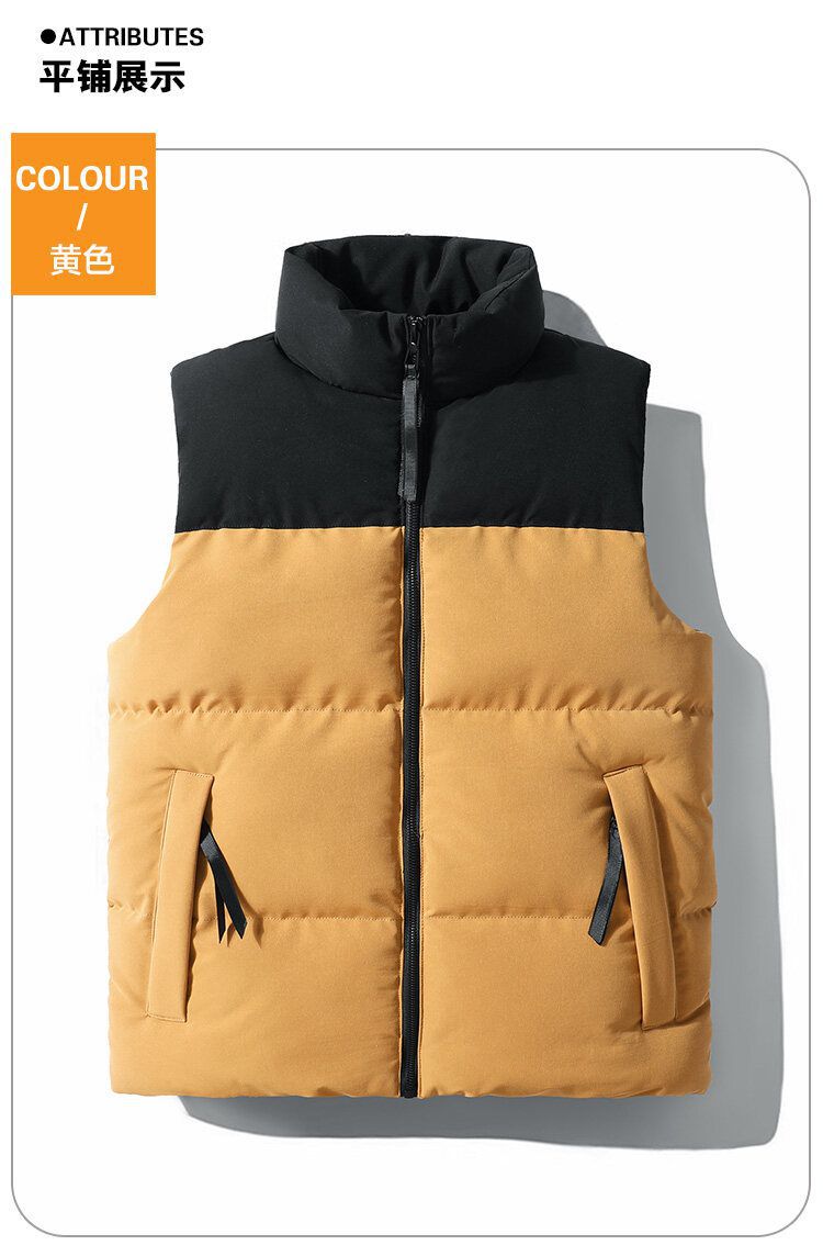 Chaleco de algodón transfronterizo Chaleco de invierno cálido Chaleco de costura de los hombres forrado de lana a prueba de viento impermeable con cremallera bolsillo abrigo de moda