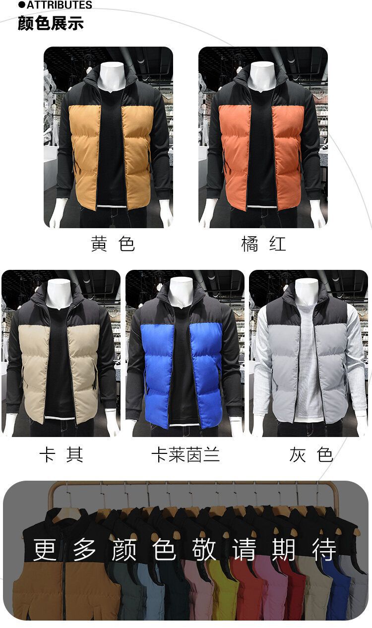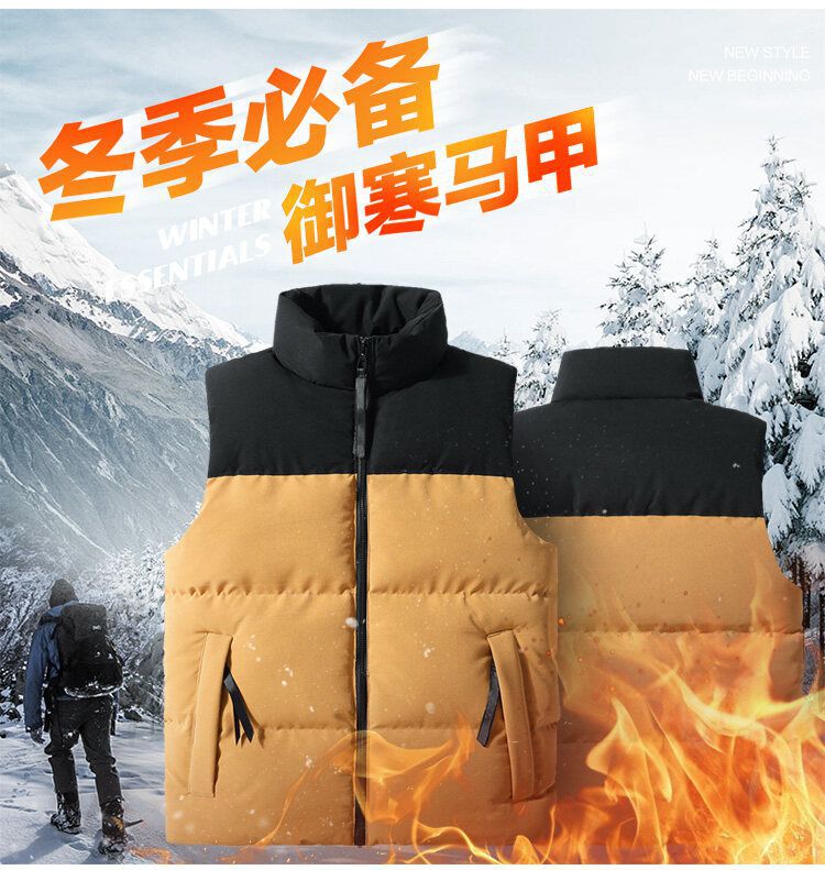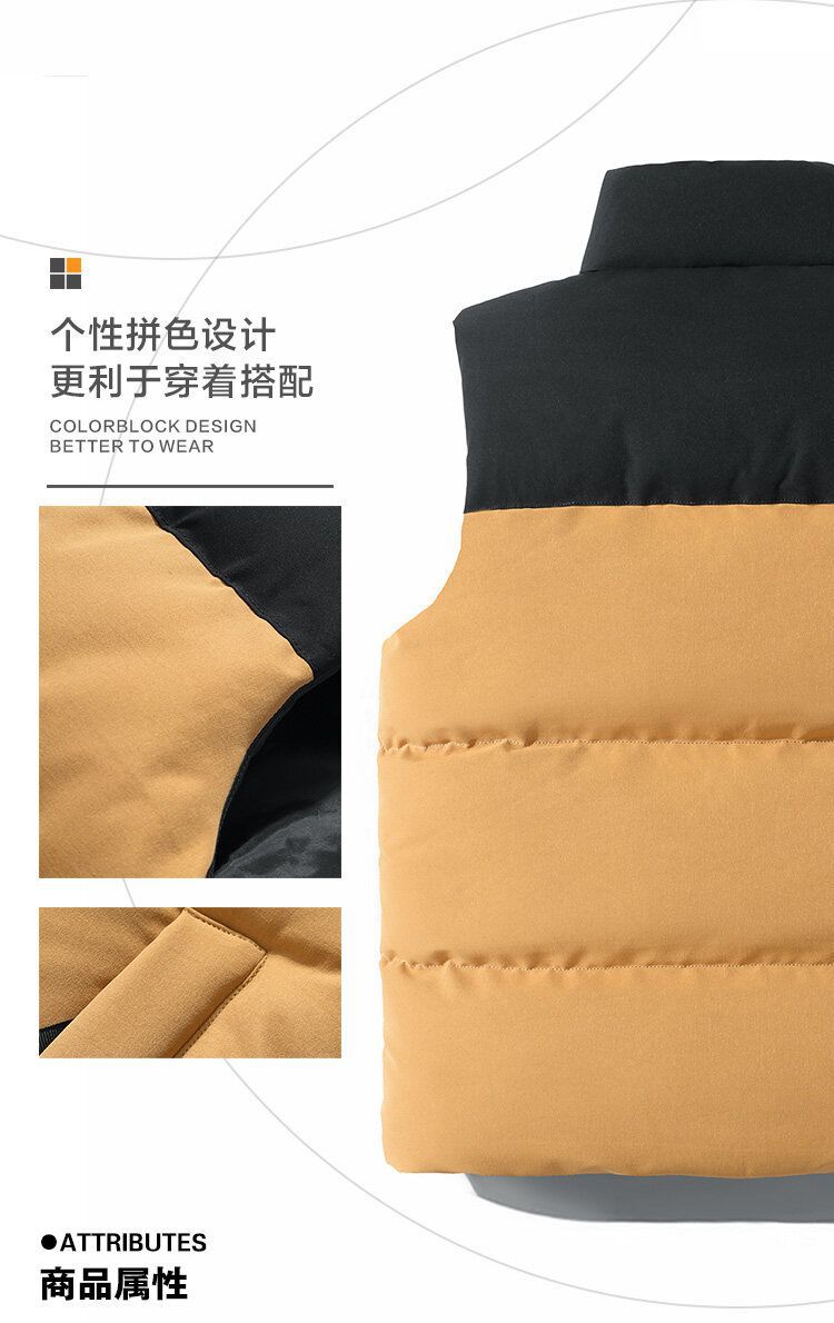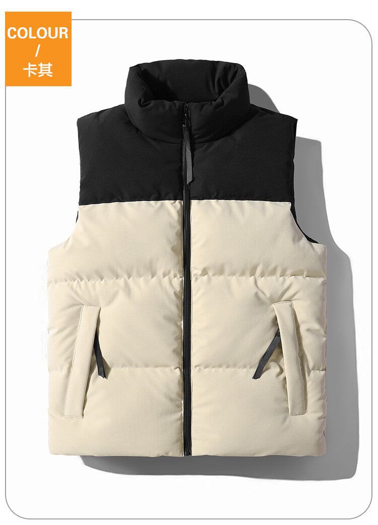 Chaleco de algodón transfronterizo Chaleco de invierno cálido Chaleco de costura de los hombres forrado de lana a prueba de viento impermeable con cremallera bolsillo abrigo de moda