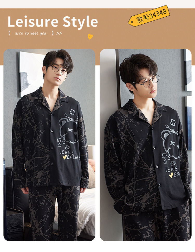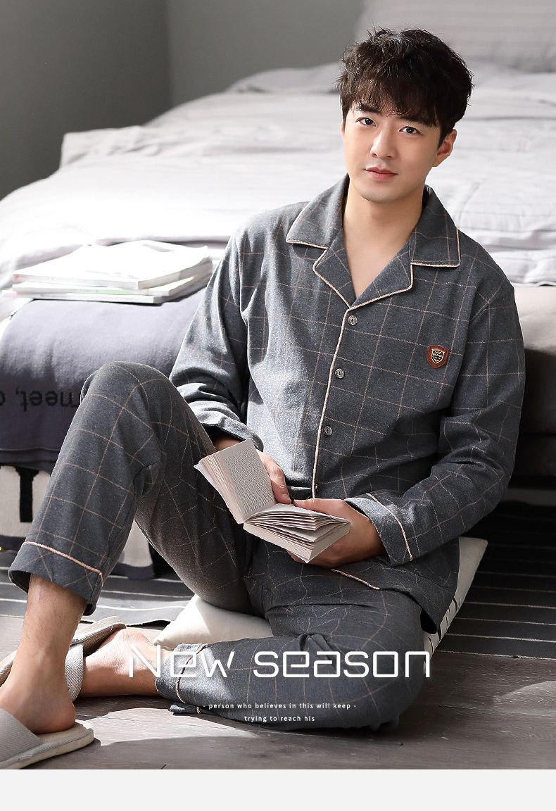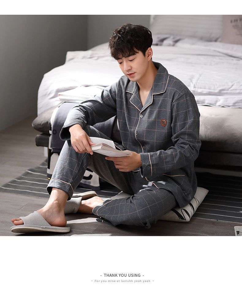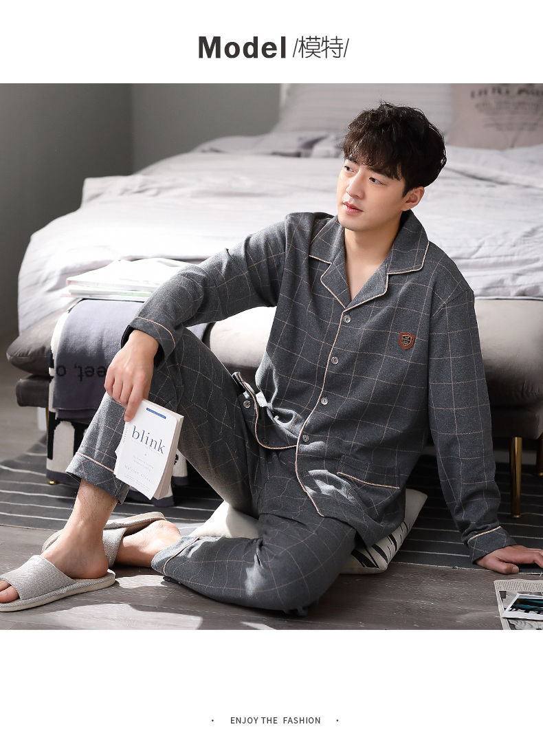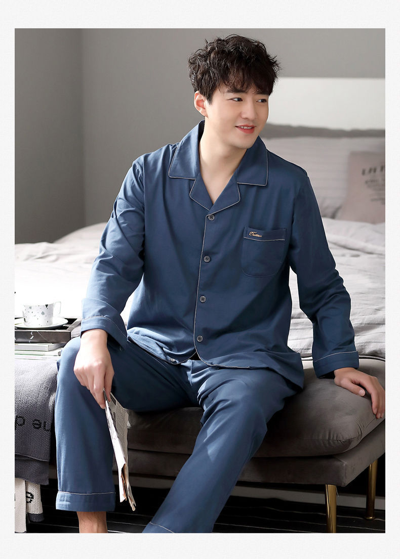 100% pijamas de algodón de los hombres de primavera y otoño de manga larga de algodón casual prendas de vestir exteriores más tamaño ropa para el hogar traje de invierno