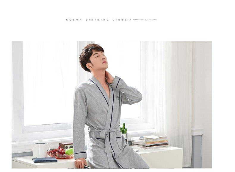 Camisón de pareja primavera y otoño 100% algodón largo Albornoz de las mujeres Otoño e Invierno de manga larga cómodo Delgado estilo japonés Pijamas