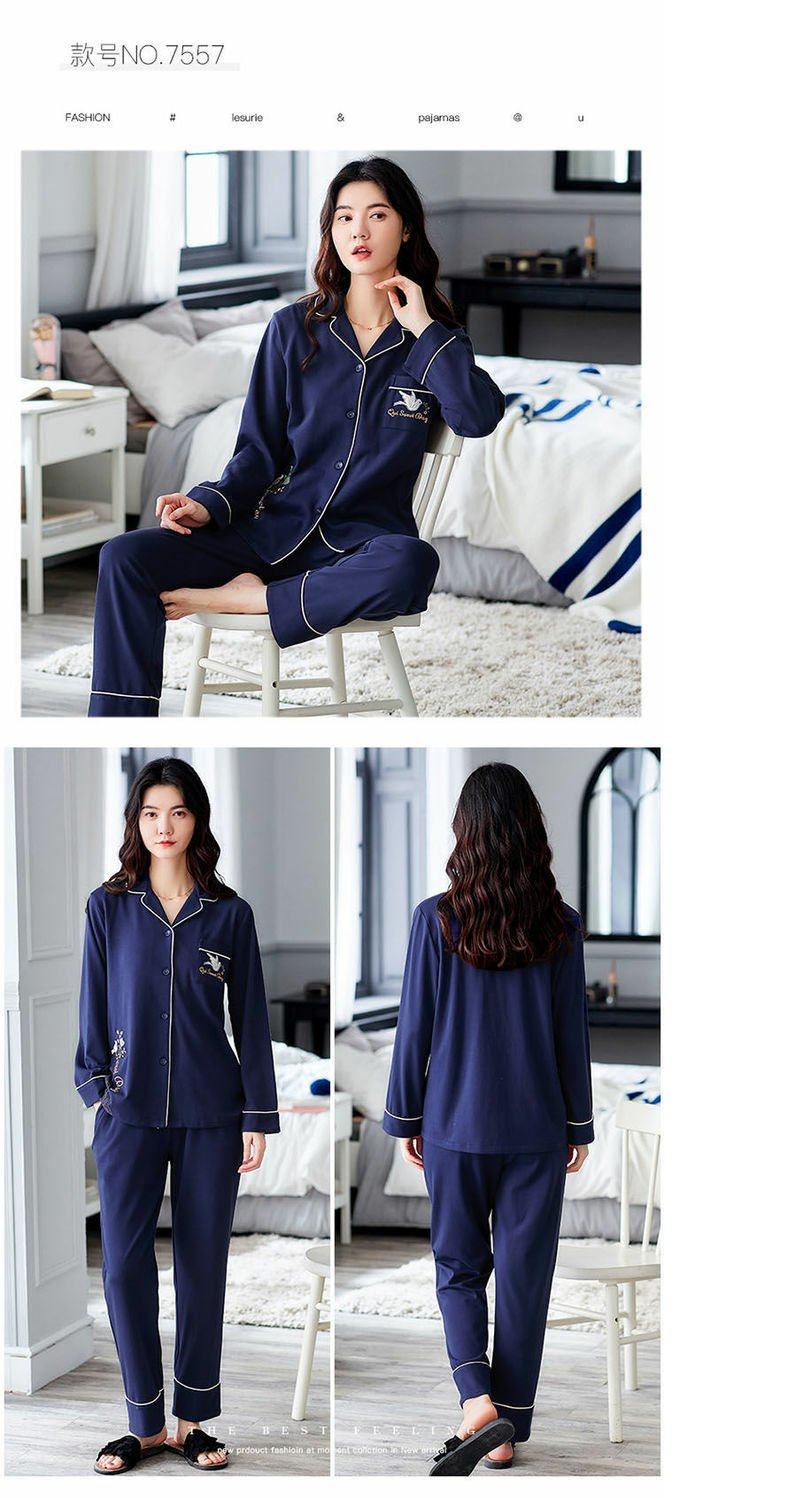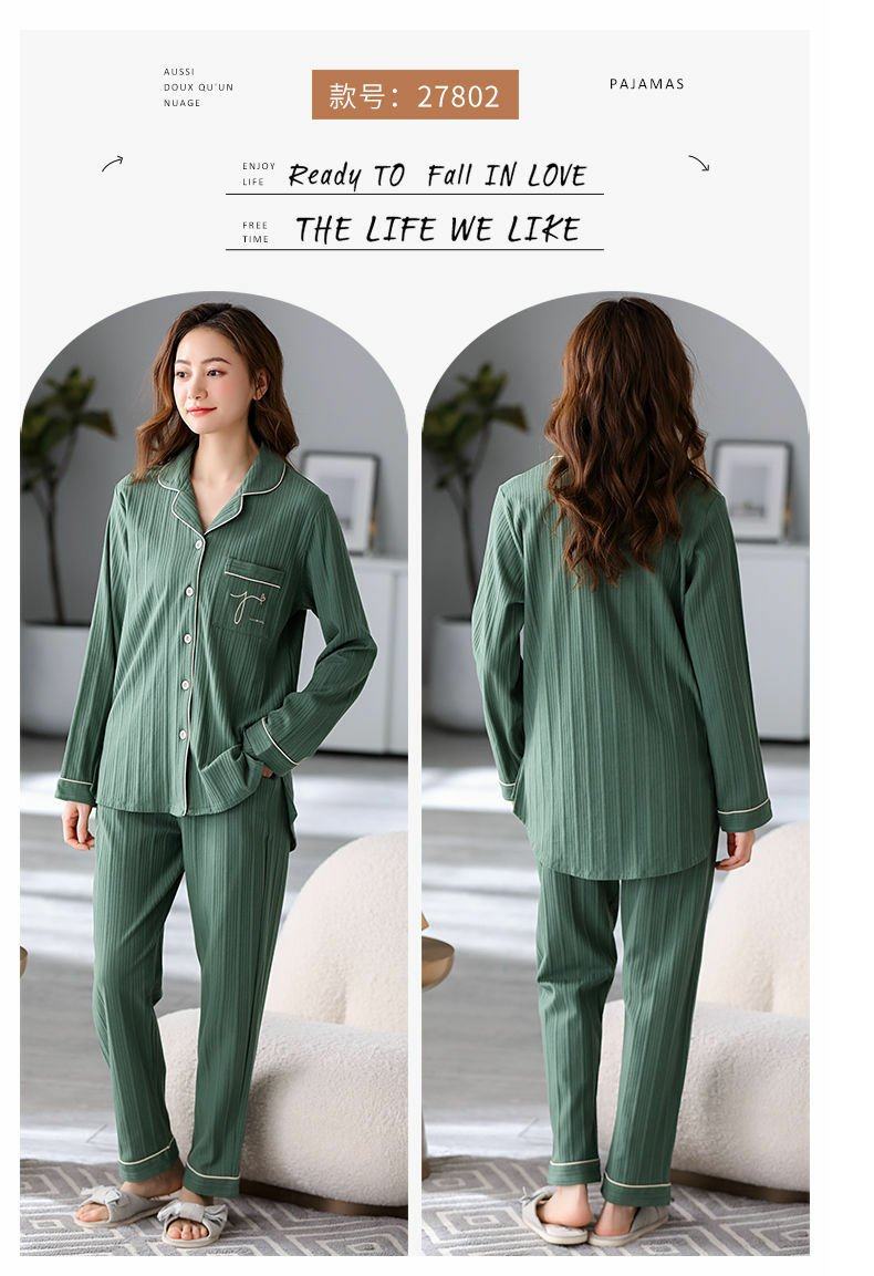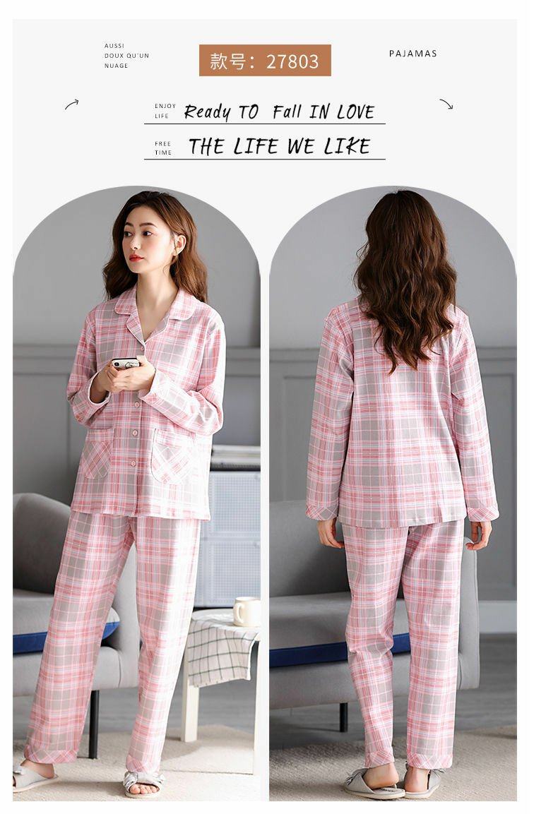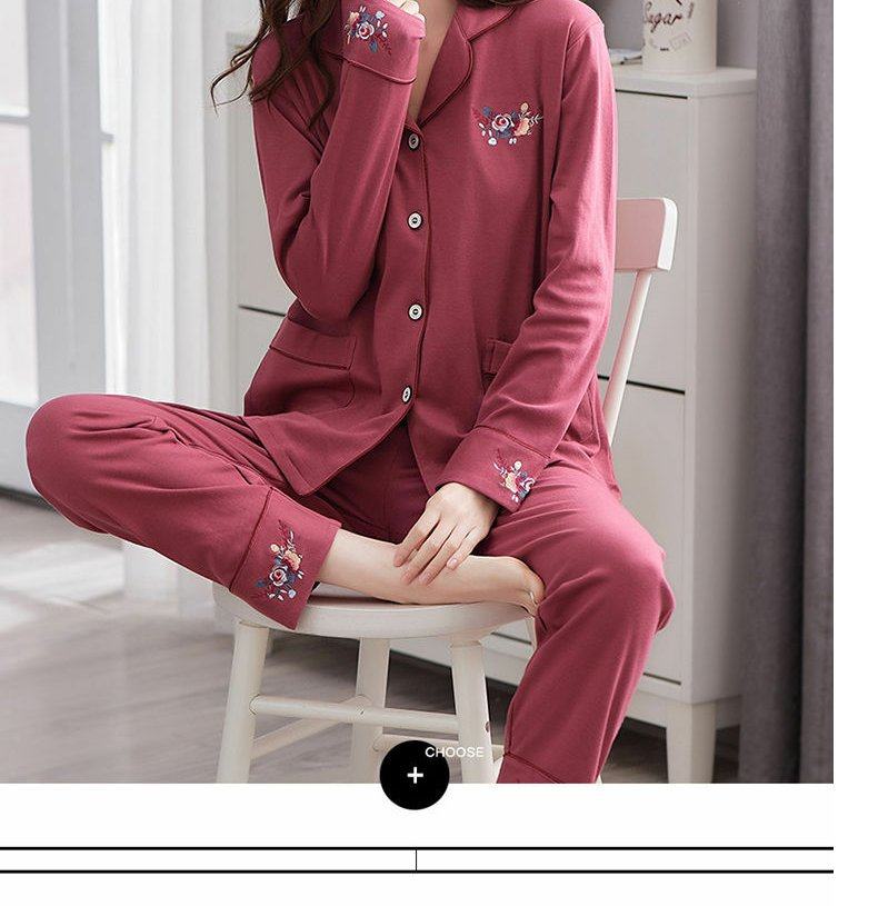 Pijamas de estilo coreano para mujer otoño 100% cardigan de algodón de manga larga para el hogar traje suelto de primavera, Otoño e Invierno para mujer