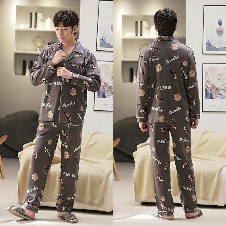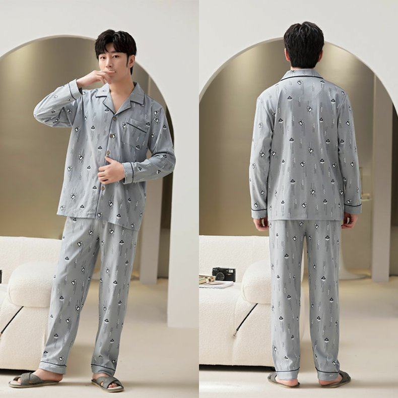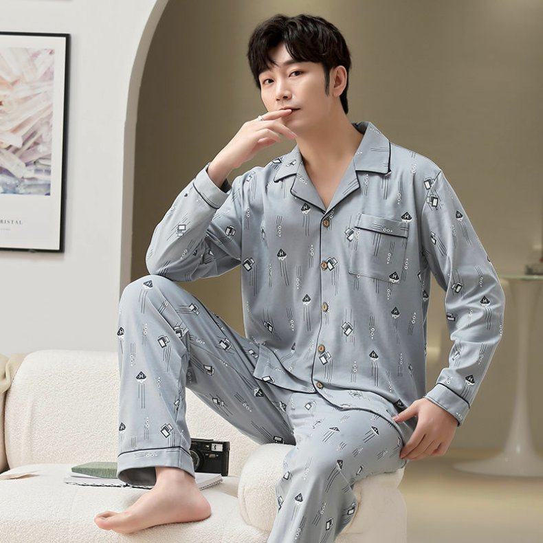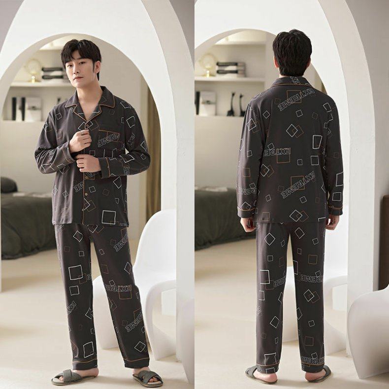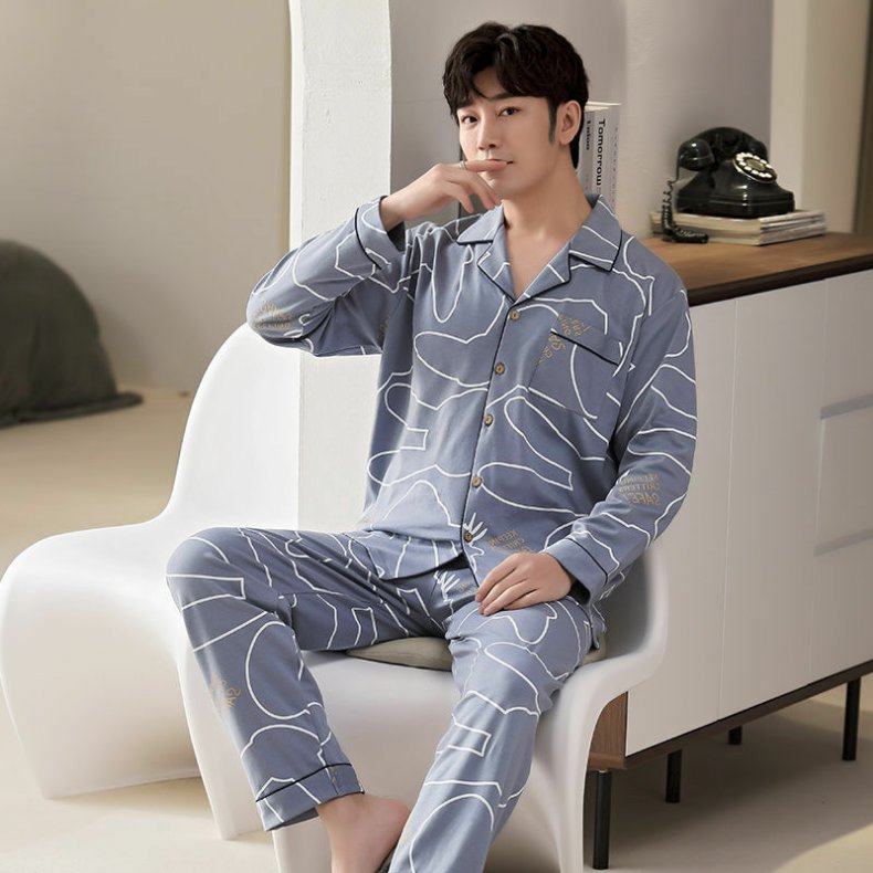 Primavera y otoño pijamas hombres 100% algodón de manga larga más el tamaño de los hombres jóvenes y de mediana edad desgaste del hogar traje de primavera y otoño