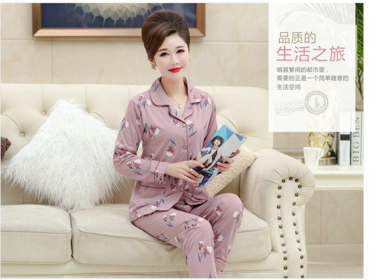 Pijama de algodón 100% de primavera y otoño de las mujeres de manga larga de mediana edad mamá cardigan más tamaño de mediana edad y ancianos traje de desgaste para el hogar