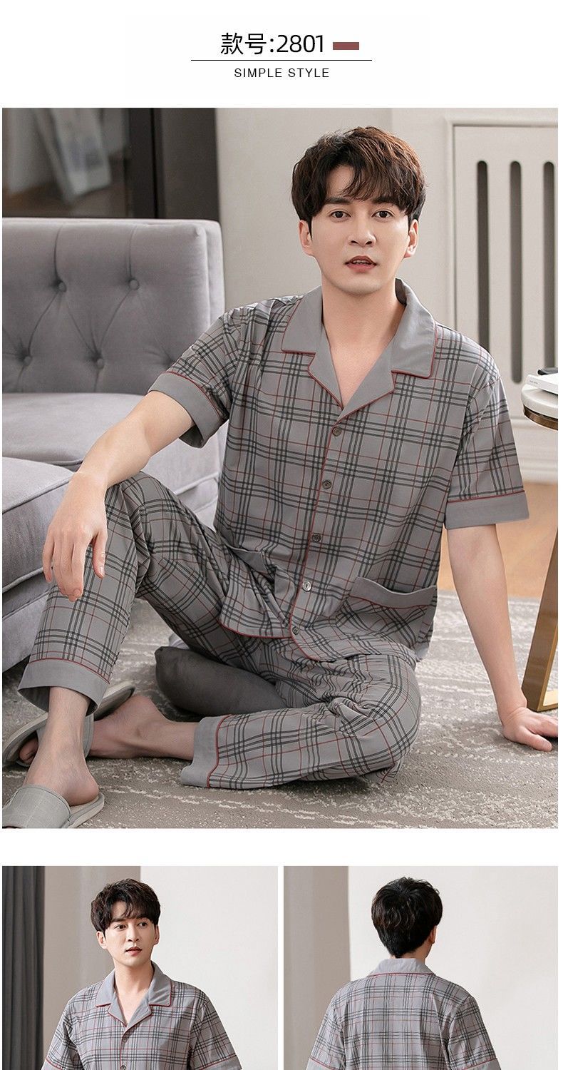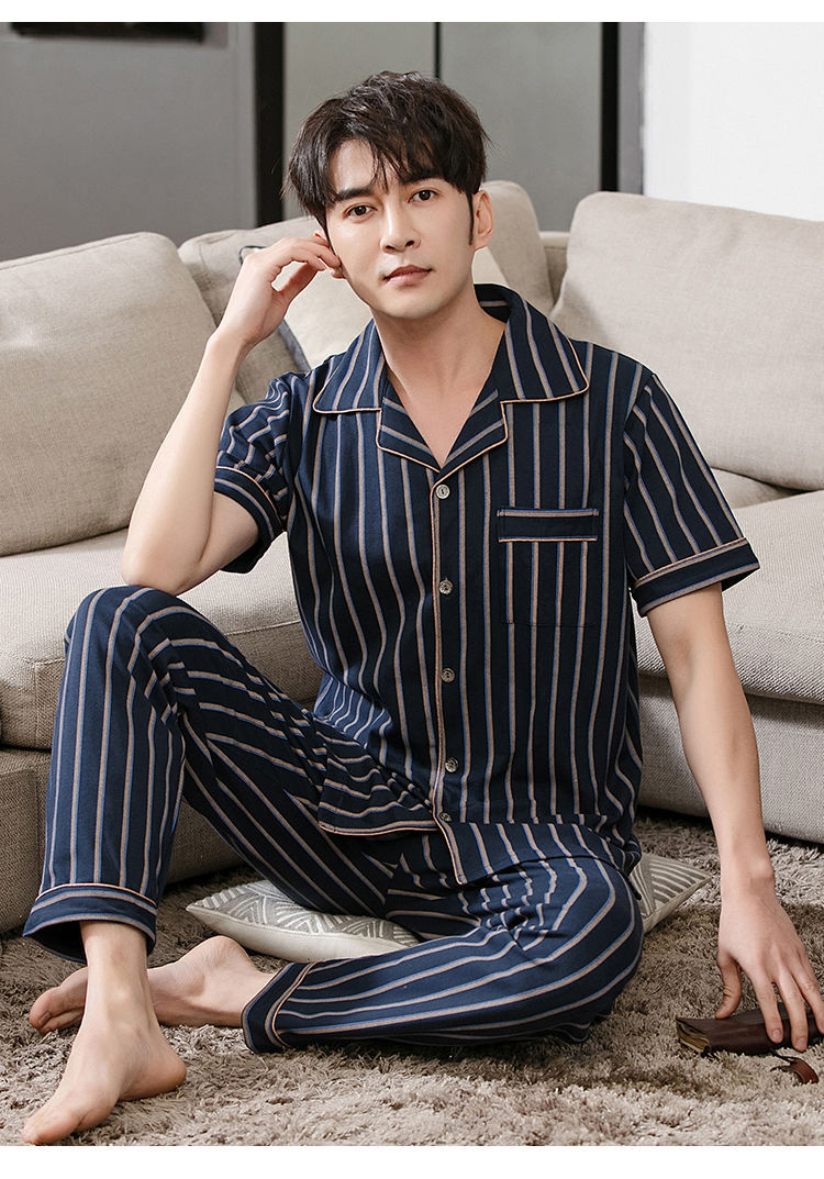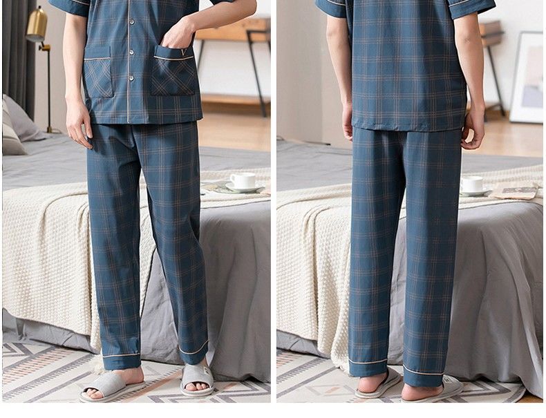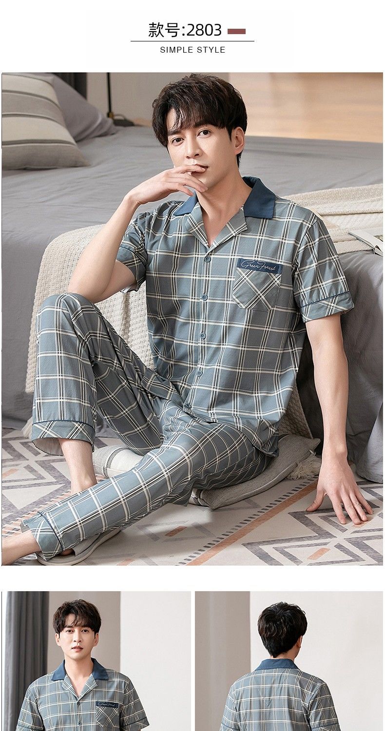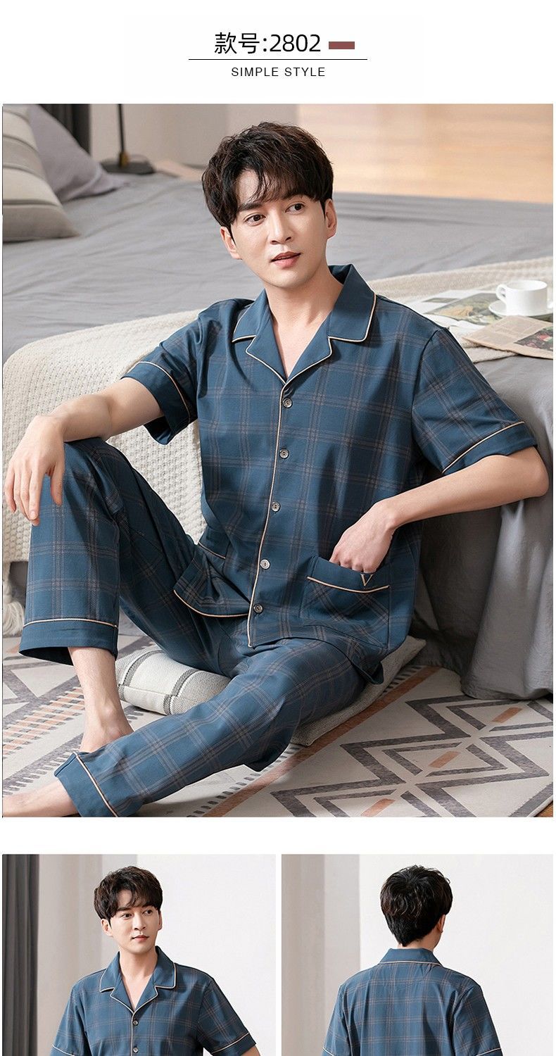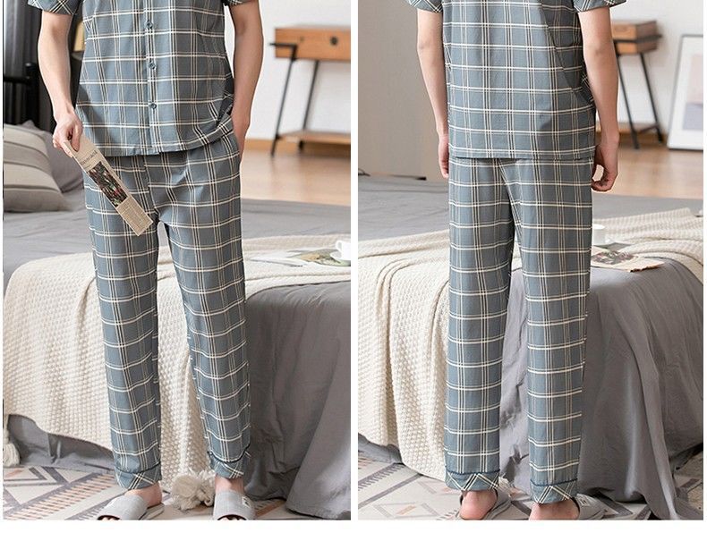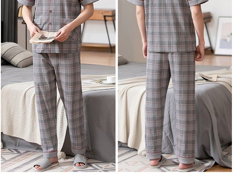 Pijamas de los hombres de verano 100% algodón pantalones de manga corta de media manga de primavera y otoño delgada cardigan ropa para el hogar más tamaño