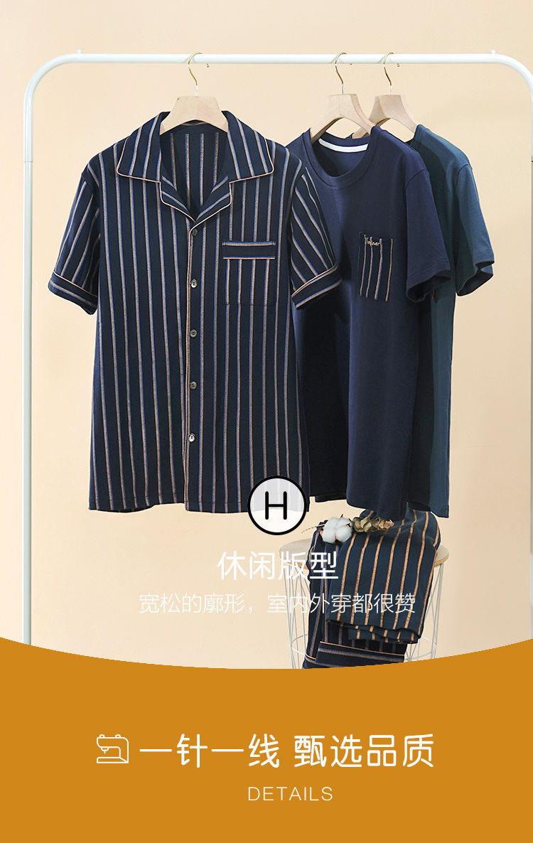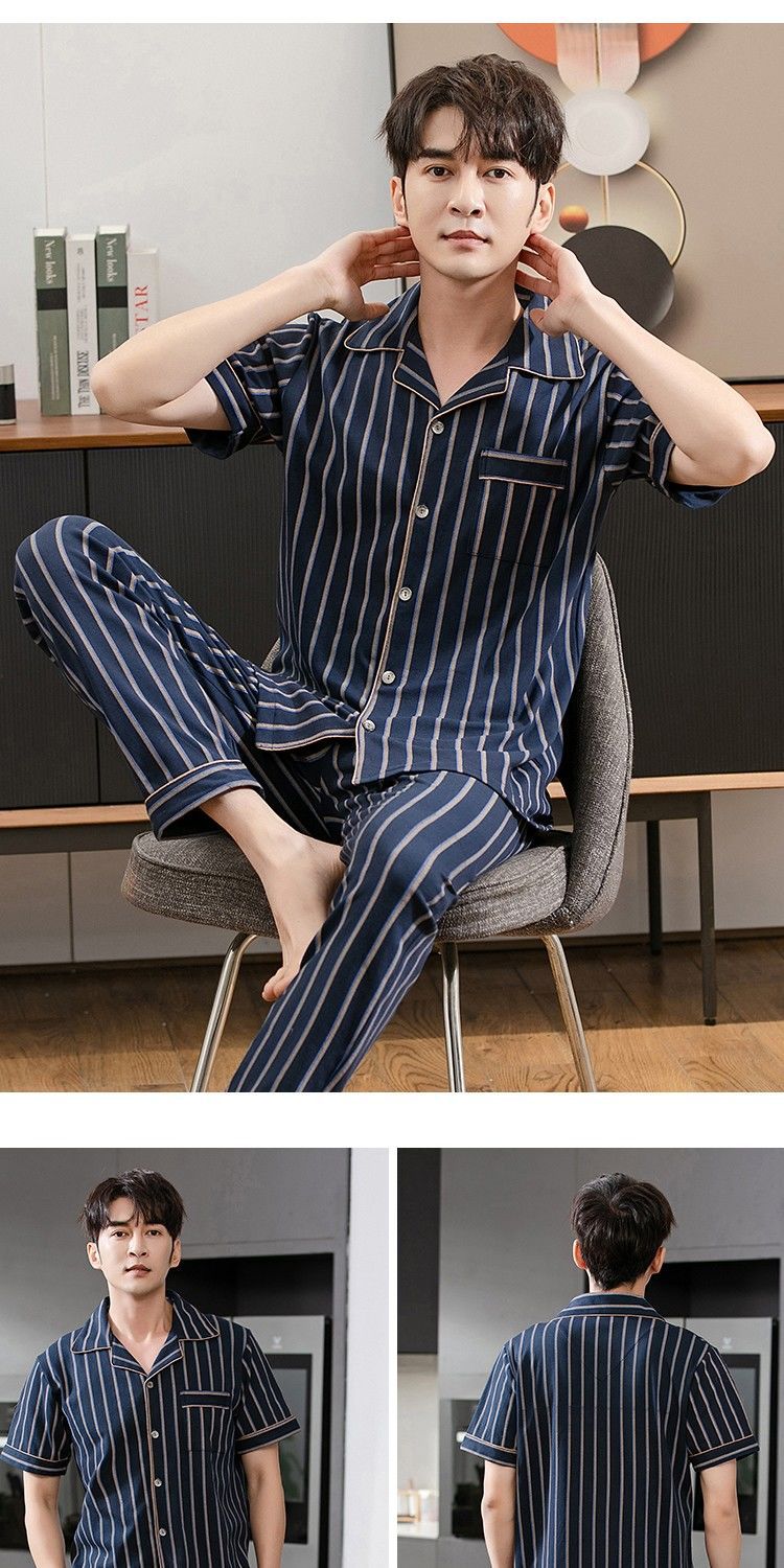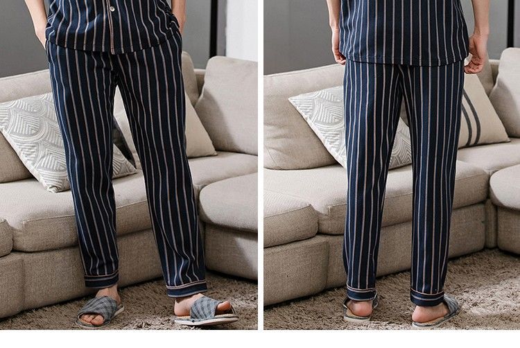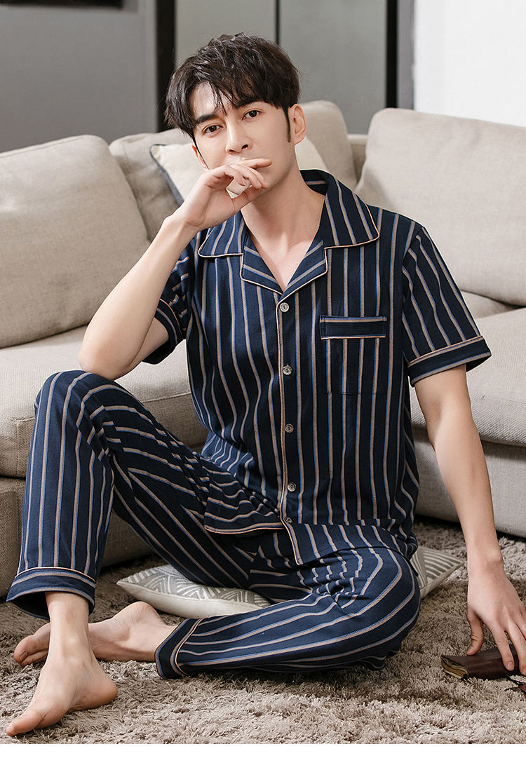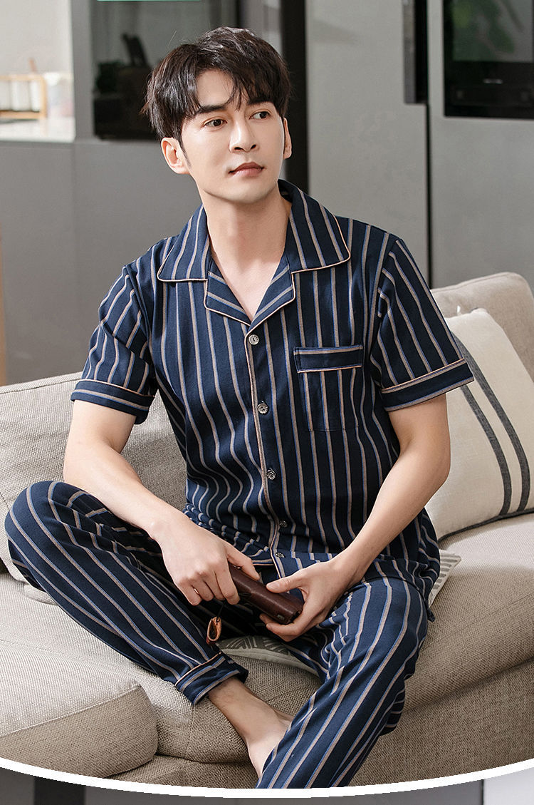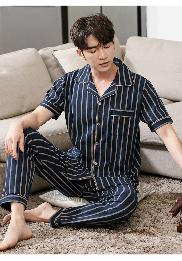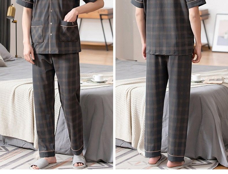 Pijamas de los hombres de verano 100% algodón pantalones de manga corta de media manga de primavera y otoño delgada cardigan ropa para el hogar más tamaño