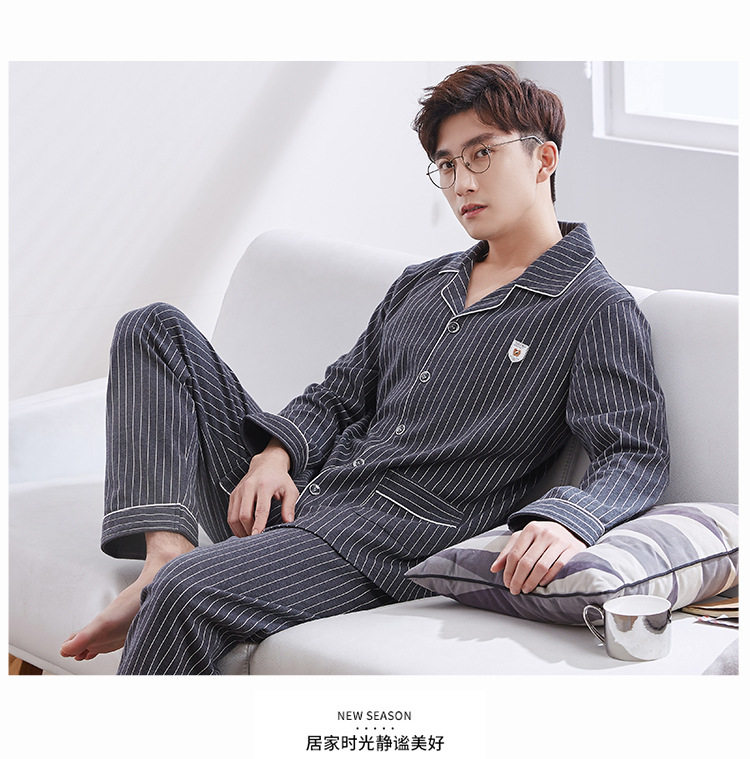 Pijamas de hombre para hombre otoño 100% algodón de manga larga chaqueta juvenil suelta Otoño e Invierno ropa para el hogar traje primavera y otoño