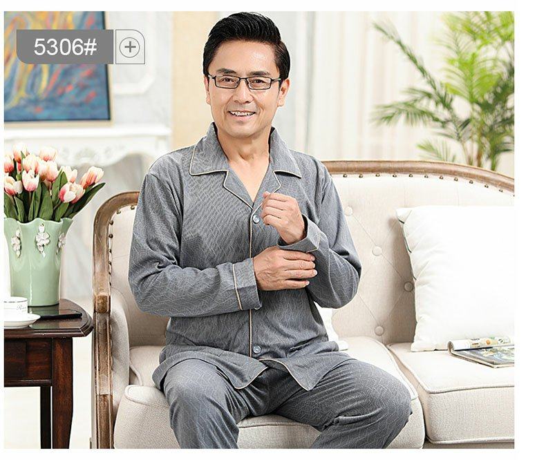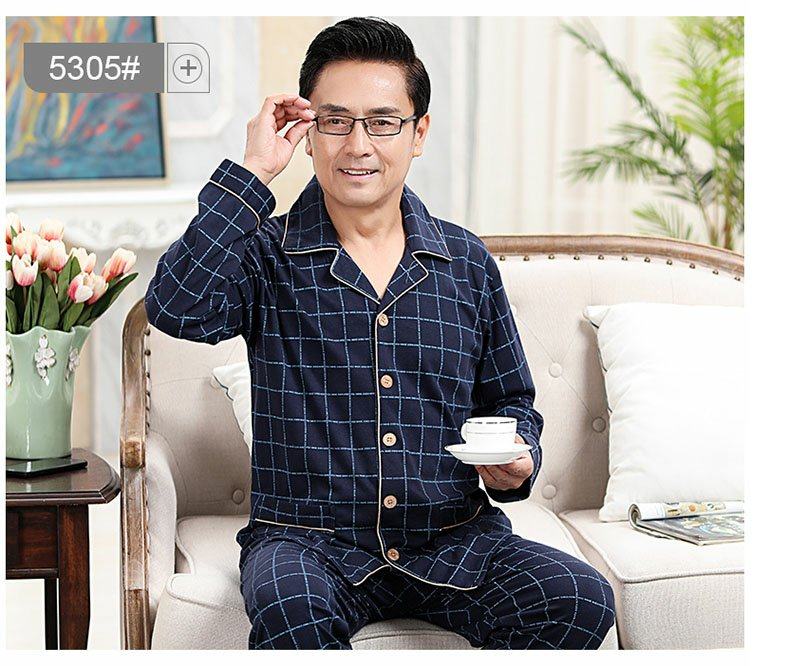 Primavera y otoño pijamas de los hombres de mediana edad papá cardigan 100% algodón de manga larga de los hombres viejos más tamaño homewear traje
