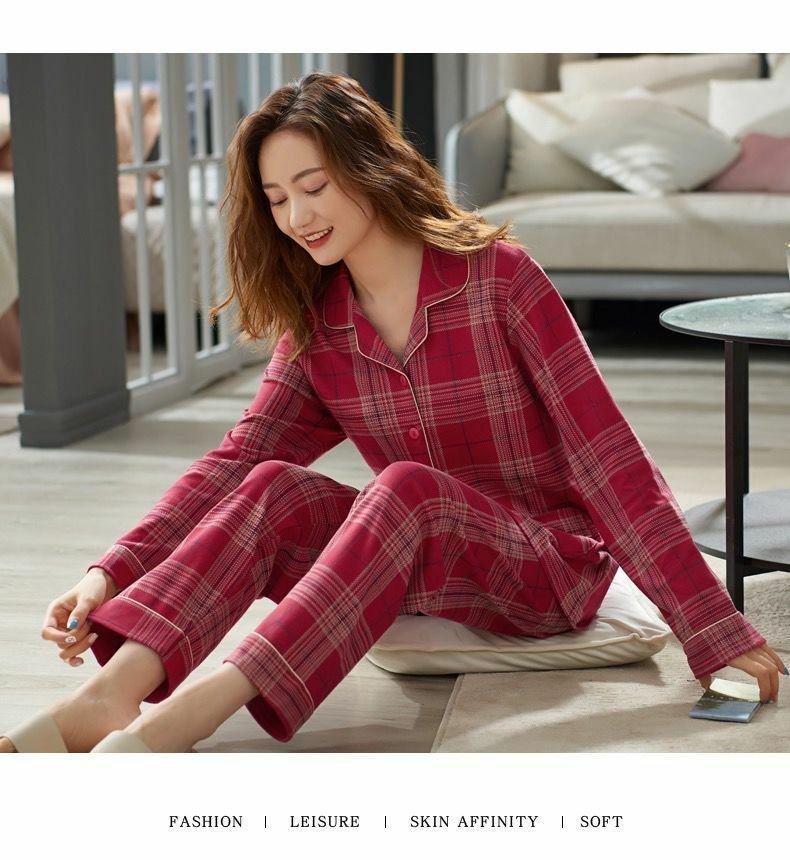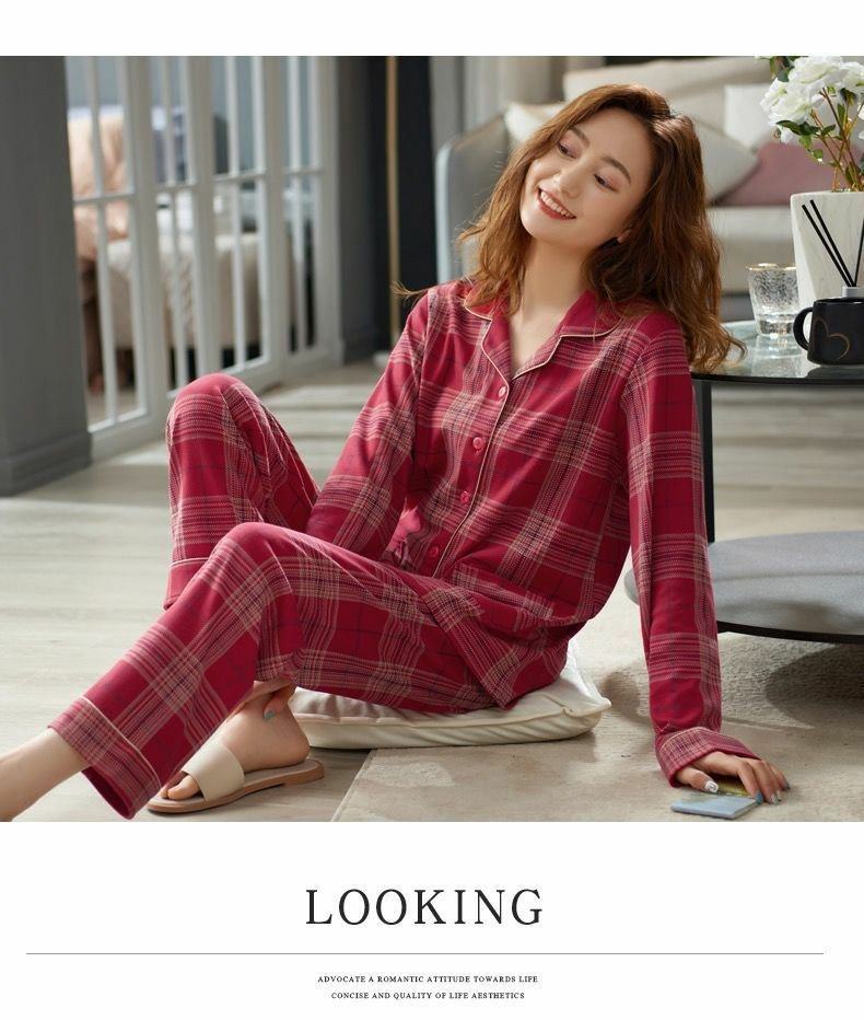 100% pijamas de algodón para mujer primavera y otoño se puede usar fuera Más tamaño manga larga Otoño e Invierno homewear traje