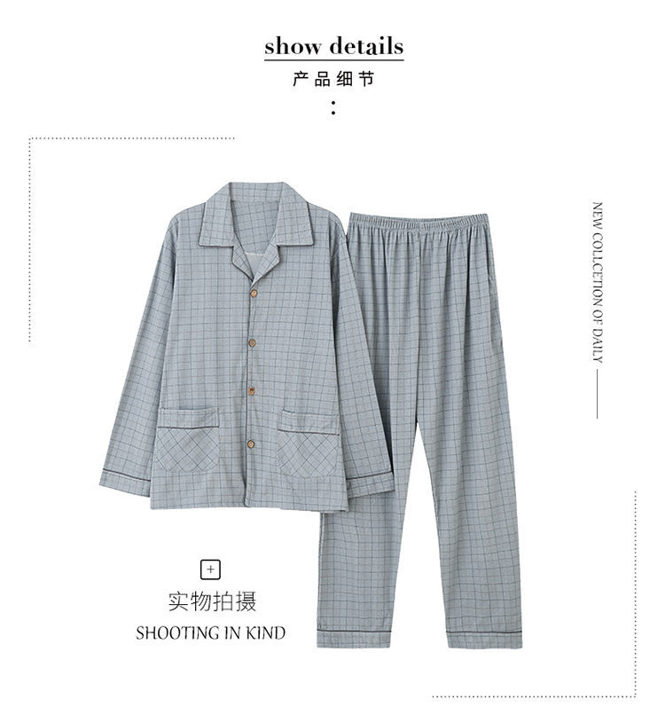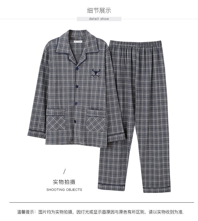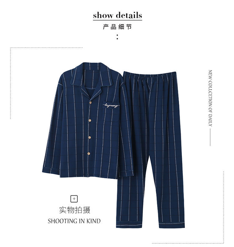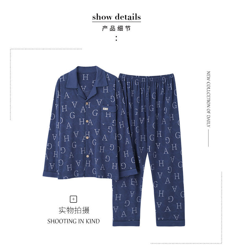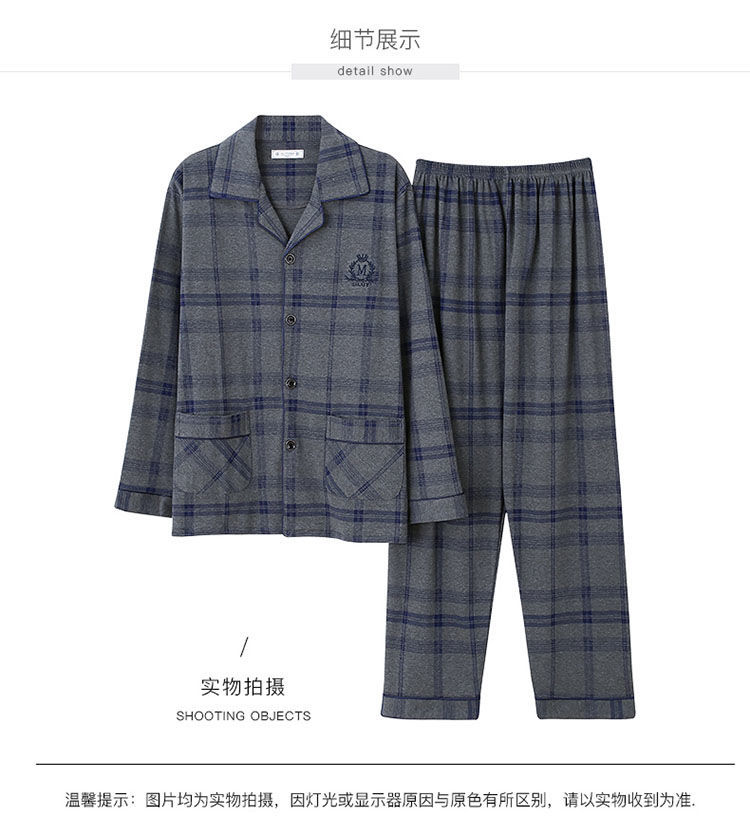 Pijamas de hombre primavera y otoño 100% algodón manga larga más tamaño fino Otoño e Invierno traje de desgaste para el hogar