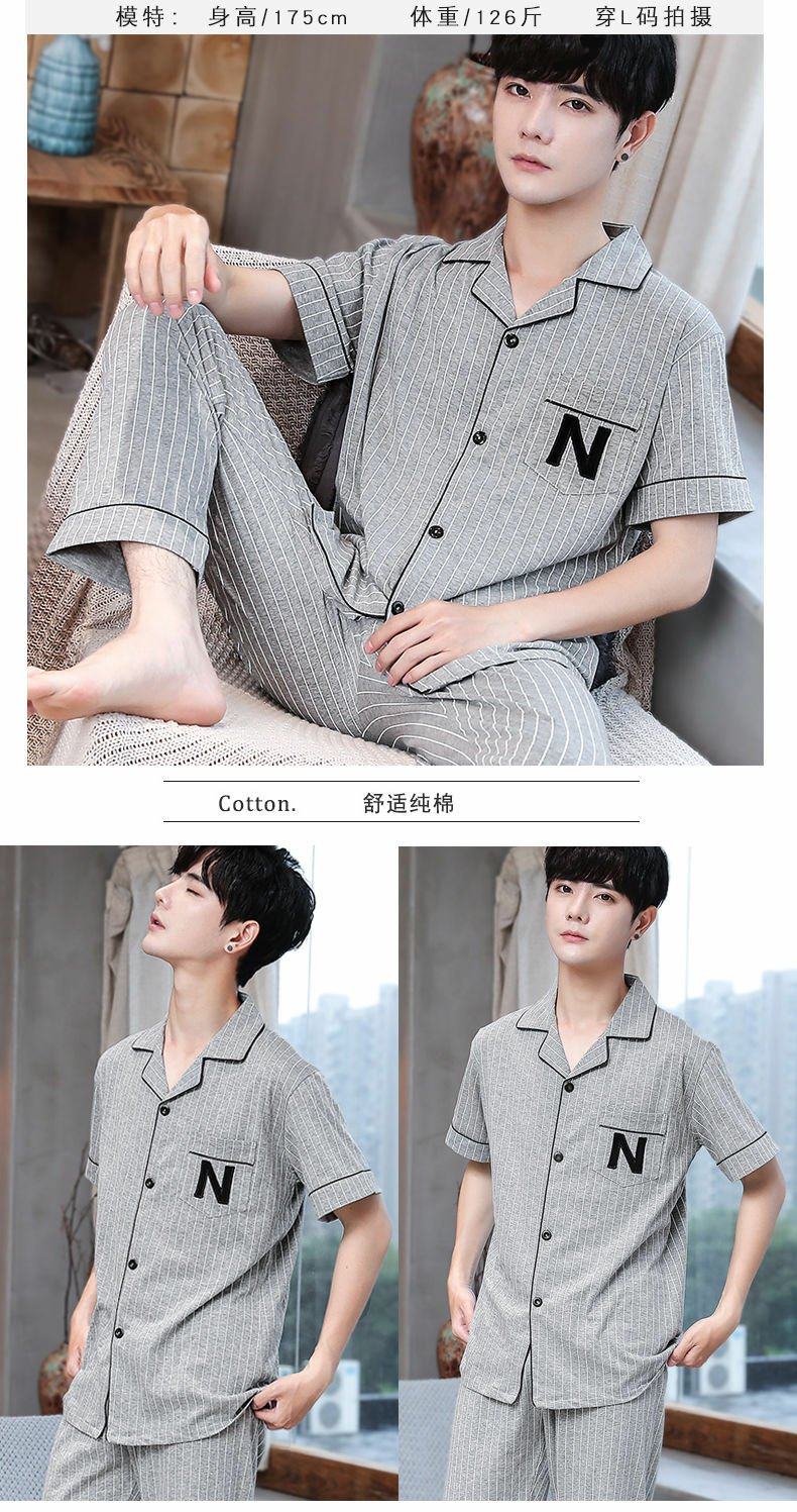100% algodón de los hombres pijamas de otoño de manga larga más tamaño suelta juventud primavera y verano pantalones de manga corta traje de algodón