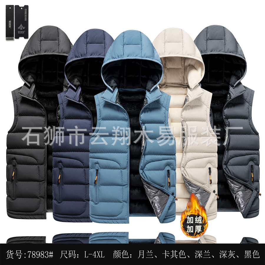 2023 transfronteriza costilla ropa hombres forrada de lana engrosada chaleco con capucha raqueta Chaleco de algodón raqueta de algodón europeo y americano al por mayor