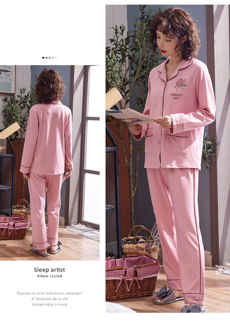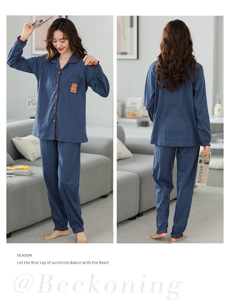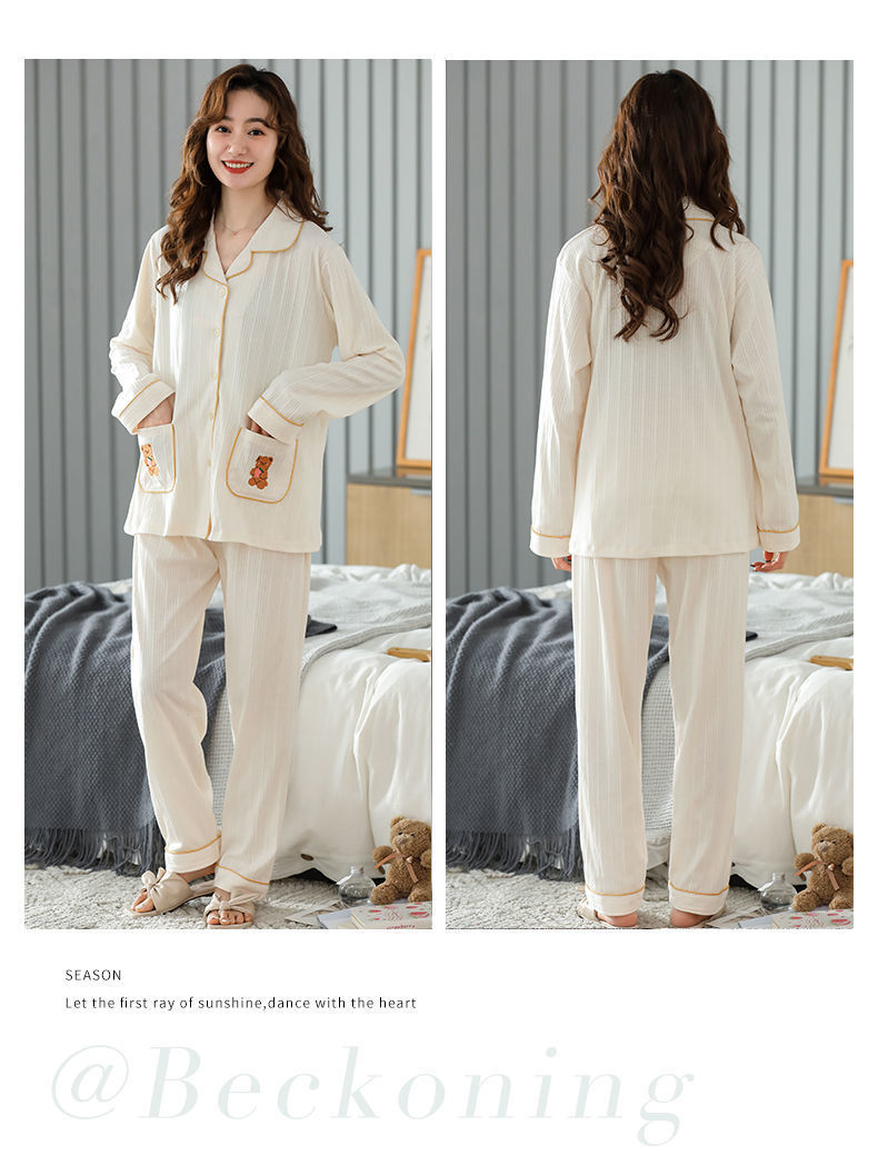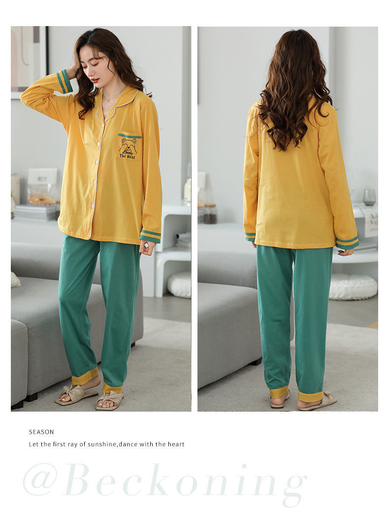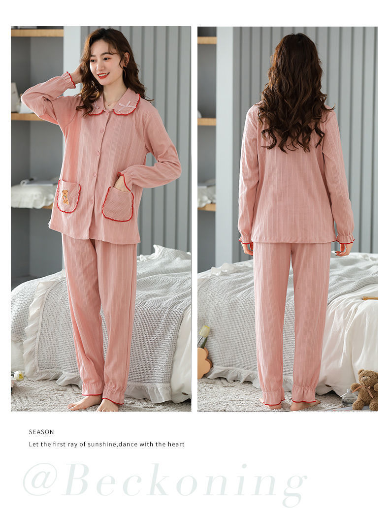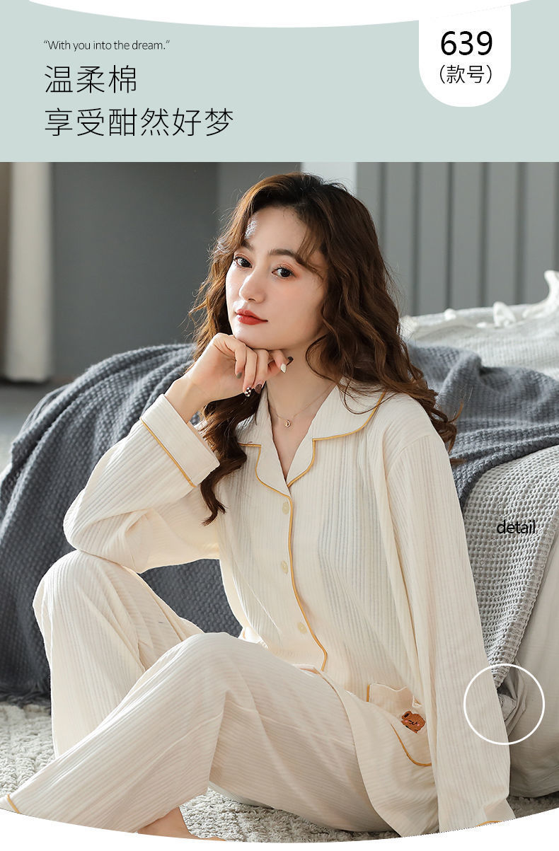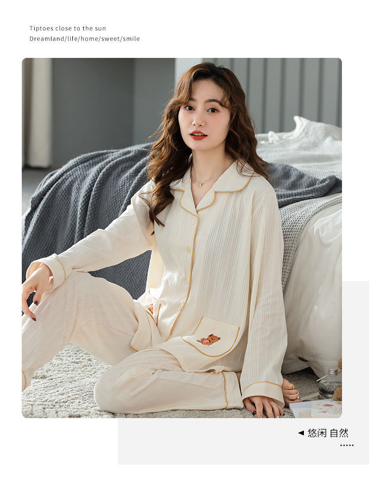 Pijamas traje de primavera/verano para mujer verano nuevo Algodón puro Primavera/otoño estudiante de algodón de manga larga estilo coreano ropa para el hogar suelta