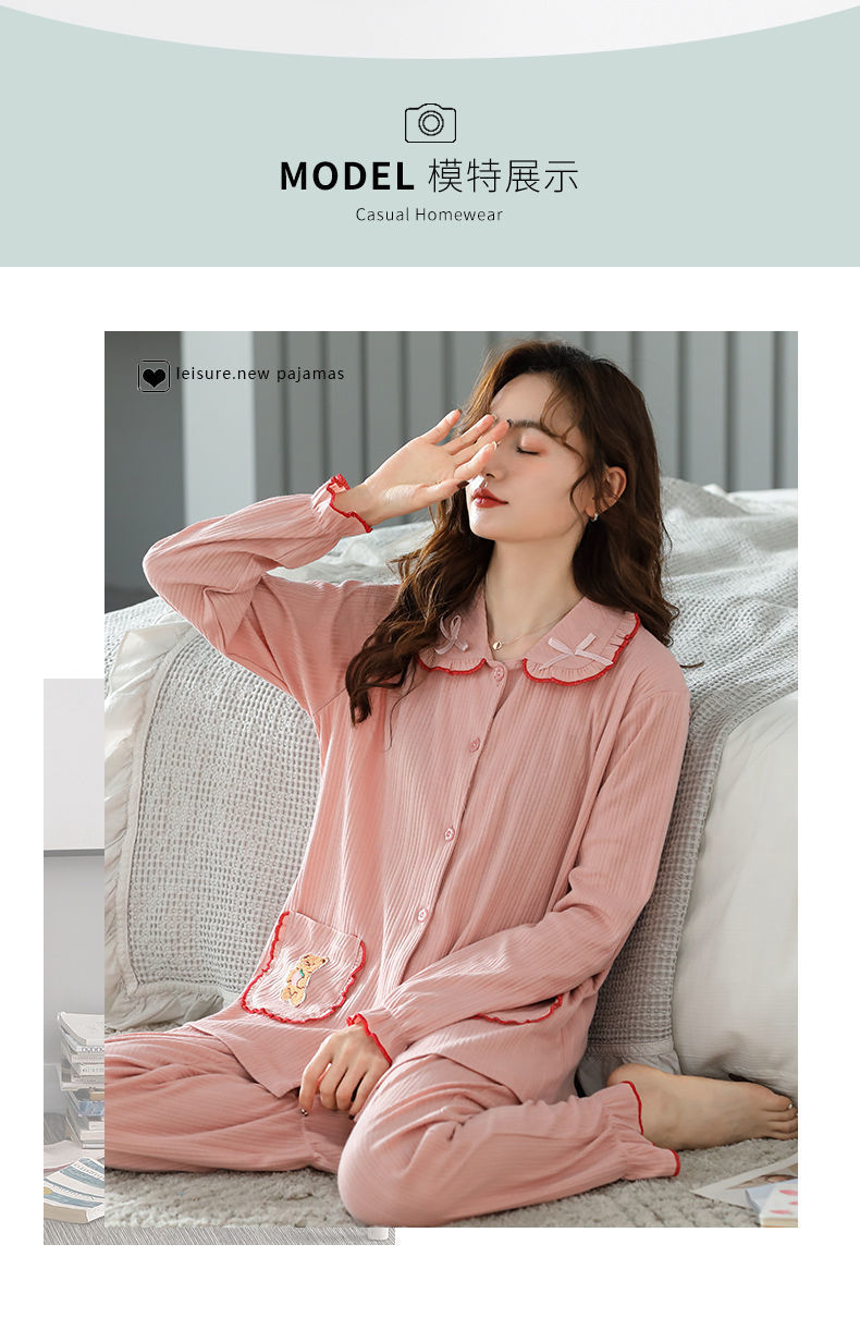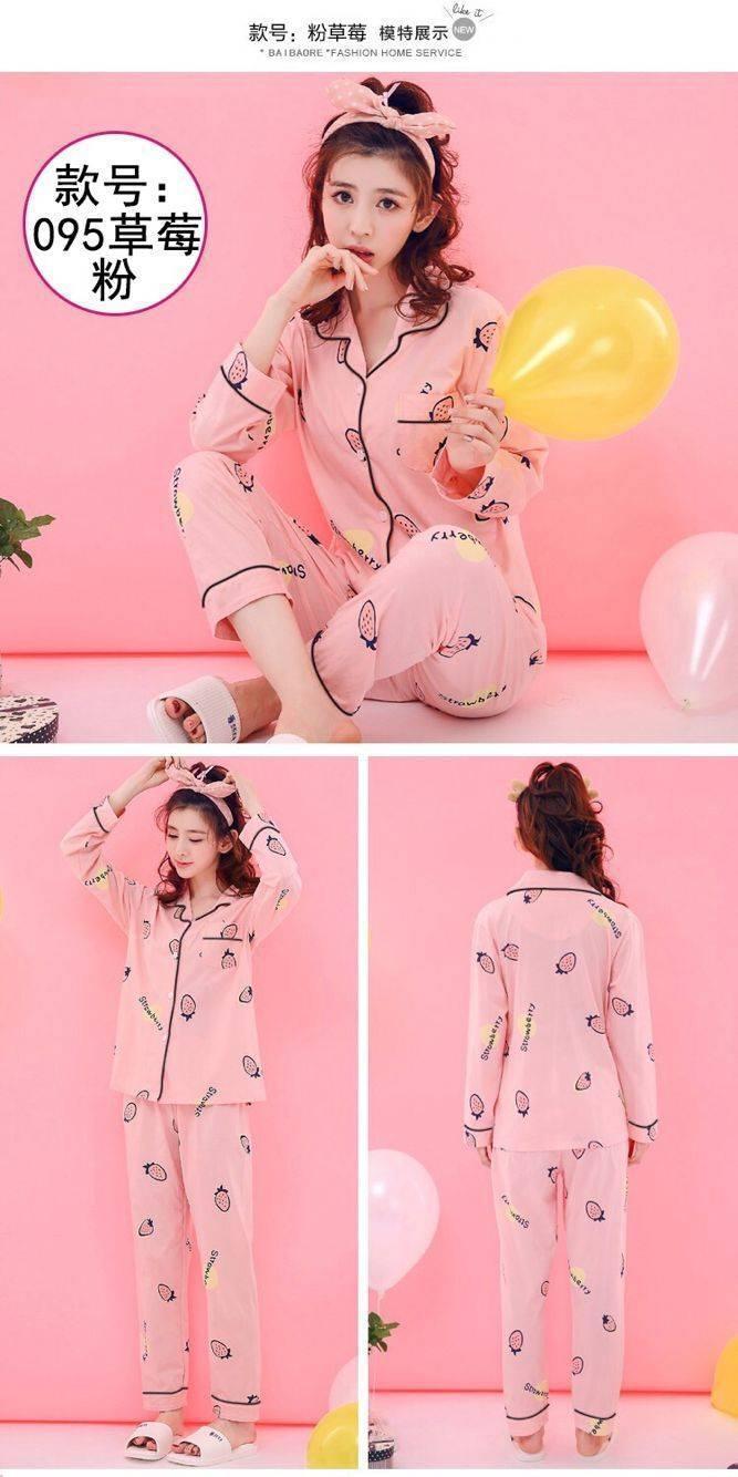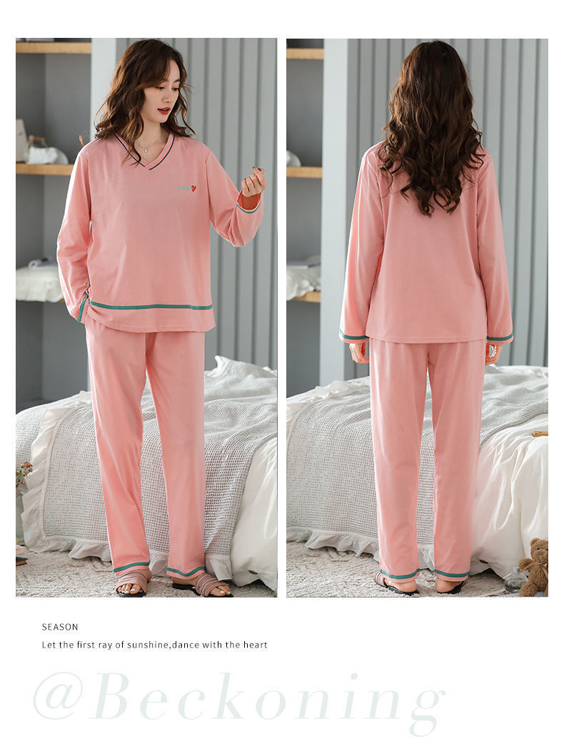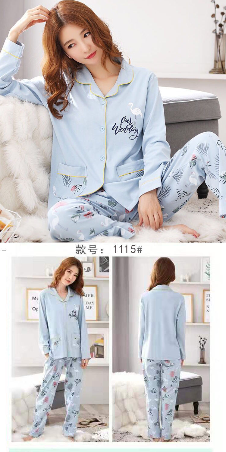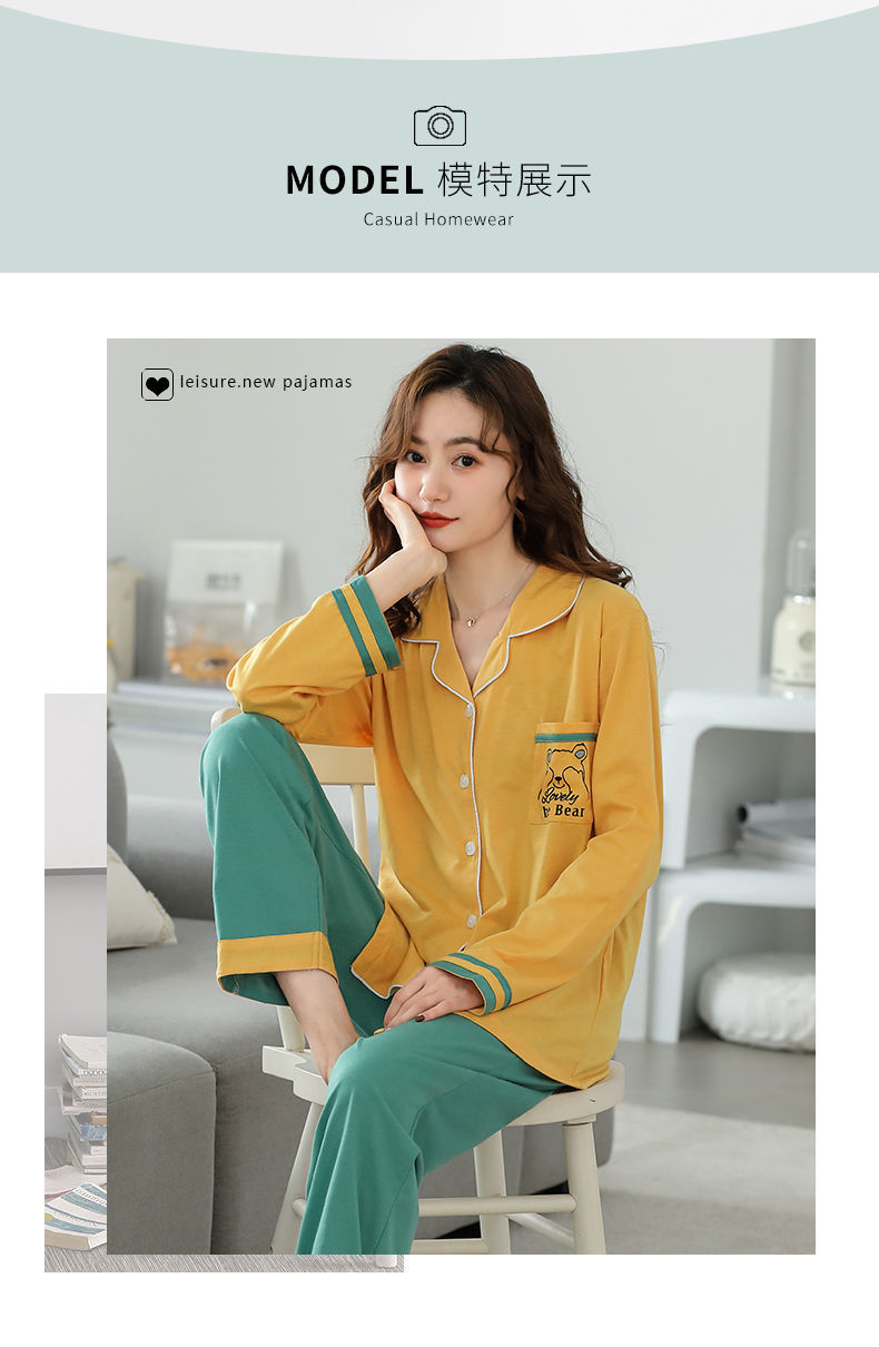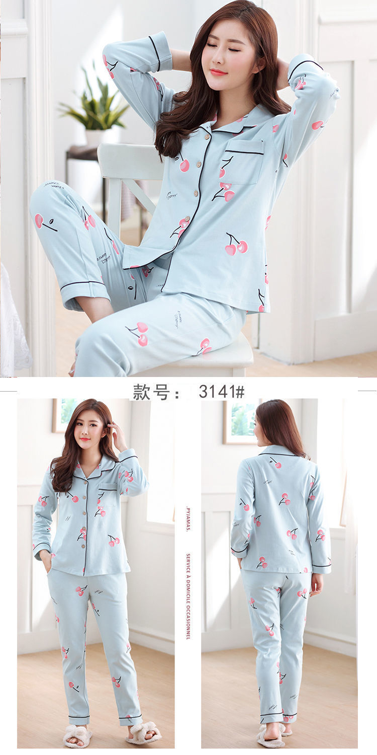 Pijamas traje de primavera/verano para mujer verano nuevo Algodón puro Primavera/otoño estudiante de algodón de manga larga estilo coreano ropa para el hogar suelta