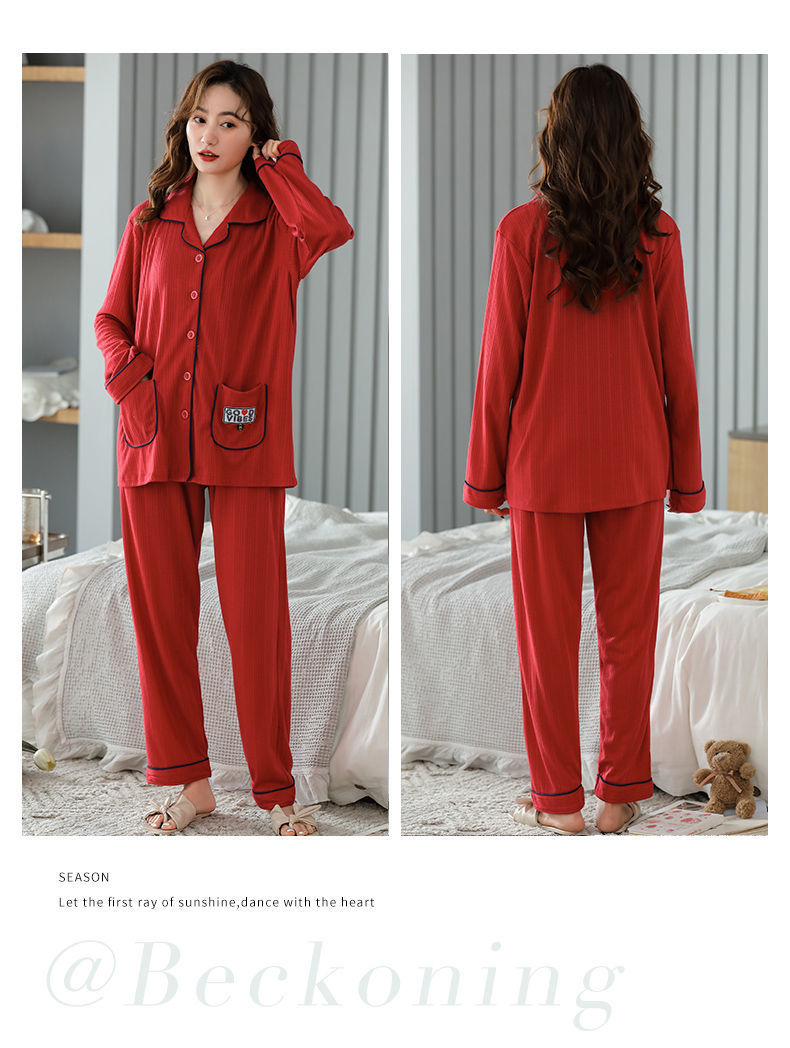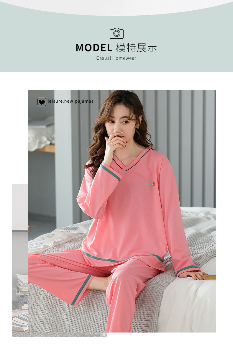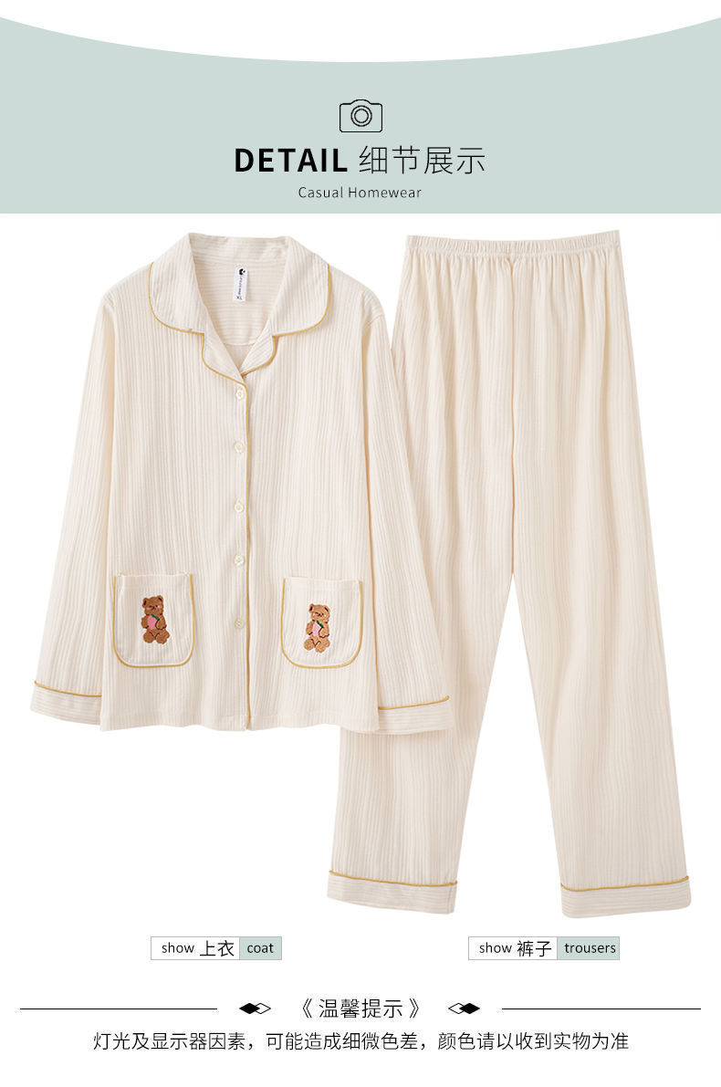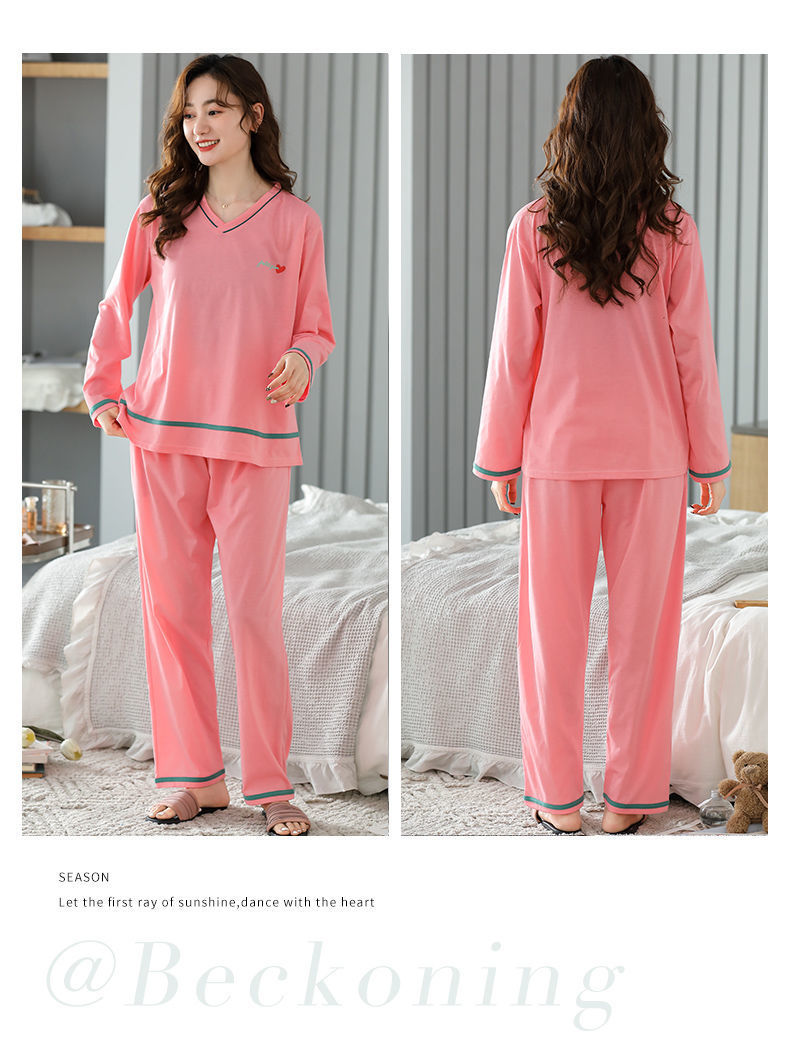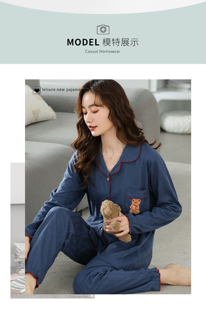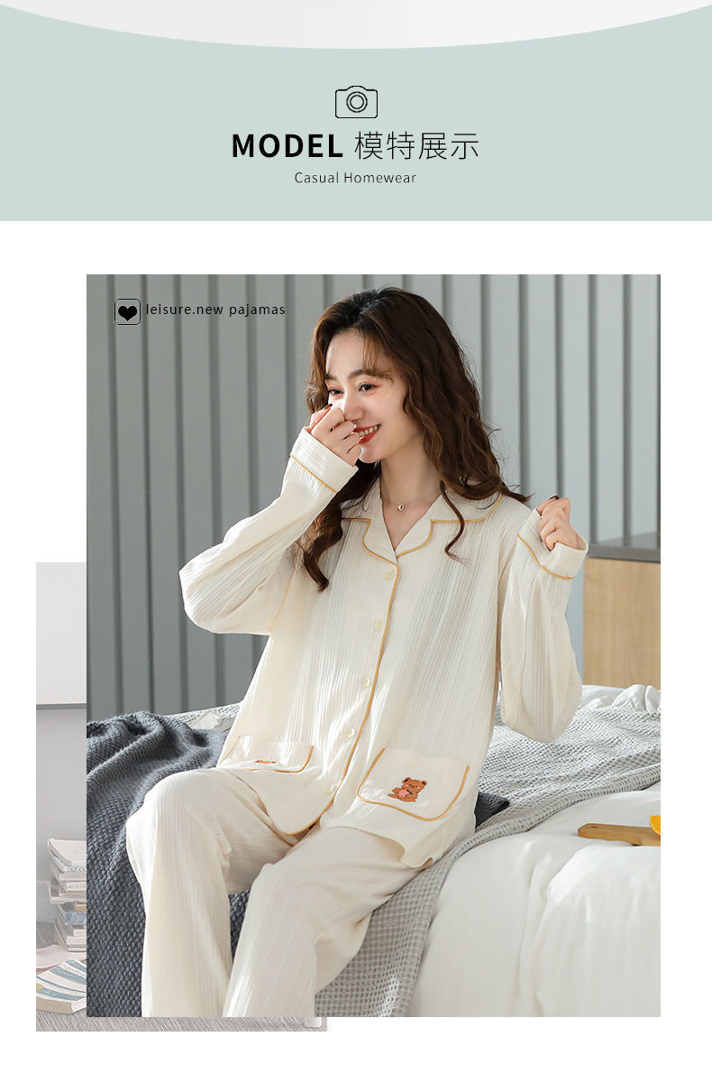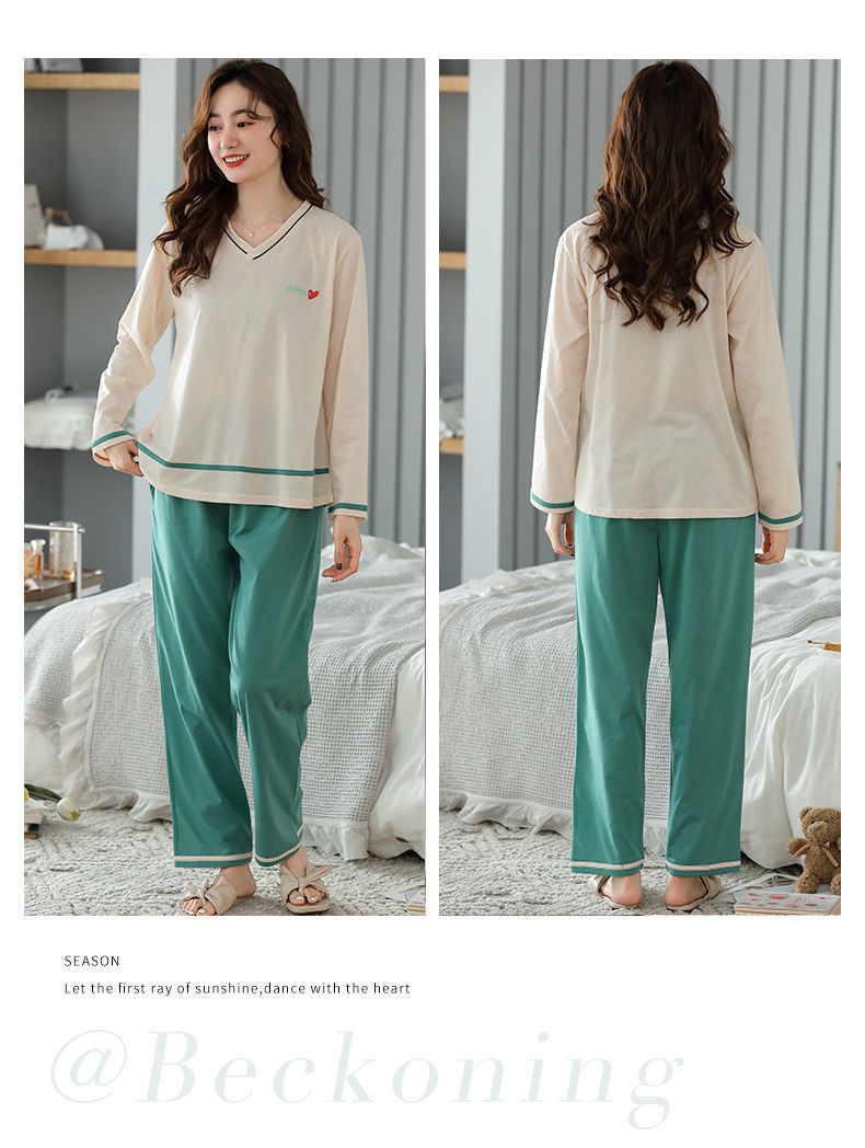 Pijamas traje de primavera/verano para mujer verano nuevo Algodón puro Primavera/otoño estudiante de algodón de manga larga estilo coreano ropa para el hogar suelta