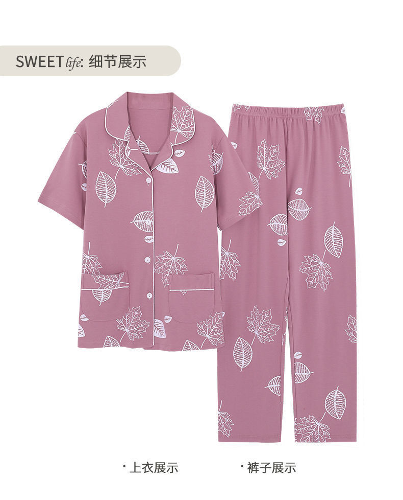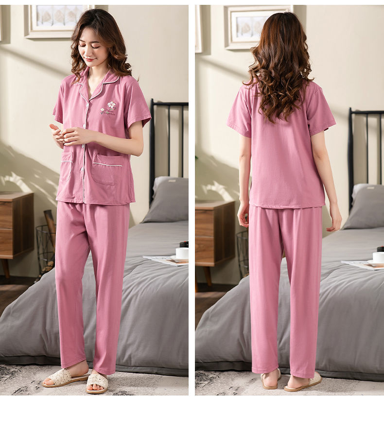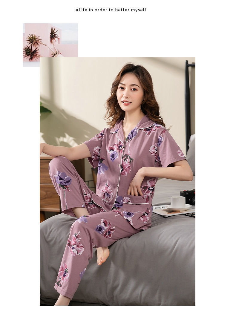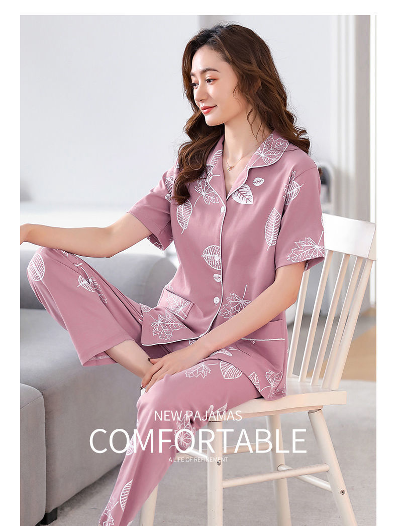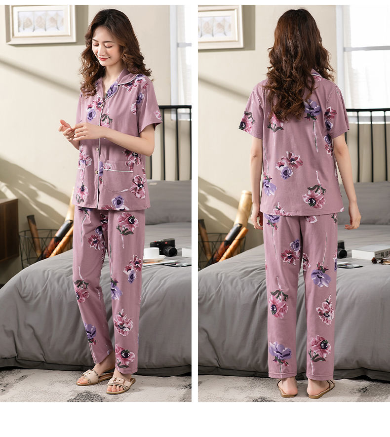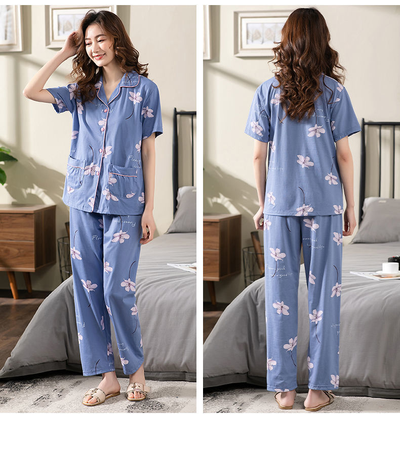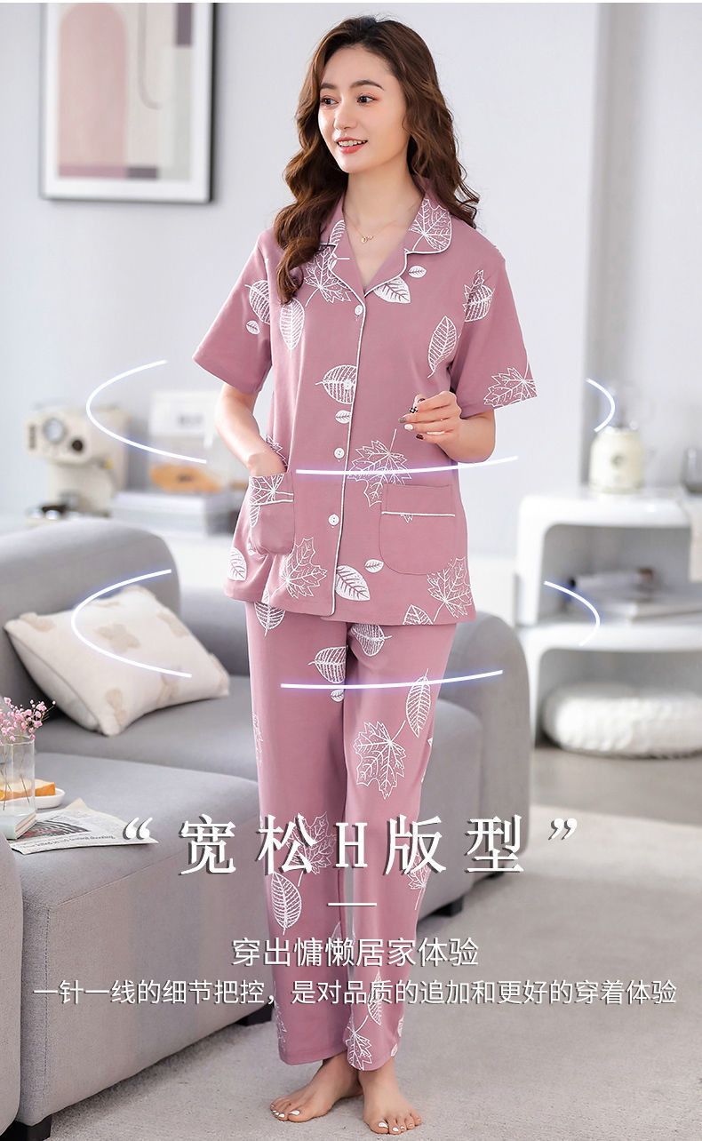 Pijama de algodón de verano pantalones de manga corta para mujer cardigan de talla grande traje de desgaste exterior de mujer madre de mediana edad casa delgada