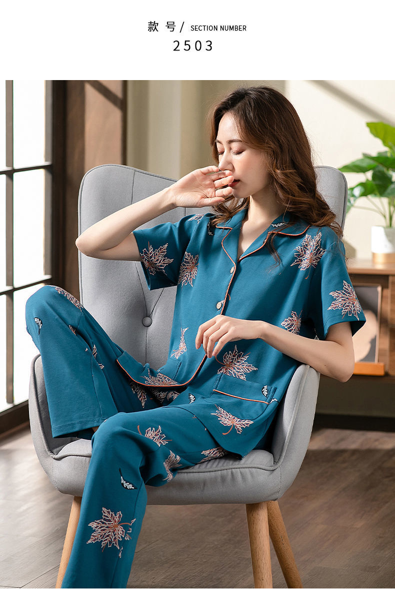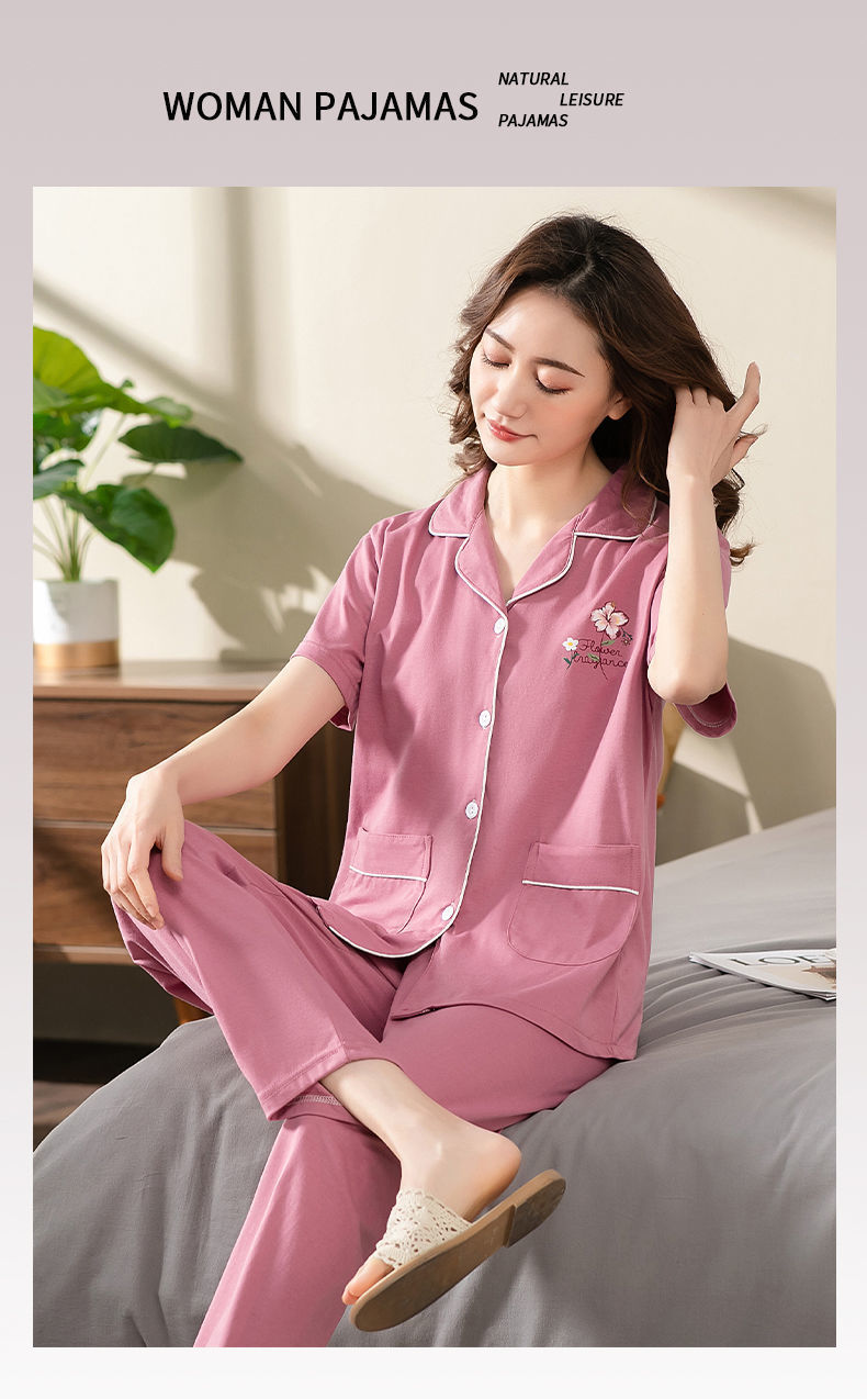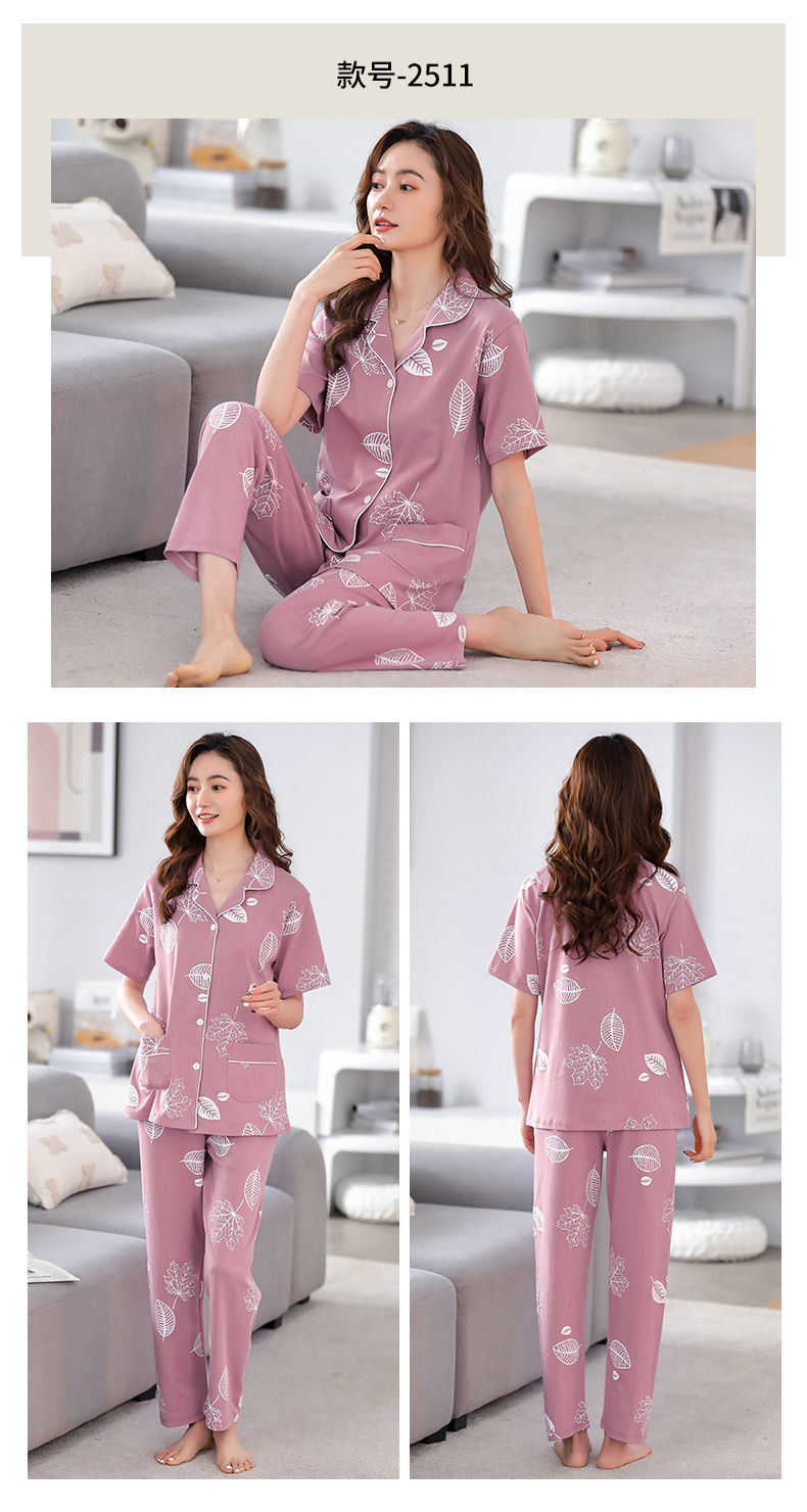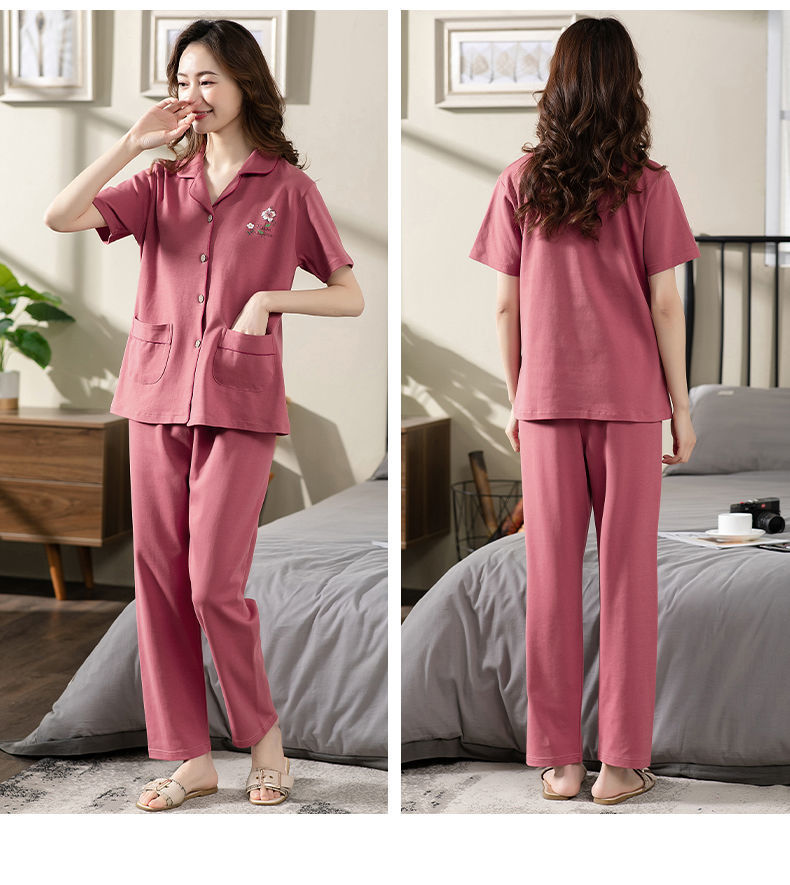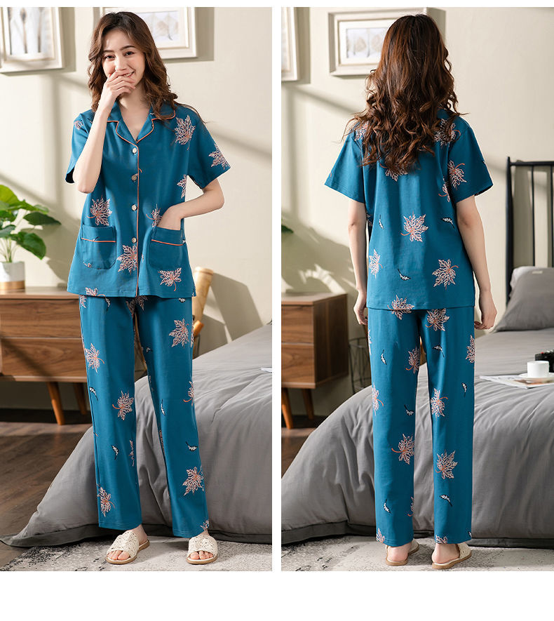 Pijama de algodón de verano pantalones de manga corta para mujer cardigan de talla grande traje de desgaste exterior de mujer madre de mediana edad casa delgada