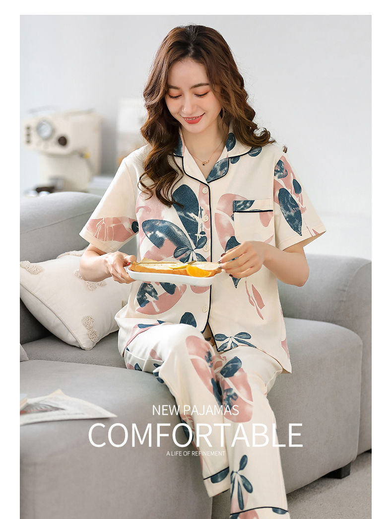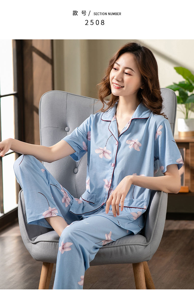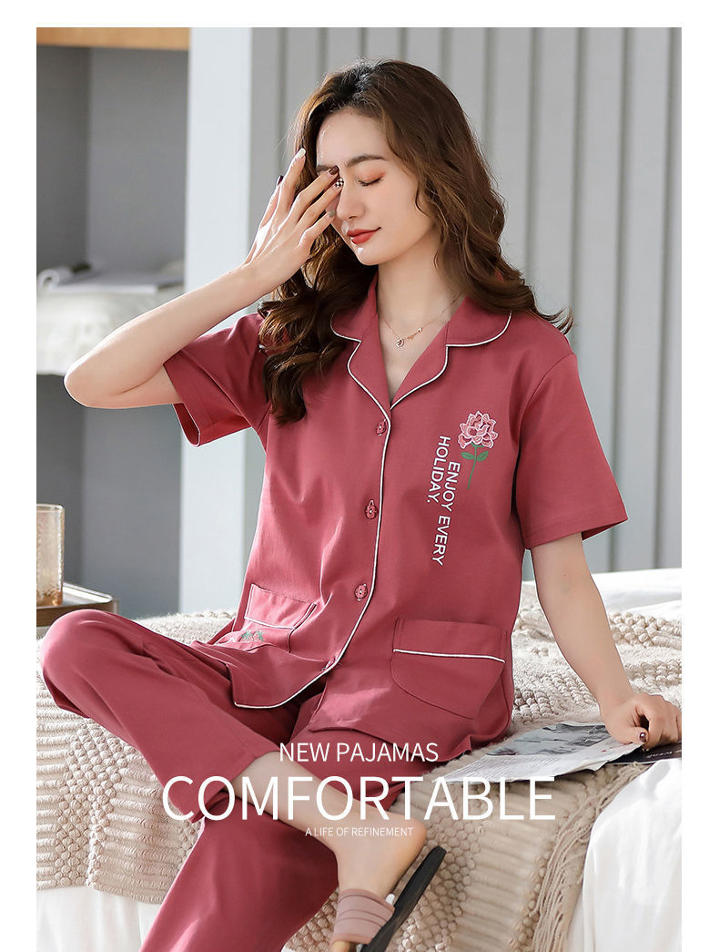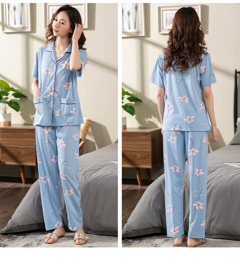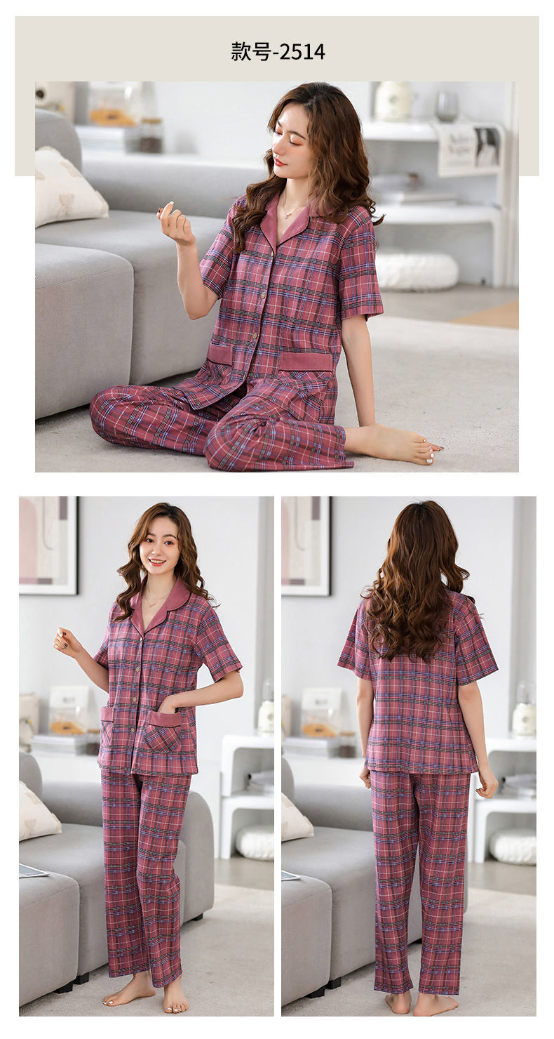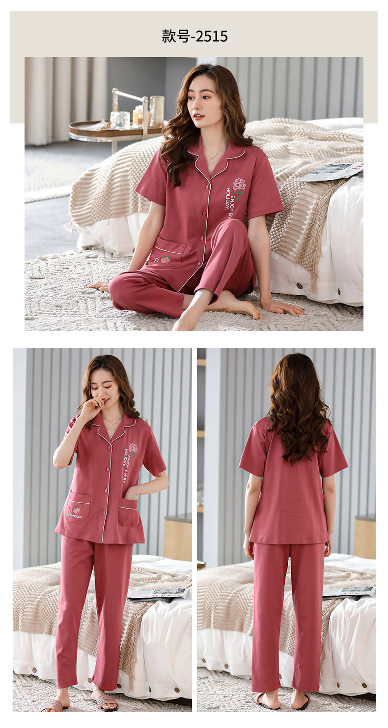 Pijama de algodón de verano pantalones de manga corta para mujer cardigan de talla grande traje de desgaste exterior de mujer madre de mediana edad casa delgada