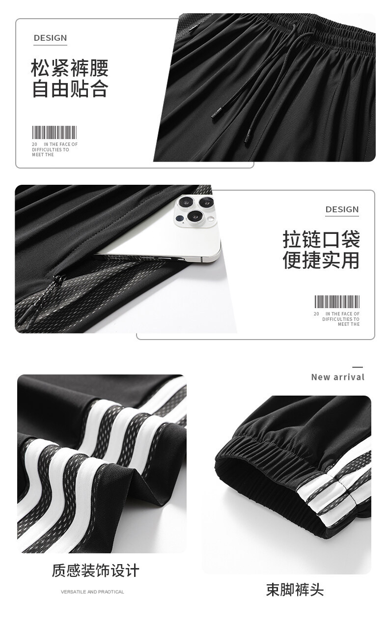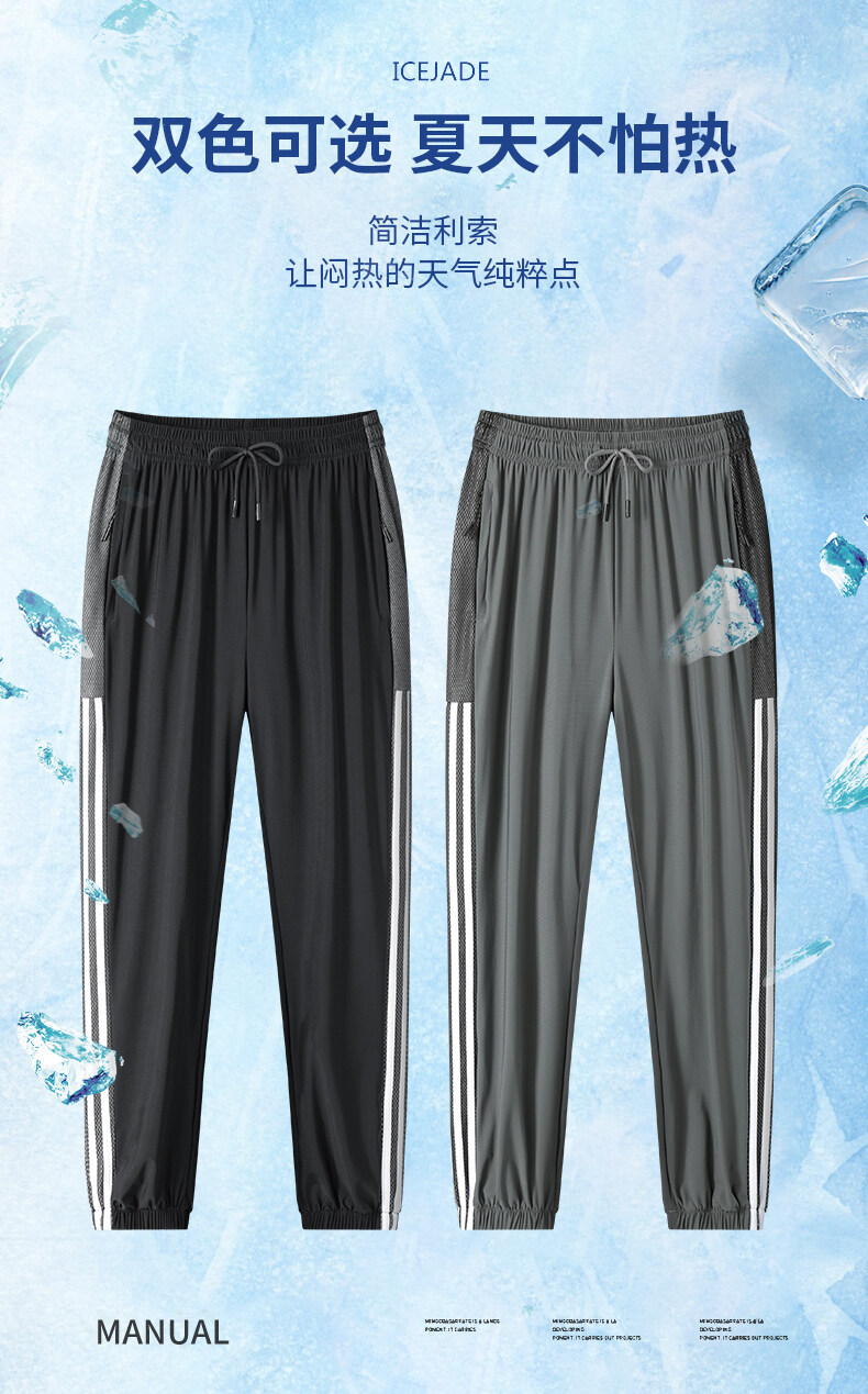 Pantalones de secado rápido de talla grande 2022 pantalones de tres barras de seda de hielo de verano estilo casual suelto de fábrica al por mayor