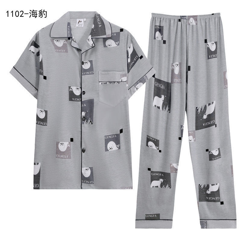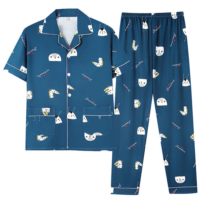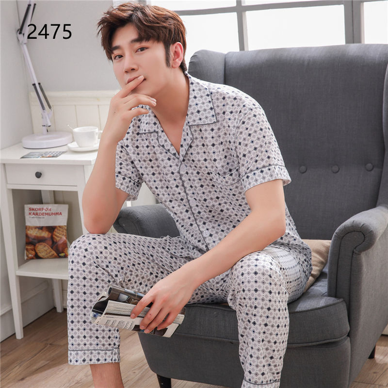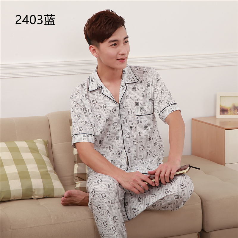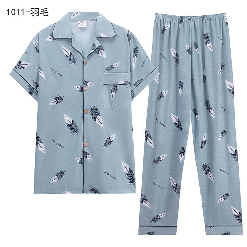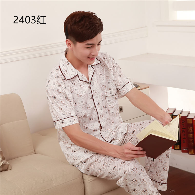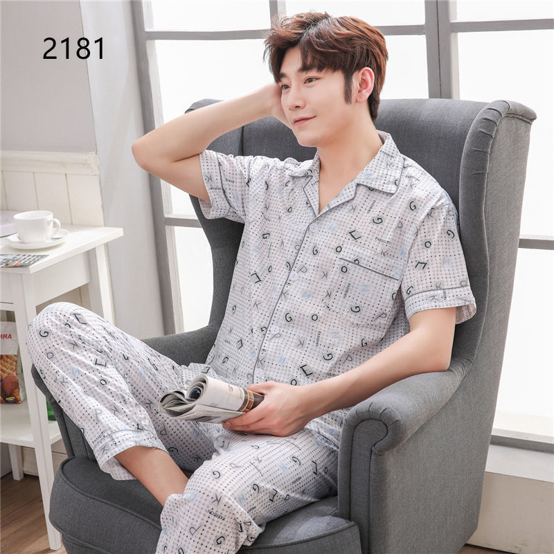 Pijamas de hombre Pijamas de manga corta de verano de algodón delgado para hombres jóvenes y de mediana edad sueltos de primavera y verano traje de desgaste para el hogar