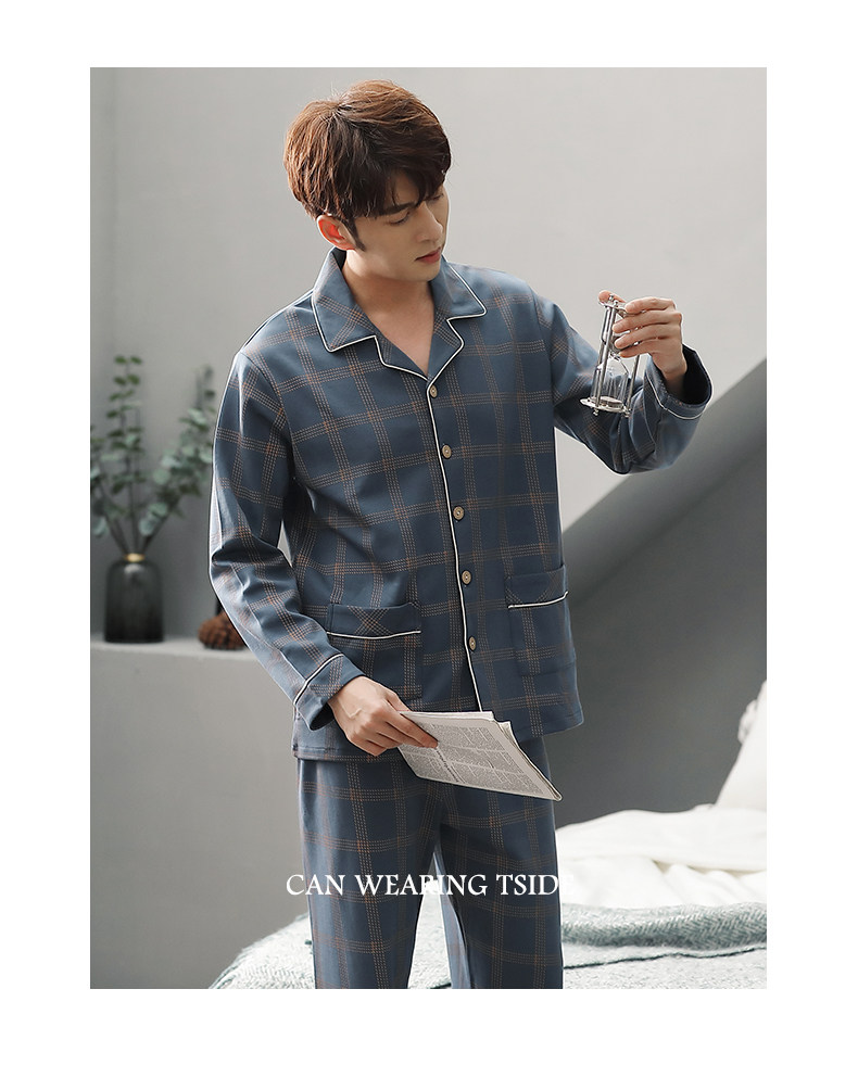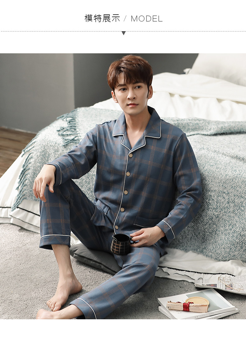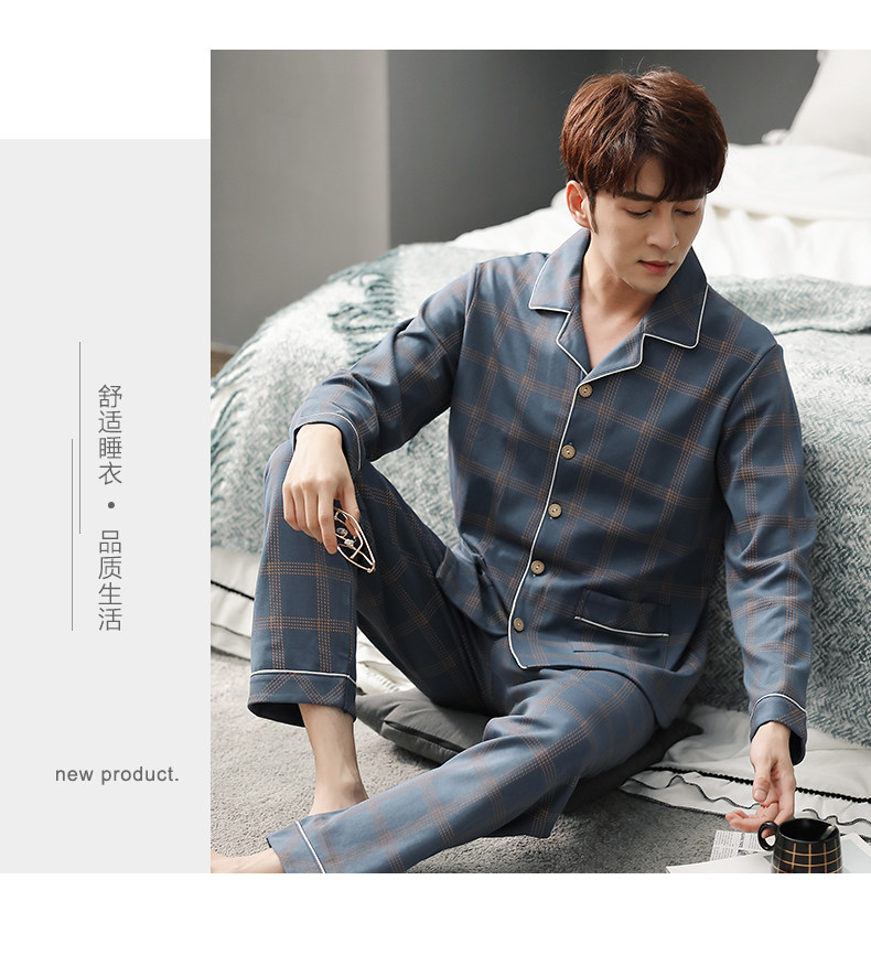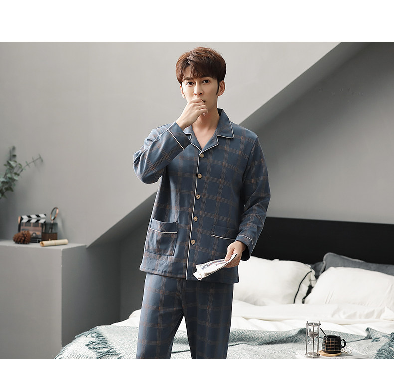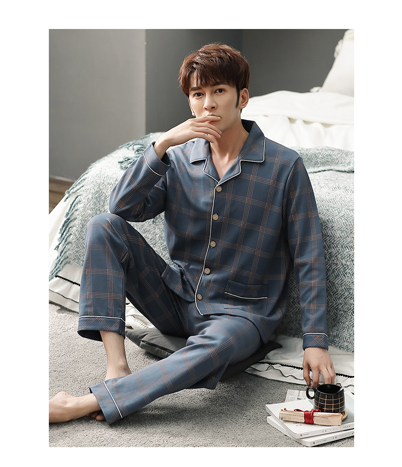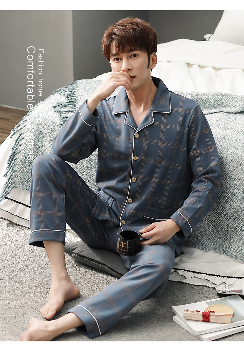 Pijamas de algodón 100% de los hombres de manga larga de primavera y otoño de los hombres de algodón fino ocasional juvenil más tamaño traje de desgaste para el hogar
