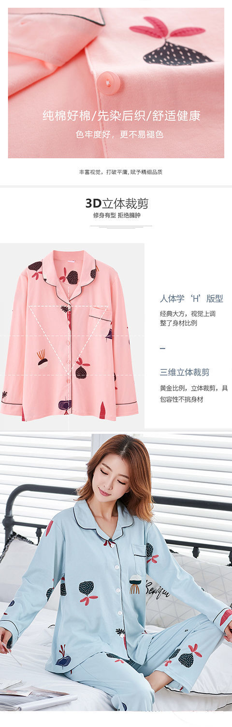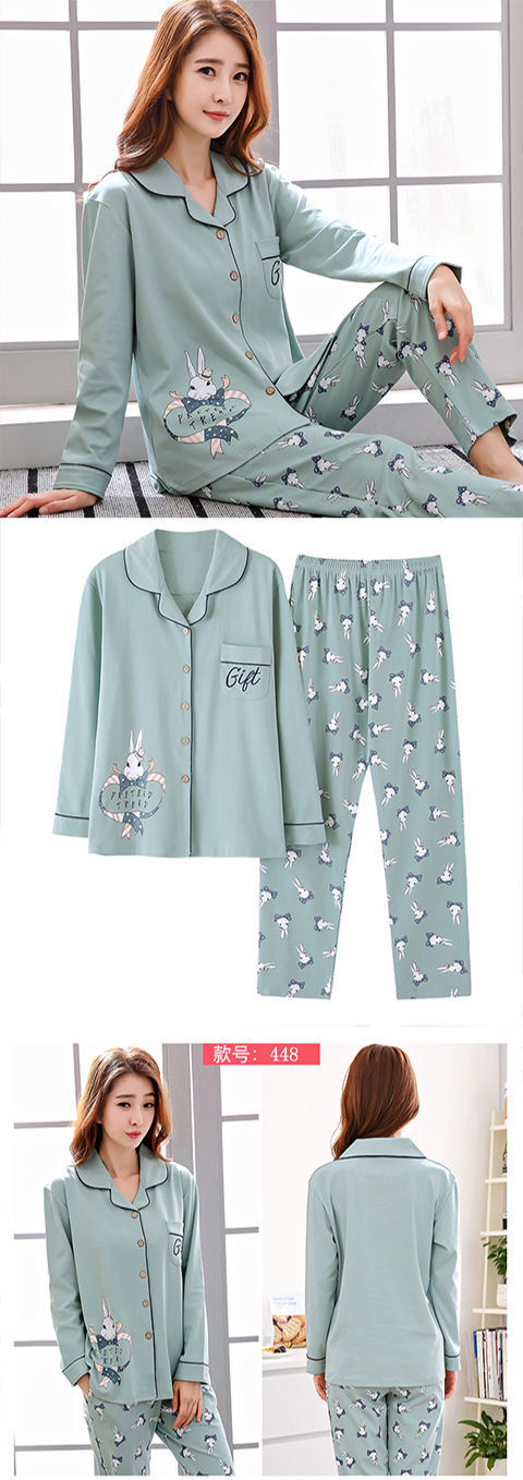 Algodón pijamas de primavera y otoño manga larga traje verano nuevo estudiante estilo coreano suelta desgaste dos
