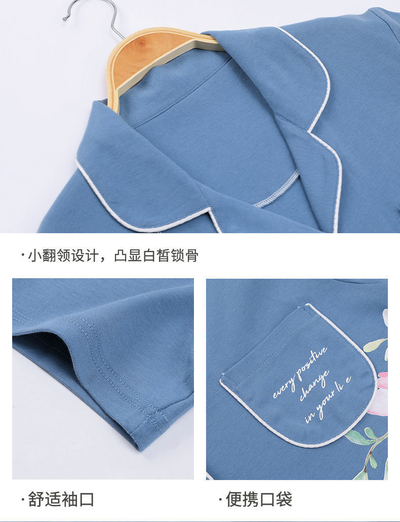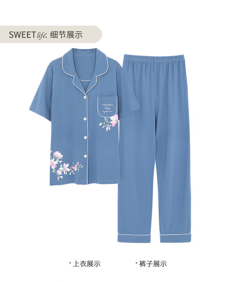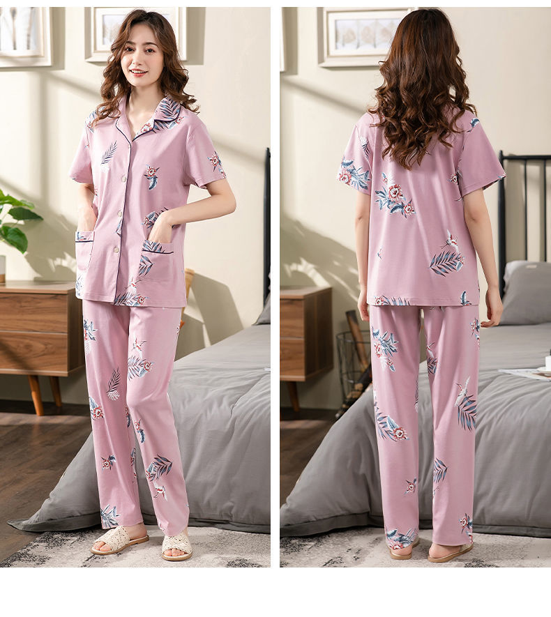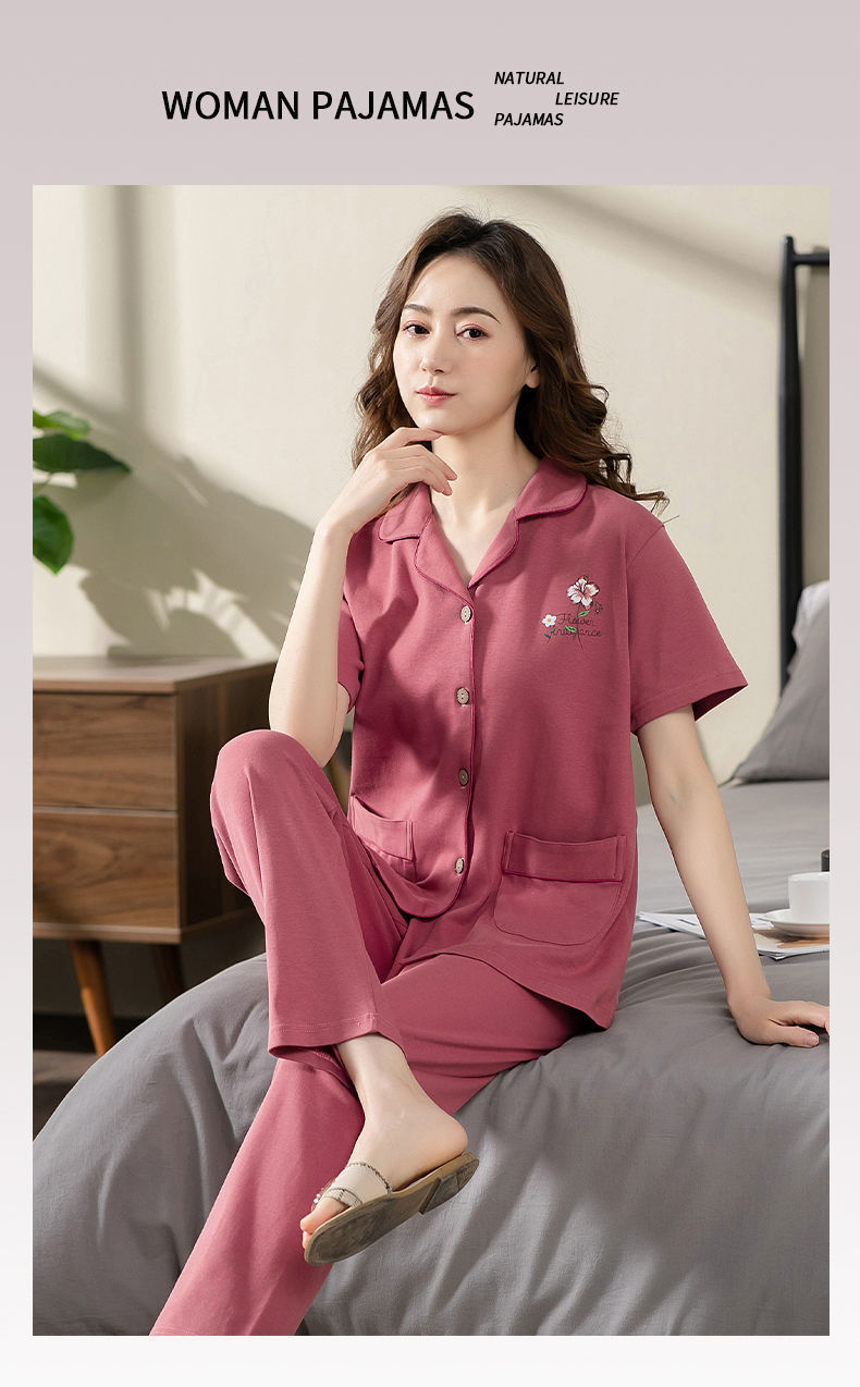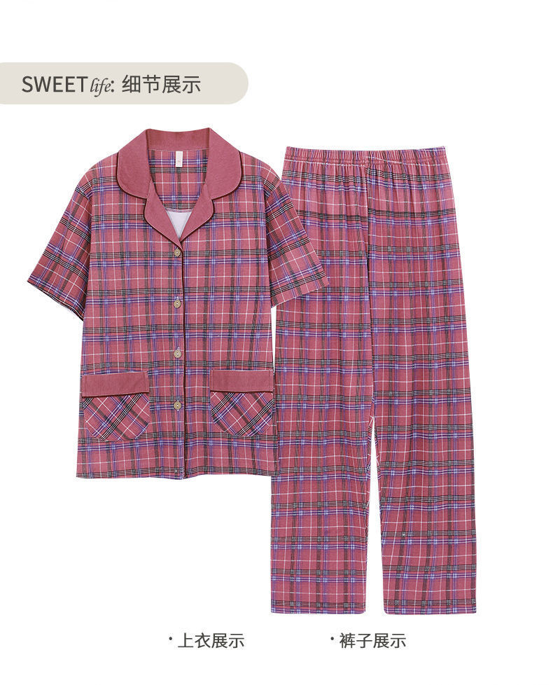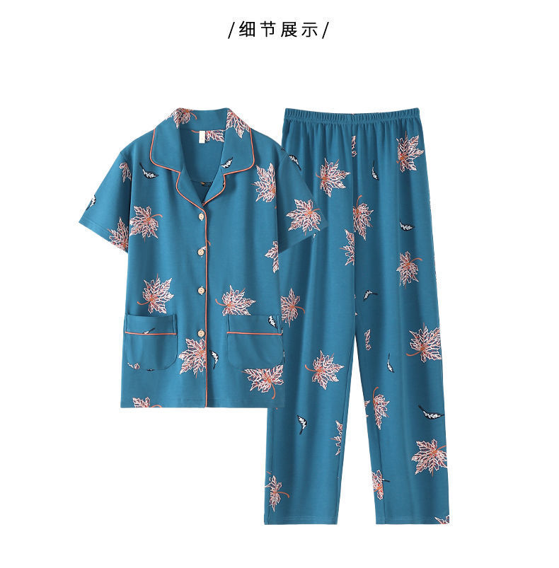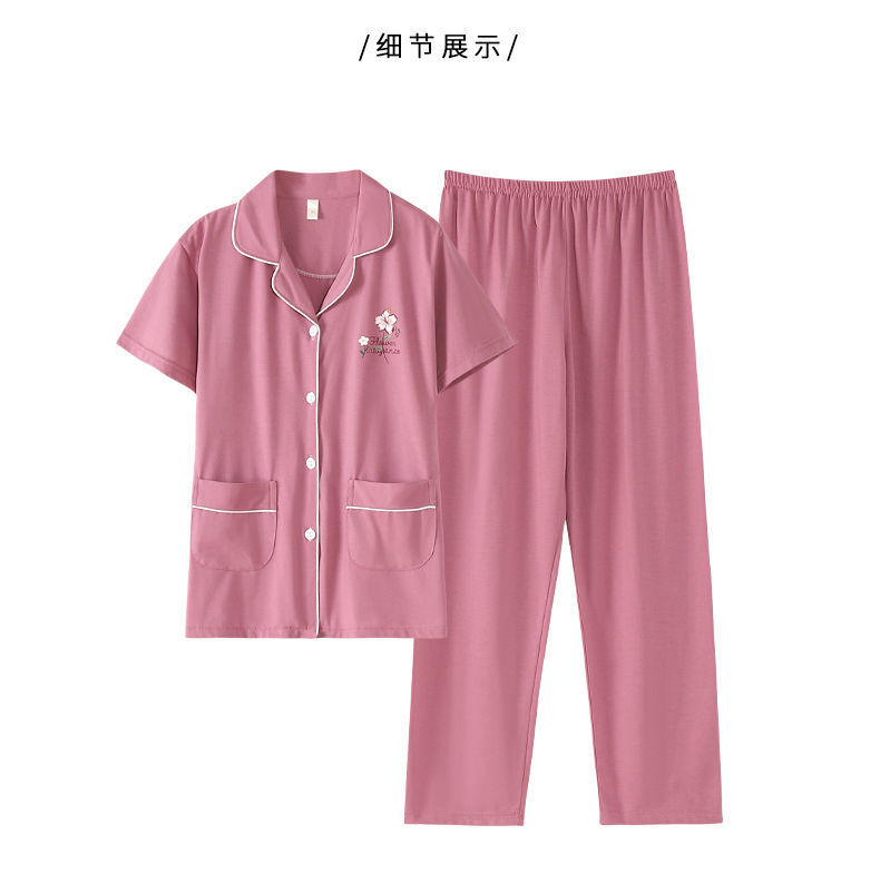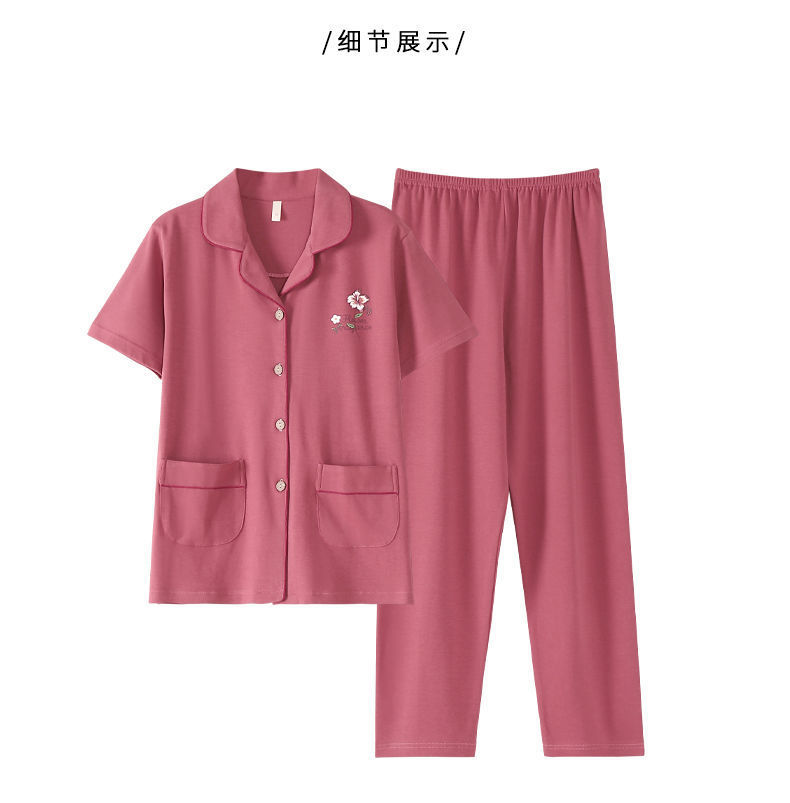 Pijama de algodón para mujer Pantalones de manga corta de verano más traje de chaqueta de mediana edad y madres de edad avanzada